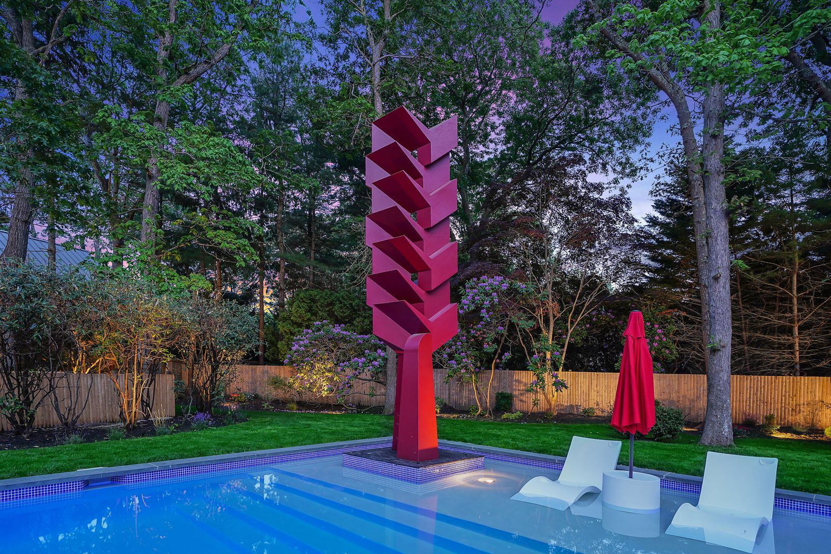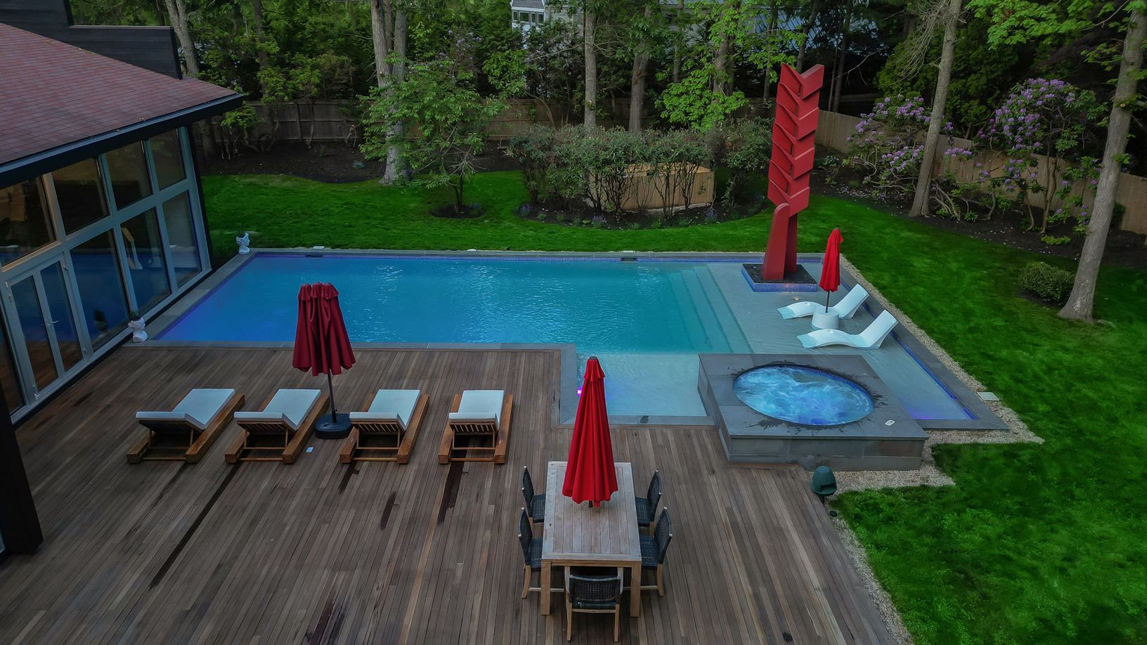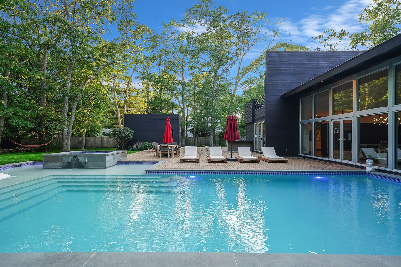 Indulge in luxurious and elegance coastal living at this stunning Art Deco home, ideally positioned in the prestigious East Hampton Village , this architectural masterpiece was crafted by renowned Hampton builder Phil Kouffman.