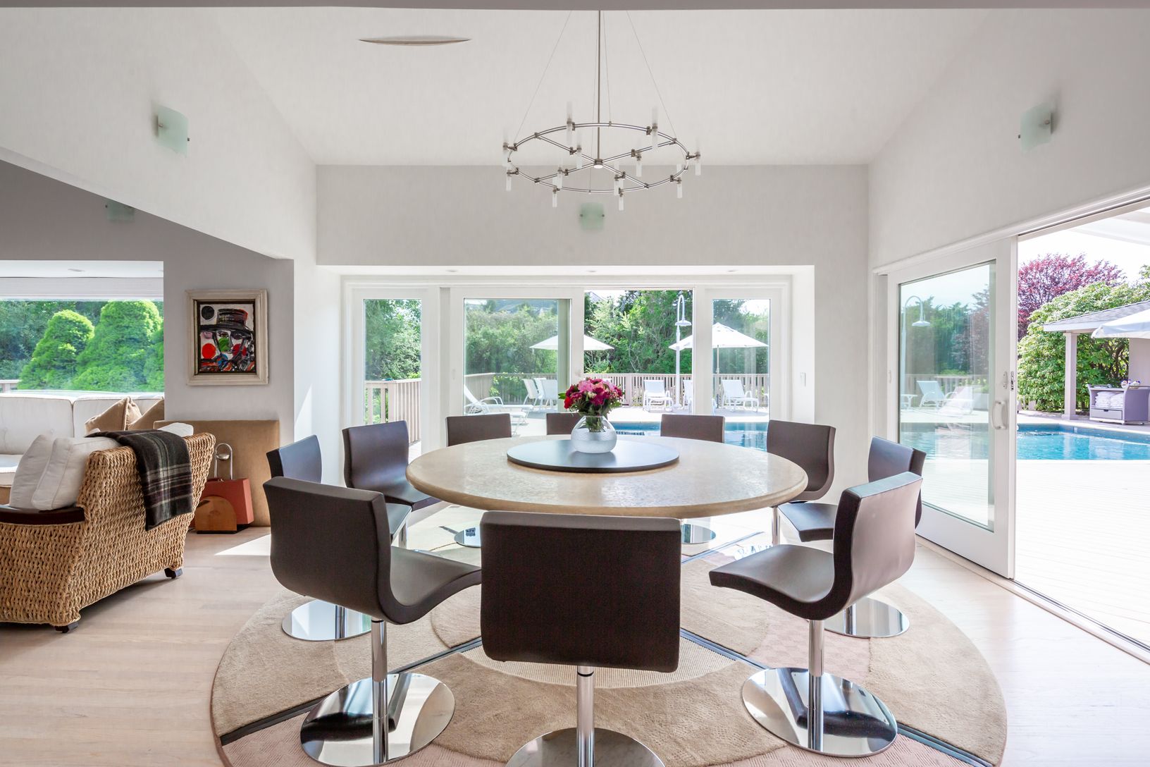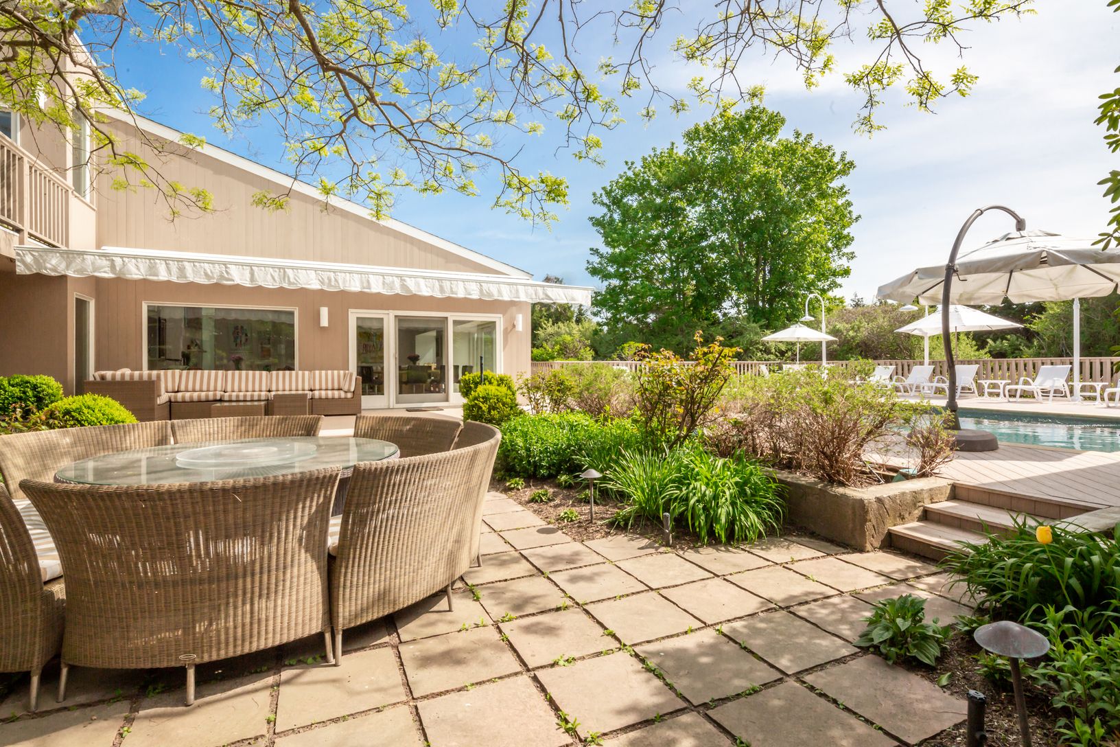 At the end of a quiet street in Sagaponack South, you will find yourself enlightened by the spacious beauty of 1.4+/- acres of green lawn professionally landscaped with specimen trees, shrubs, and flowering plants. As the Atlantic Ocean speaks soft tones, you become completely relaxed at the outdoor entertainment space by the pool. Within the modern walls of the home are bright rooms for easy summer living with 3 guest bedrooms on the main
