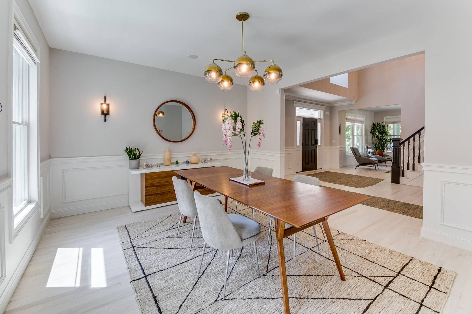 This classic 5 bedroom, 4.5 bath Hamptons home is sited on a deep flag lot in an enviable location, moments from East Hampton and Amagansett Village. The home was masterfully renovated in 2022 and is elegantly outfitted with chic furniture and delightful decor. The first floor includes a gracious entry, formal dining room, and an open-concept great room with a large living room and eat-in kitchen outfitted with premium appliances. An additiona