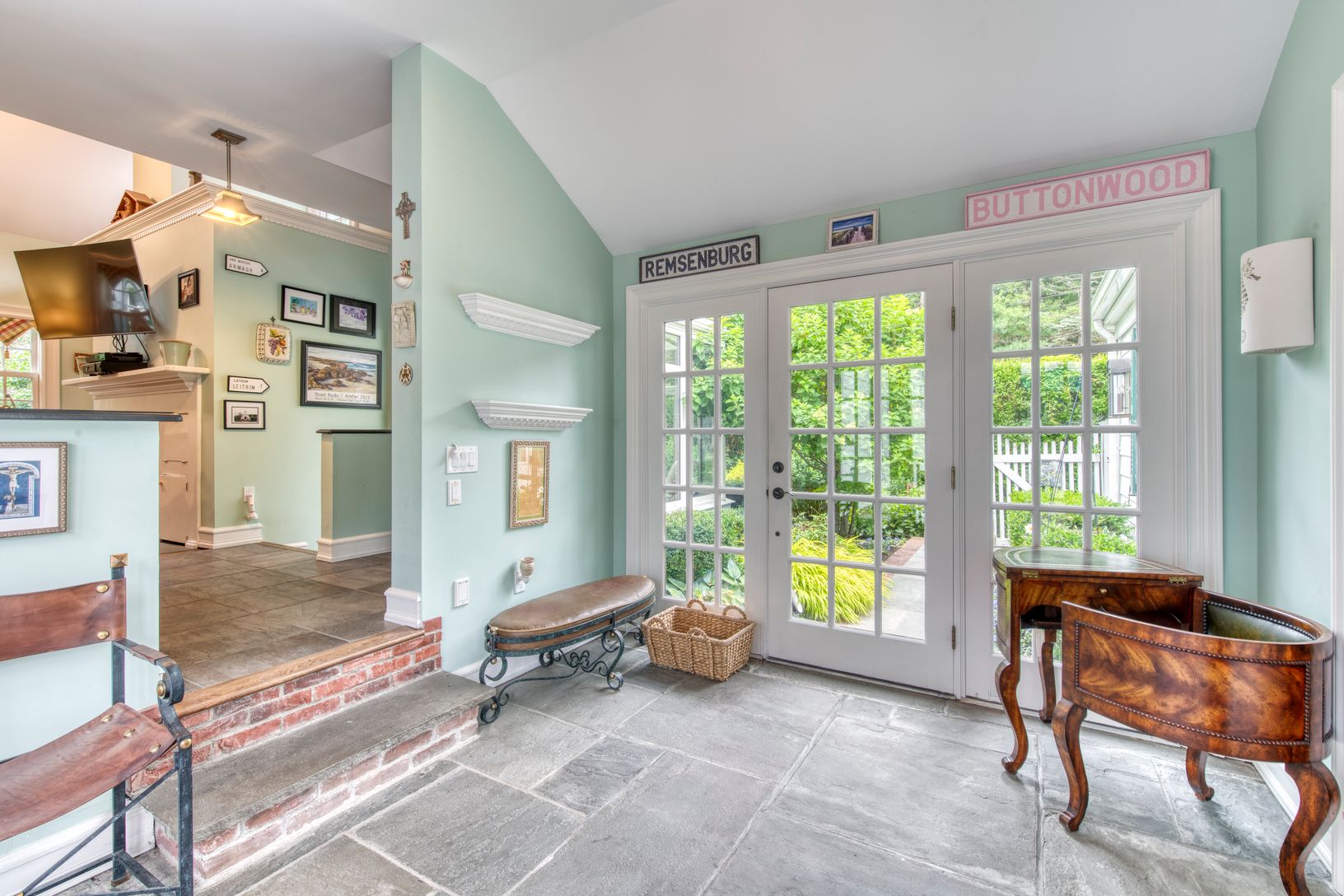 Step into another world as you open the front door to this home in Remsenburg. It was totally renovated and reconstructed in 2003 to bring it into the modern age and yet it retains the charm and beauty of the original home built in the 1820's. The gardens are absolutely beautiful with flowering shrubbery surrounding the gunite pool with a stone wall of cascading waterfall. The winding brick paths circling the property are hidden treasures with