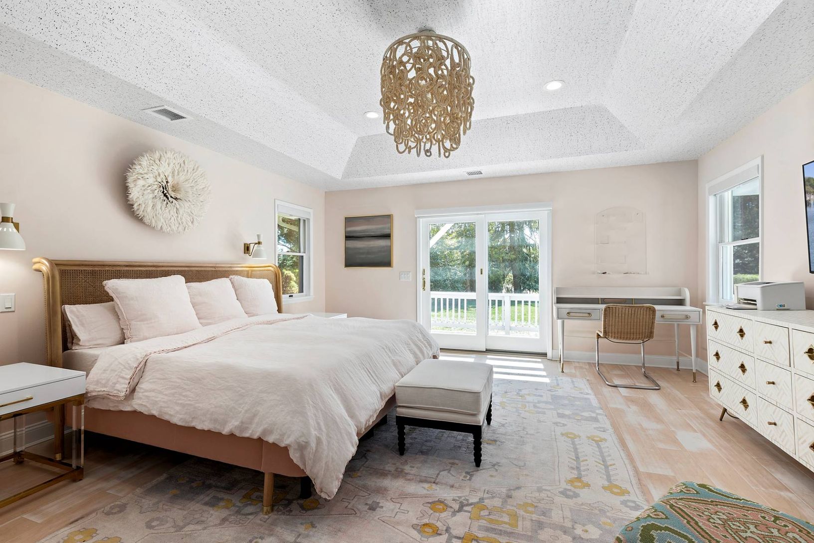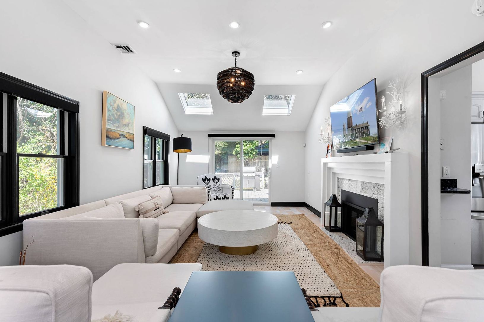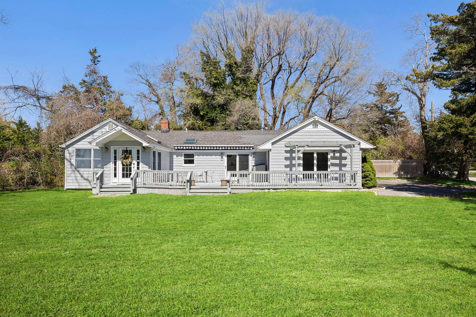 Enjoy relaxed Hamptons living in the picturesque Waterfront Community of Southampton Shores. This charming, completely redesigned and renovated cottage embodies relaxed Hamptons living with an elegant beach vibe. Inside, you'll find 3 bedrooms and 2 full baths on one level for easy living. The spacious primary suite offers a luxurious spa retreat with a soaking tub, steam shower, and TV. The open living room features vaulted ceilings and a fir