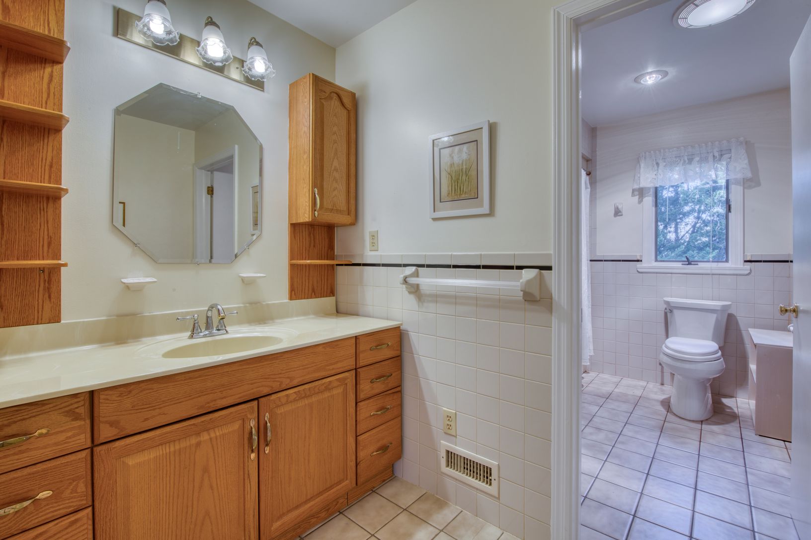 Floors: Hardwood, Tile