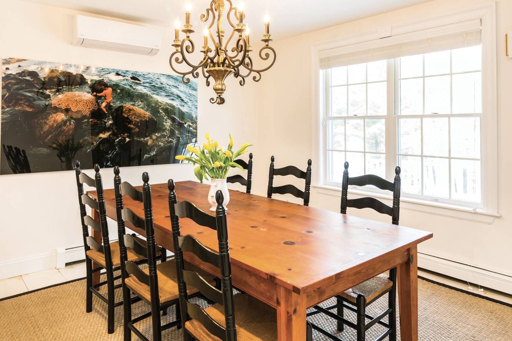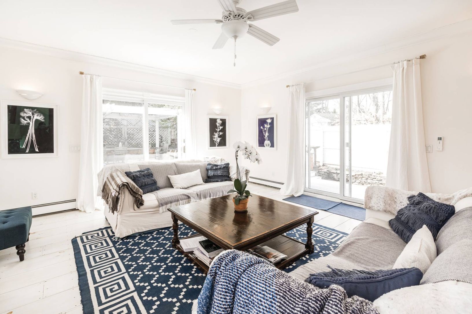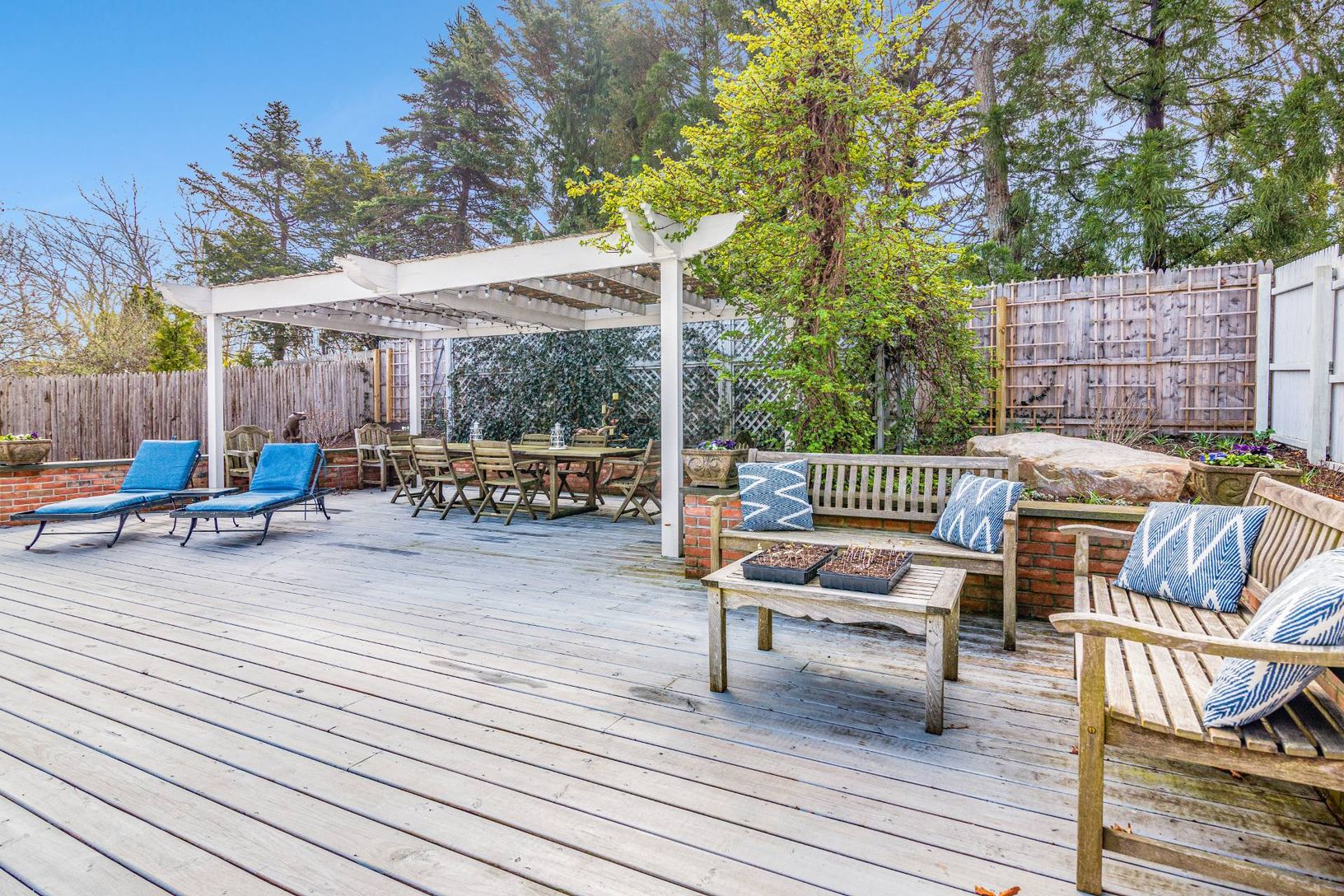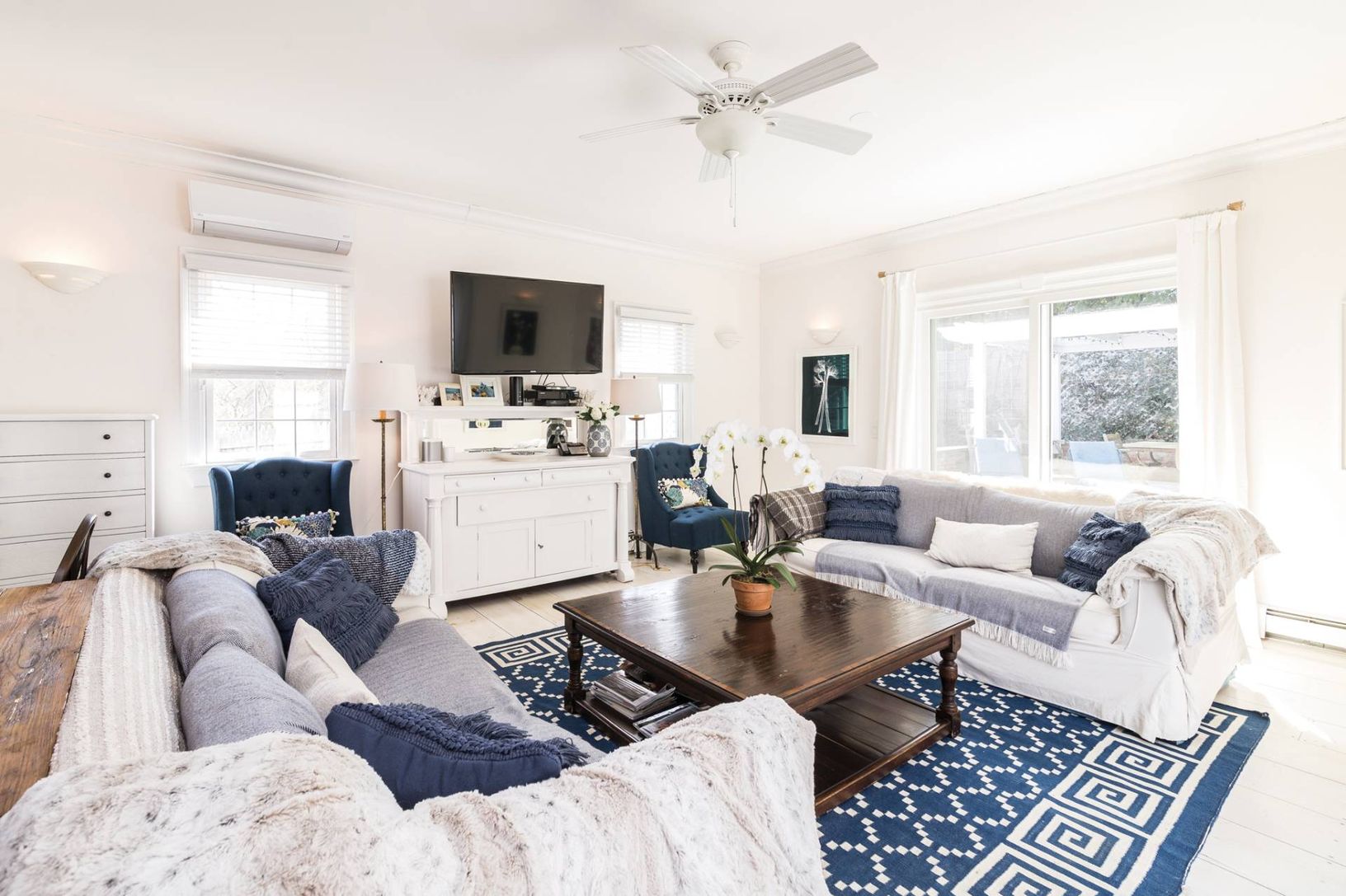 Located in desirable Sag Harbor Village, this charming 3 bedroom, 2.5 bath, 2-story home is perfect for entertaining and easy living inside and out. the house has wide-plank pine floors and is filled with natural light. The living room has 2 sliding glass doors that open to the rear decked patio, and flows seamlessly into the eat-in kitchen with Italian terracotta floors and wood cabinets. The adjacent dining room can also be a library or gene