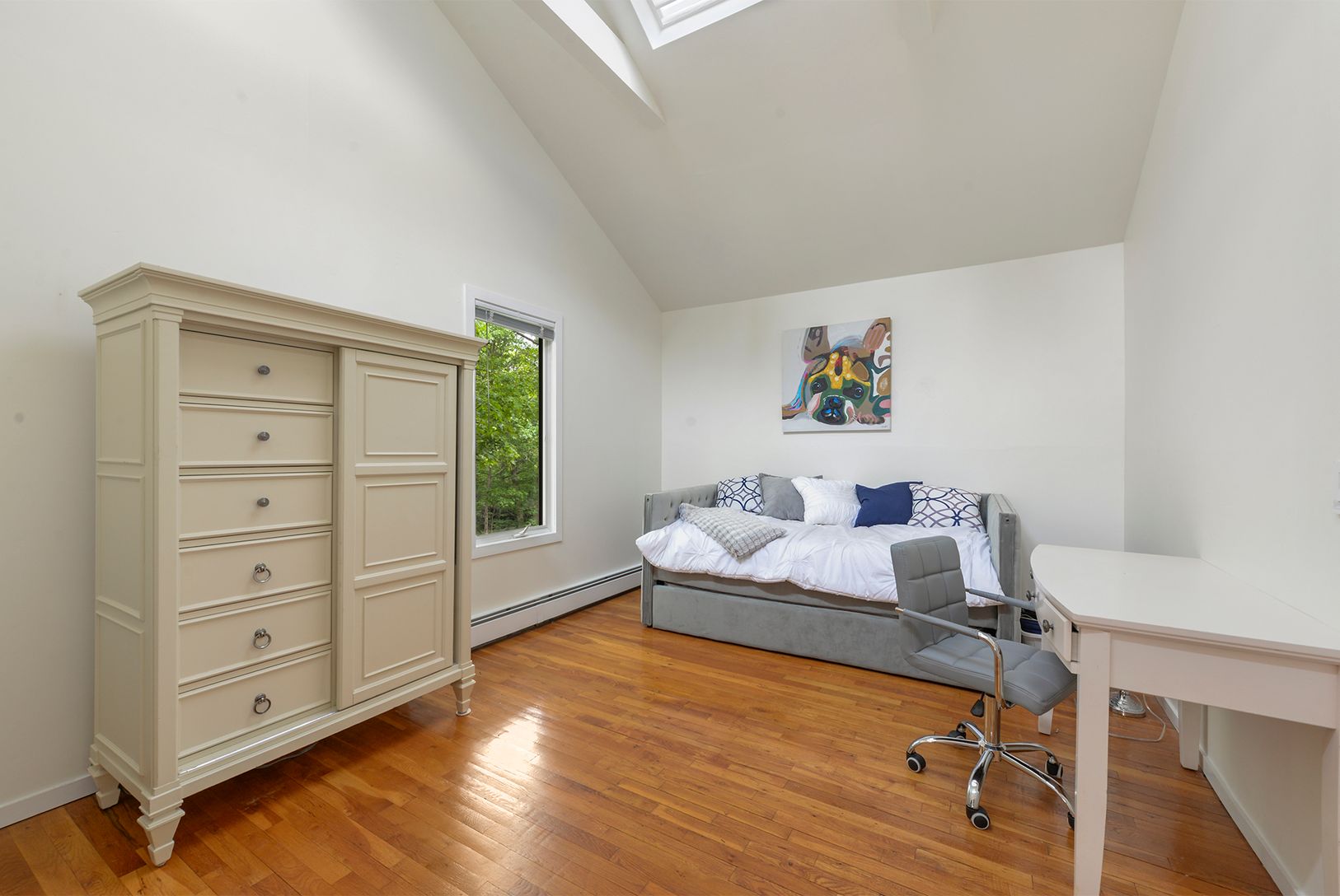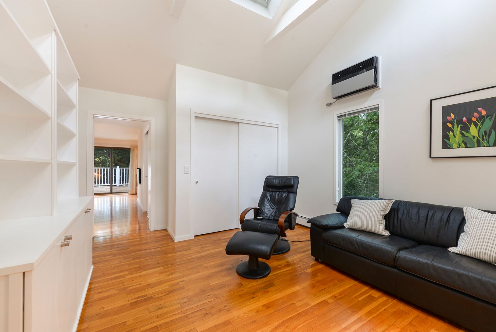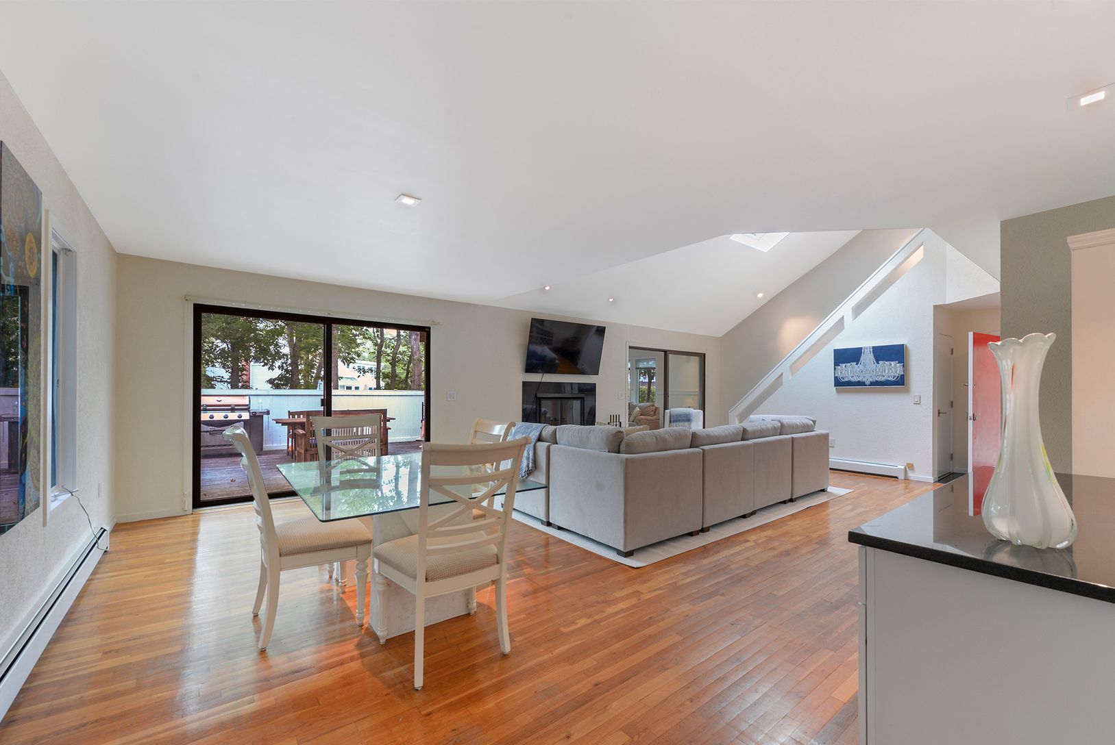 Escape to this contemporary 3 + bedroom retreat perfectly situated only two miles from the ocean, with private, deeded access to Shinnecock Bay - perfect for kayaking, paddleboarding, or enjoying the peaceful waterfront. The bright, sun-filled main floor features an open living and dining area with soaring cathedral ceilings, a spacious kitchen with center island ideal for gathering, and a separate sitting room/sunroom that leads out to the ba