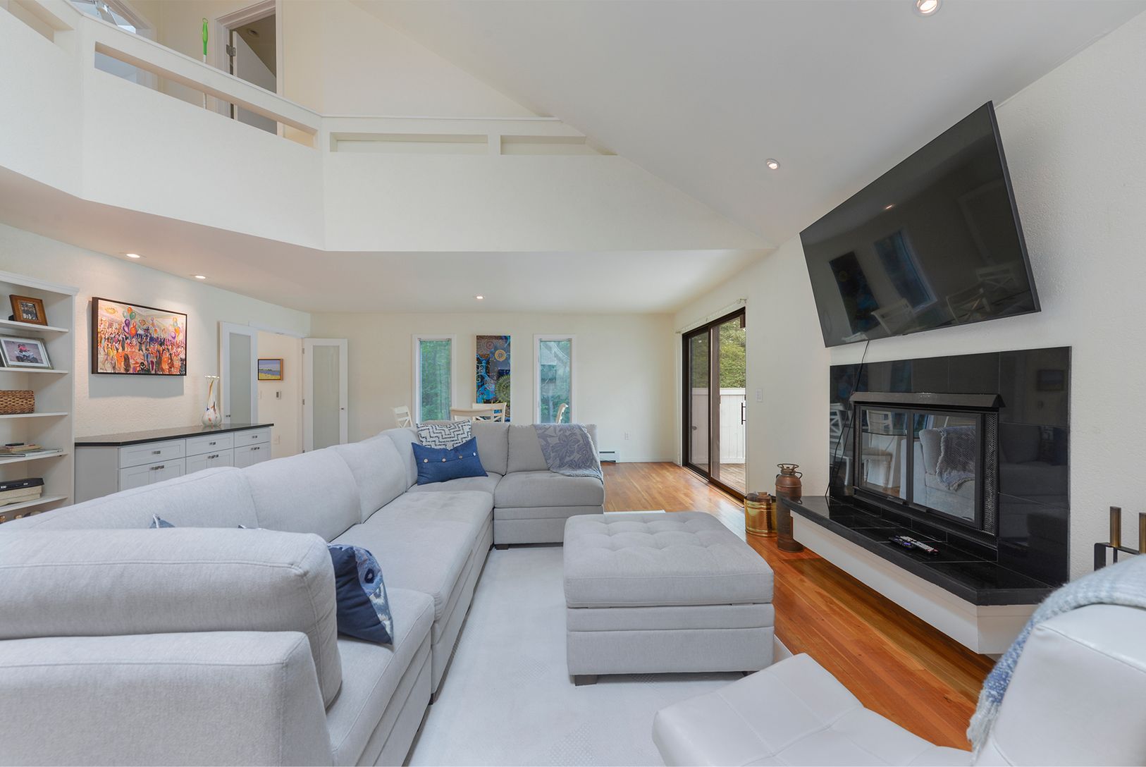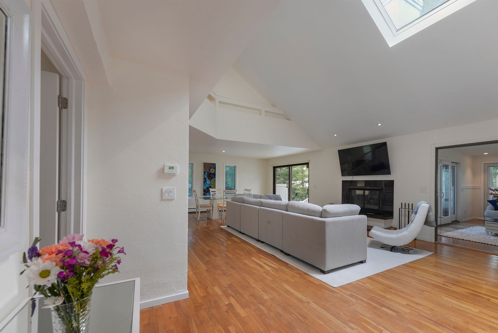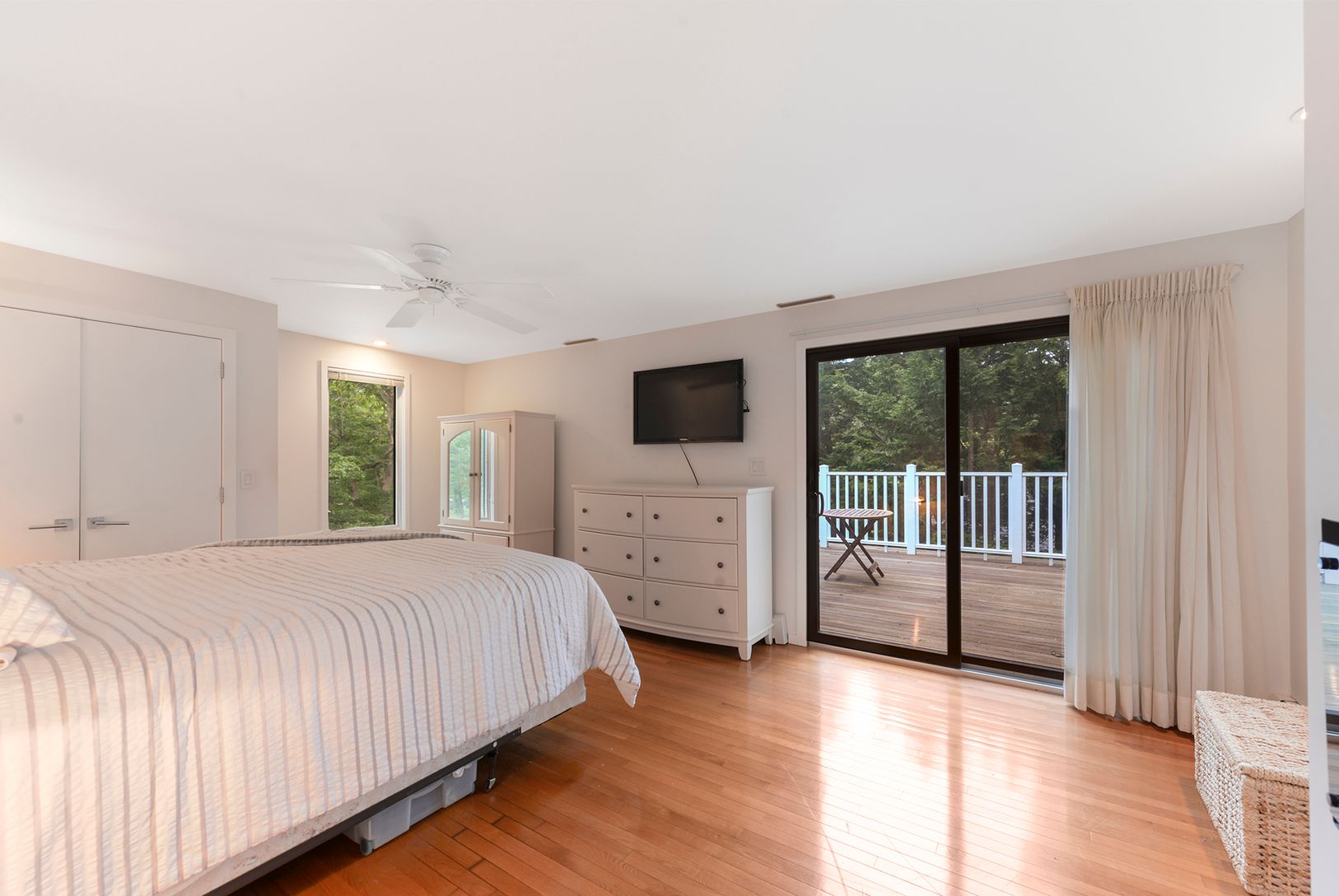 Escape to this contemporary 3 + bedroom retreat perfectly situated only two miles from the ocean, with private, deeded access to Shinnecock Bay - perfect for kayaking, paddleboarding, or enjoying the peaceful waterfront. The bright, sun-filled main floor features an open living and dining area with soaring cathedral ceilings, a spacious kitchen with center island ideal for gathering, and a separate sitting room/sunroom that leads out to the ba