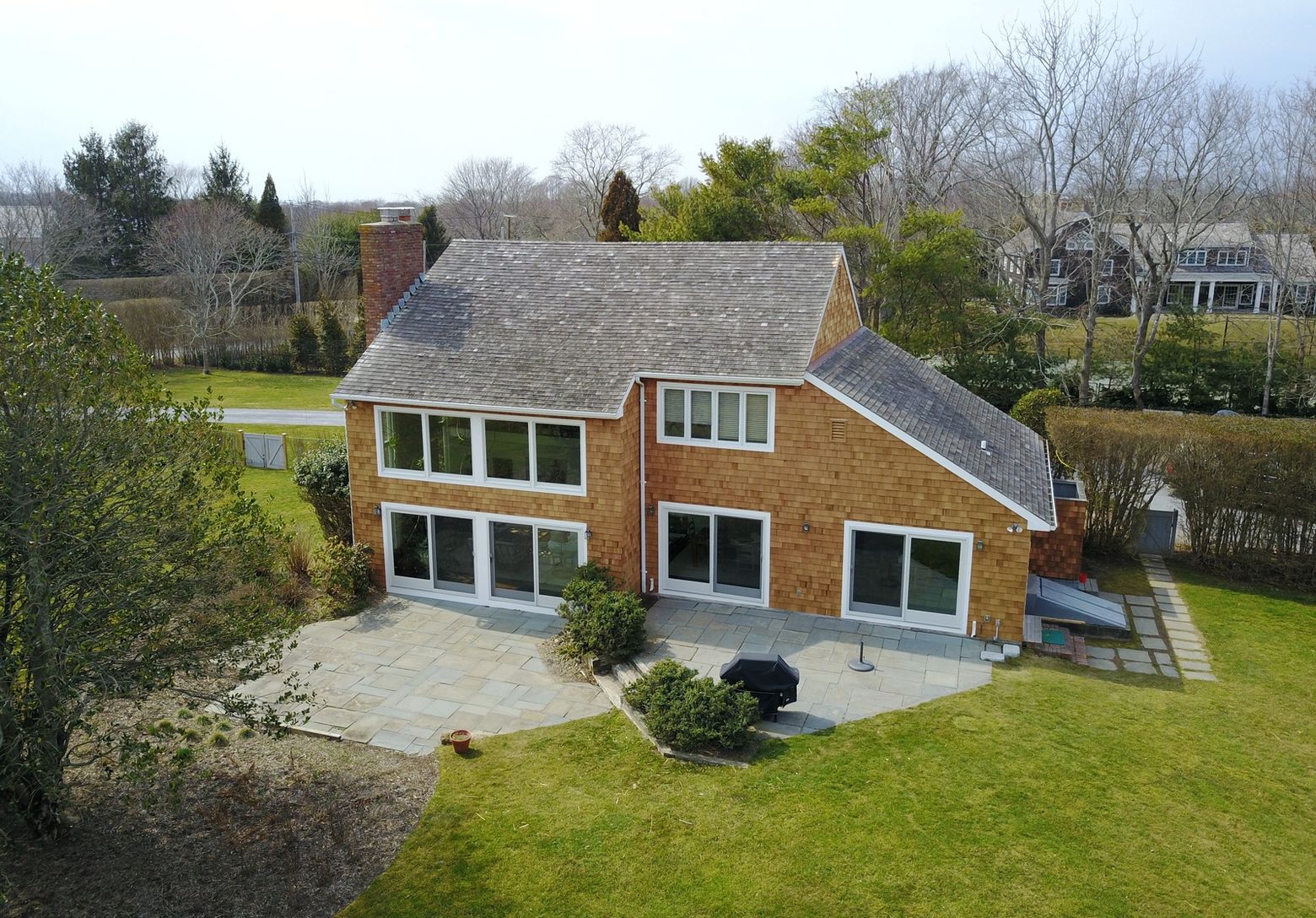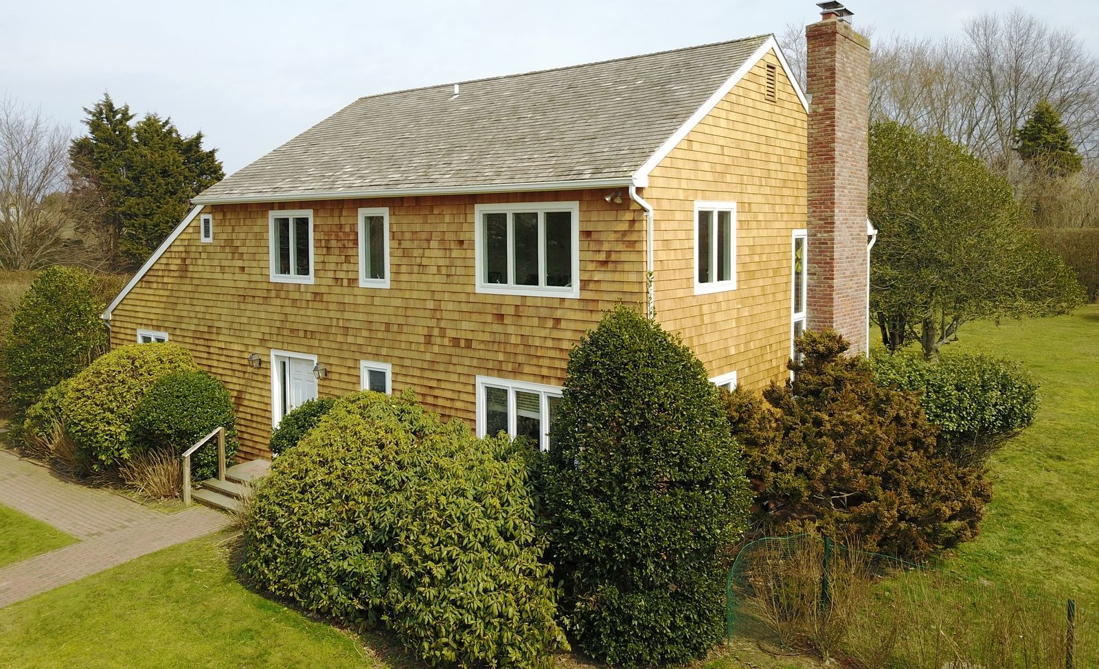 Spacious two-story contemporary home situated on a beautifully landscaped 1.7 acre hedged property. Double height living room with fireplace and tall glass windows over viewing the spacious backyard. Dining room, eat-in-kitchen, den, three bedrooms, two baths and a wonderful new outdoor shower. Enjoy the secluded backyard surrounding a heated 18' x36' pool.
