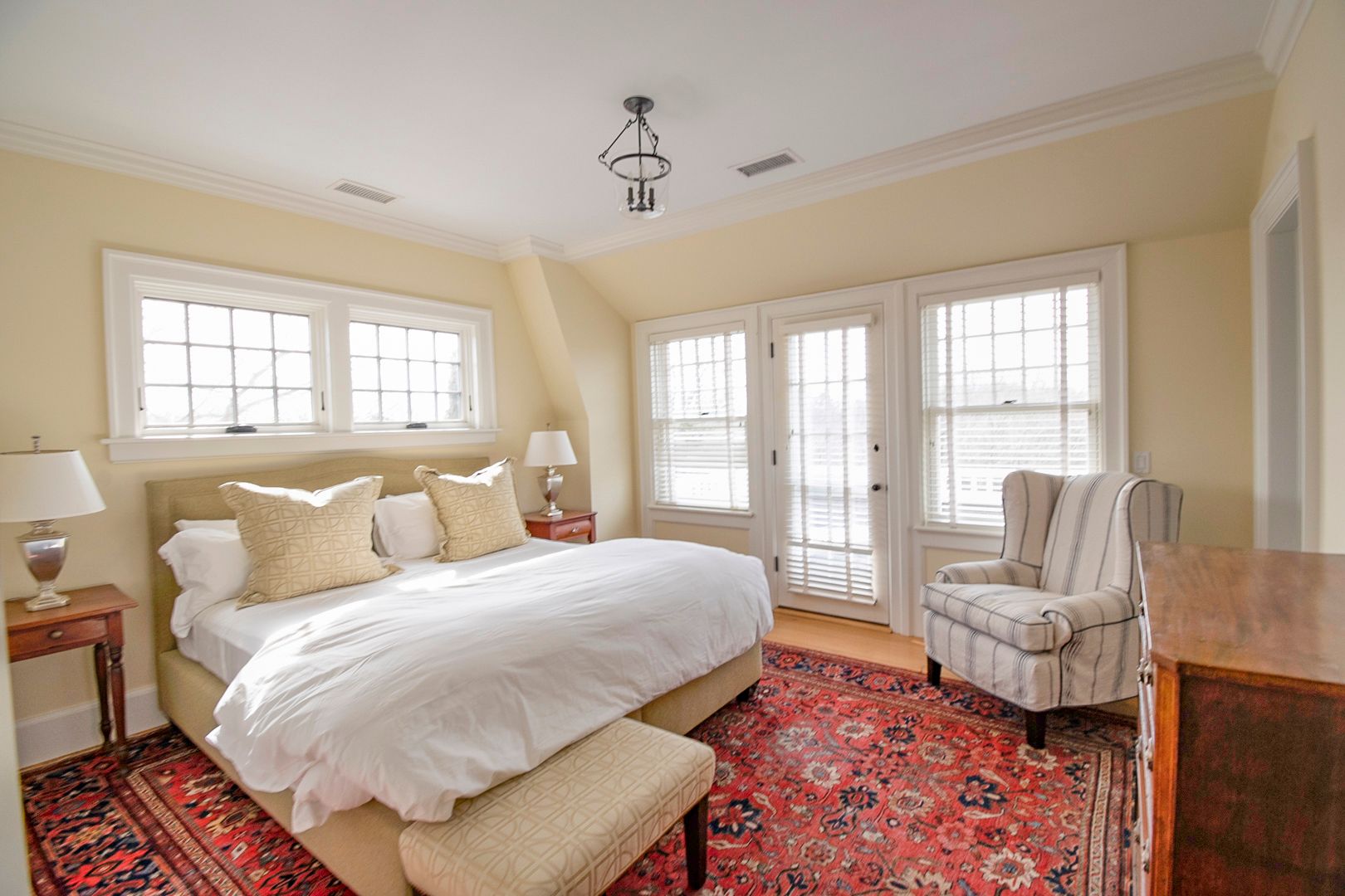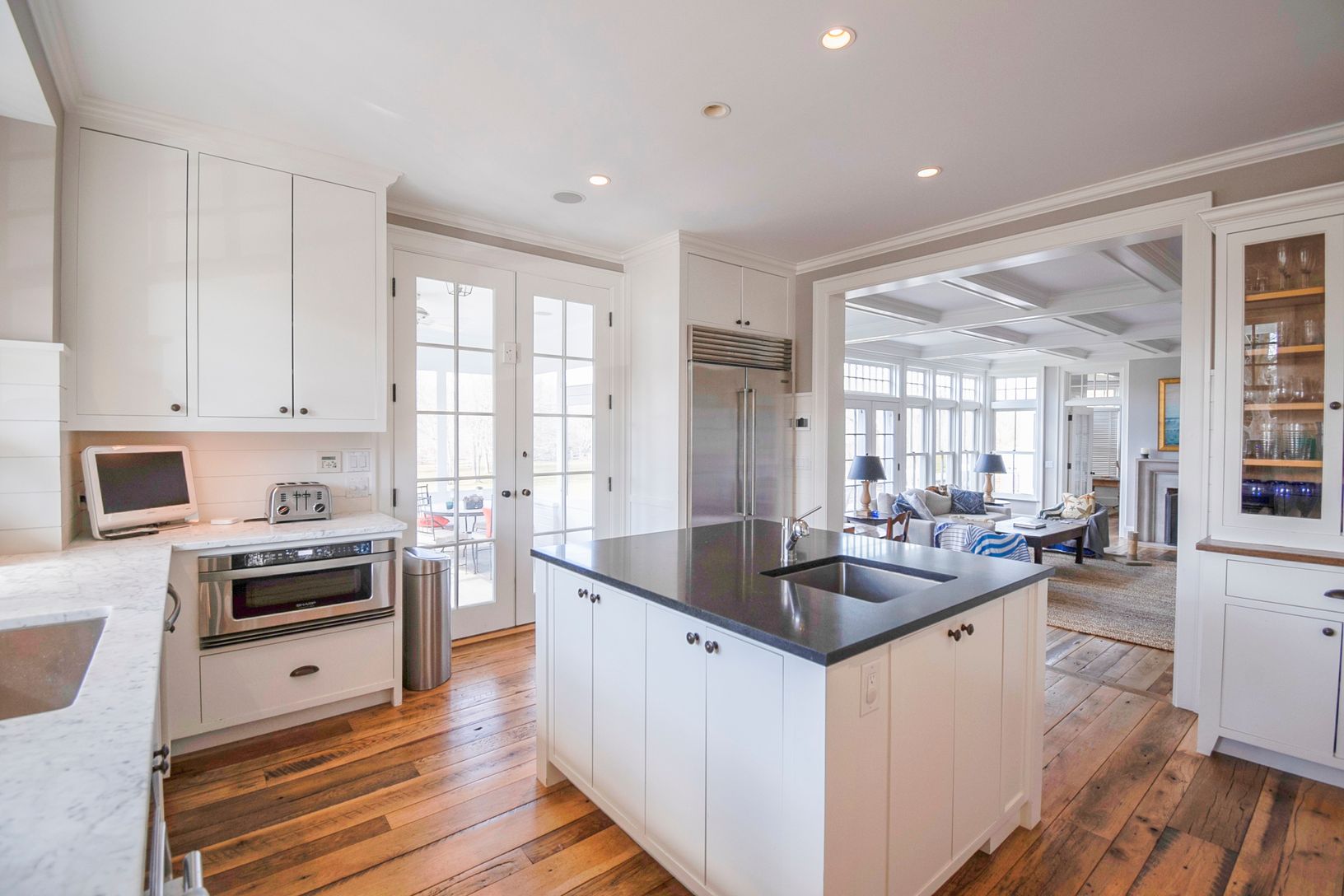 Beautifully built traditional house and studio cottage in of the few areas East Hampton Village that enjoys the rare combination of close proximity to both ocean beaches and village restaurants and shops. The 5300 square foot house designed by architect Peter Schulte features gracious proportions, high ceilings and beautiful details throughout. Ground floor comprises entry stair hall, sunny step-down living room with French doors to bluestone