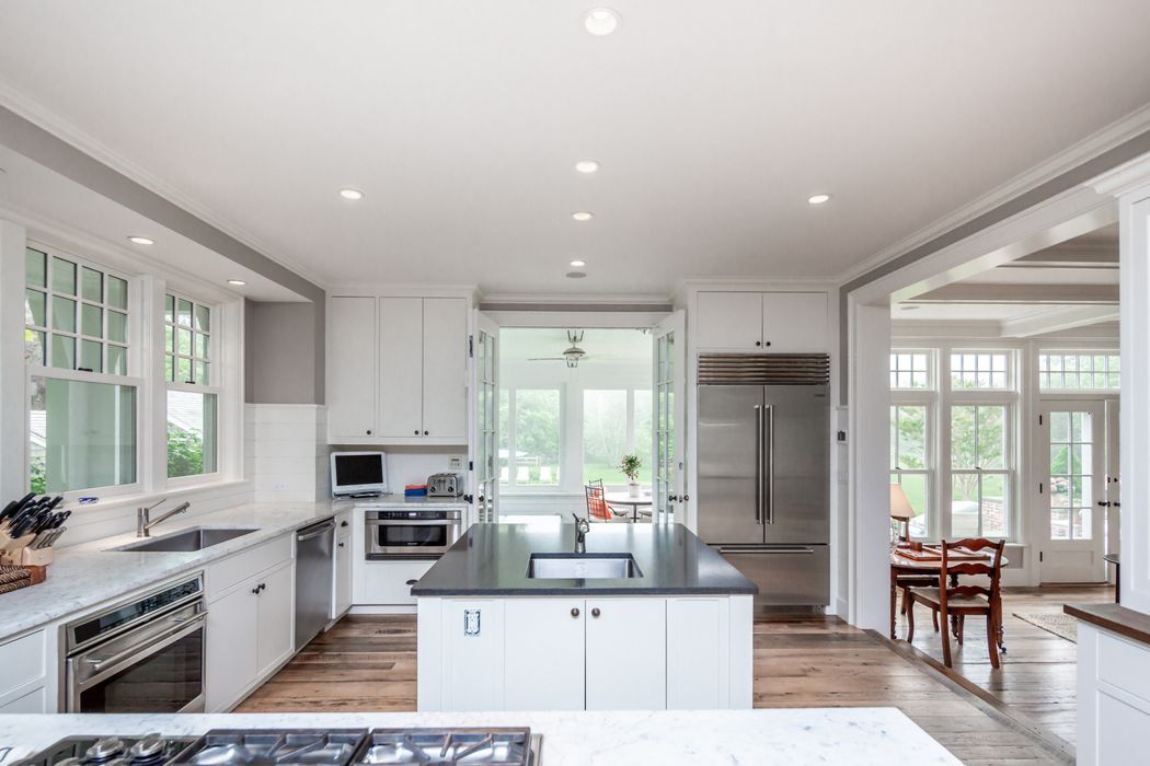 Beautiful traditional house and studio cottage in one of the few areas of East Hampton village that enjoys the rare combination of close proximity to both ocean beaches and village restaurants and shops. The 4,400 square foot house designed by architect Peter Schulte features gracious proportions, high ceilings and beautiful details throughout. Ground floor comprises entry stair hall; sunny step-down living room with French doors to bluestone
