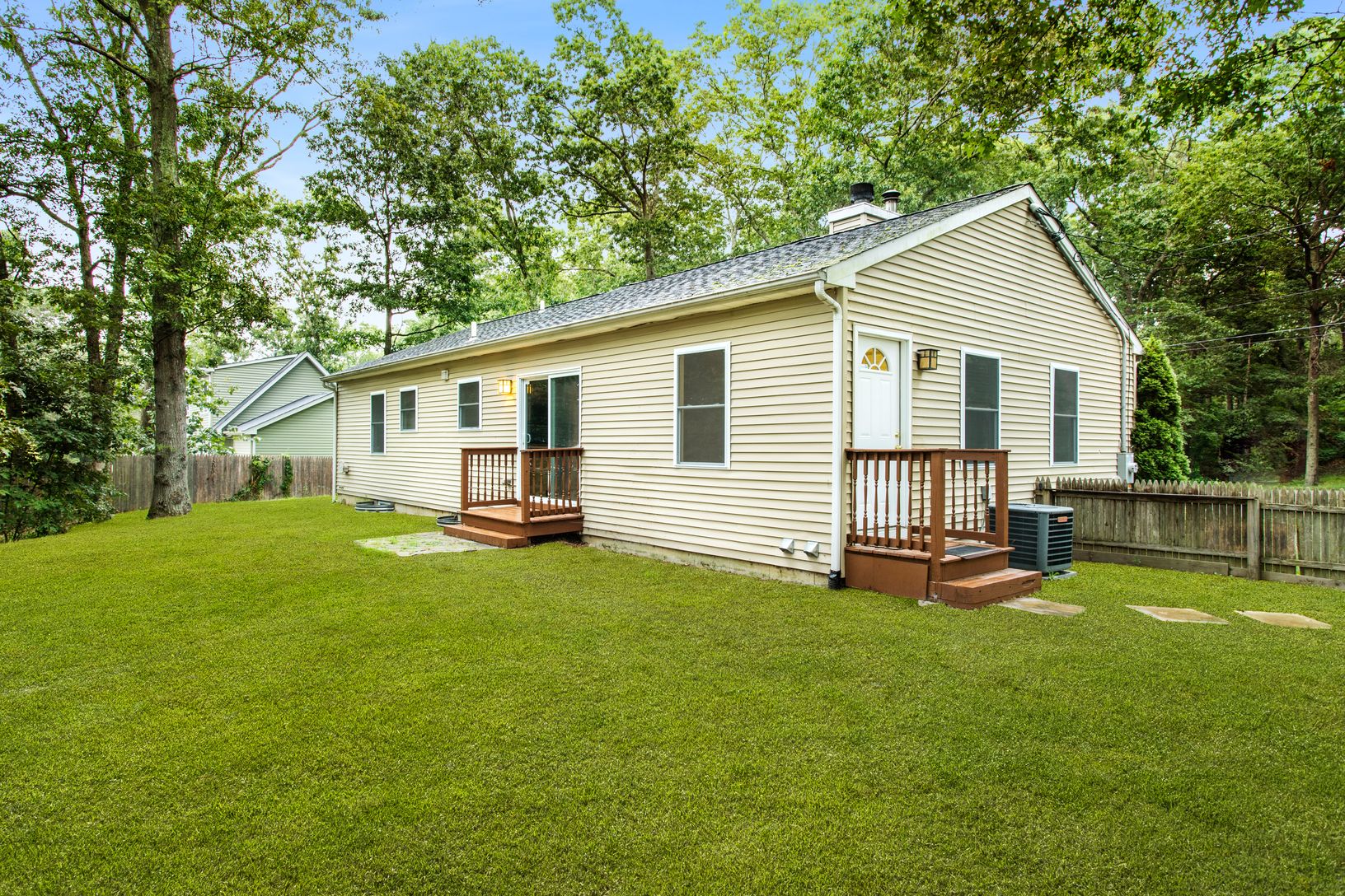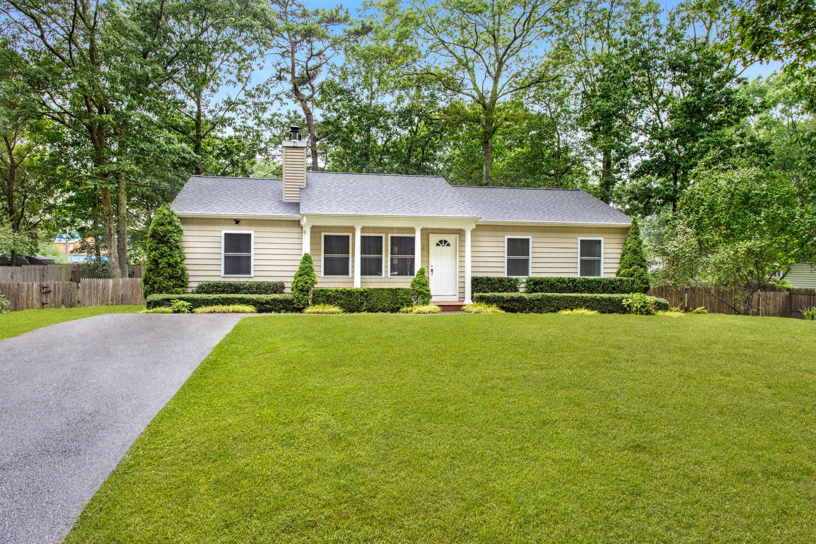 Situated on 0.23 acre this newly refreshed ranch style home offers many amenities including 4 bedrooms, 2 full baths, a wood burning fireplace, central a/c, eat in kitchen with granite countertops, and wood floors throughout. The lower level offers a full basement with a separate laundry room and plenty of room for storage or additional living space. Strategically located, this property is minutes from Reeves Bay, town center, the Hamptons, an