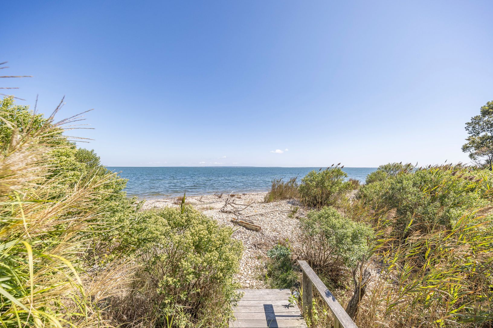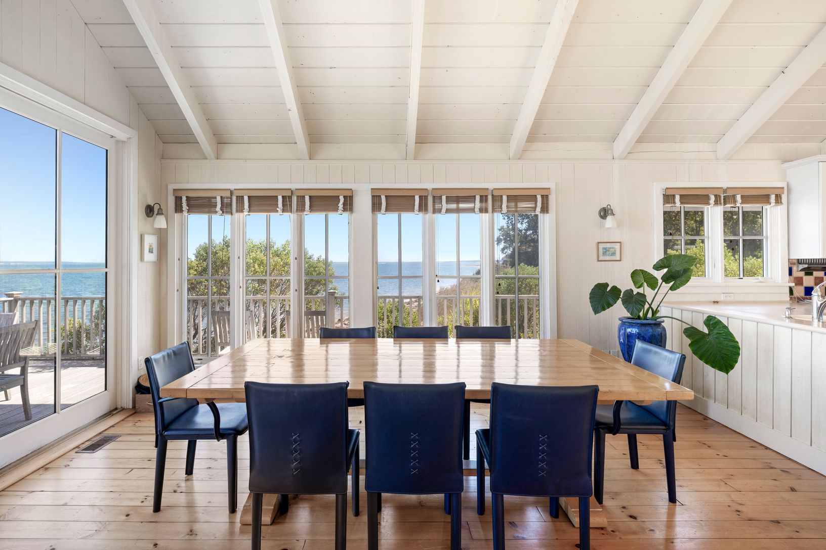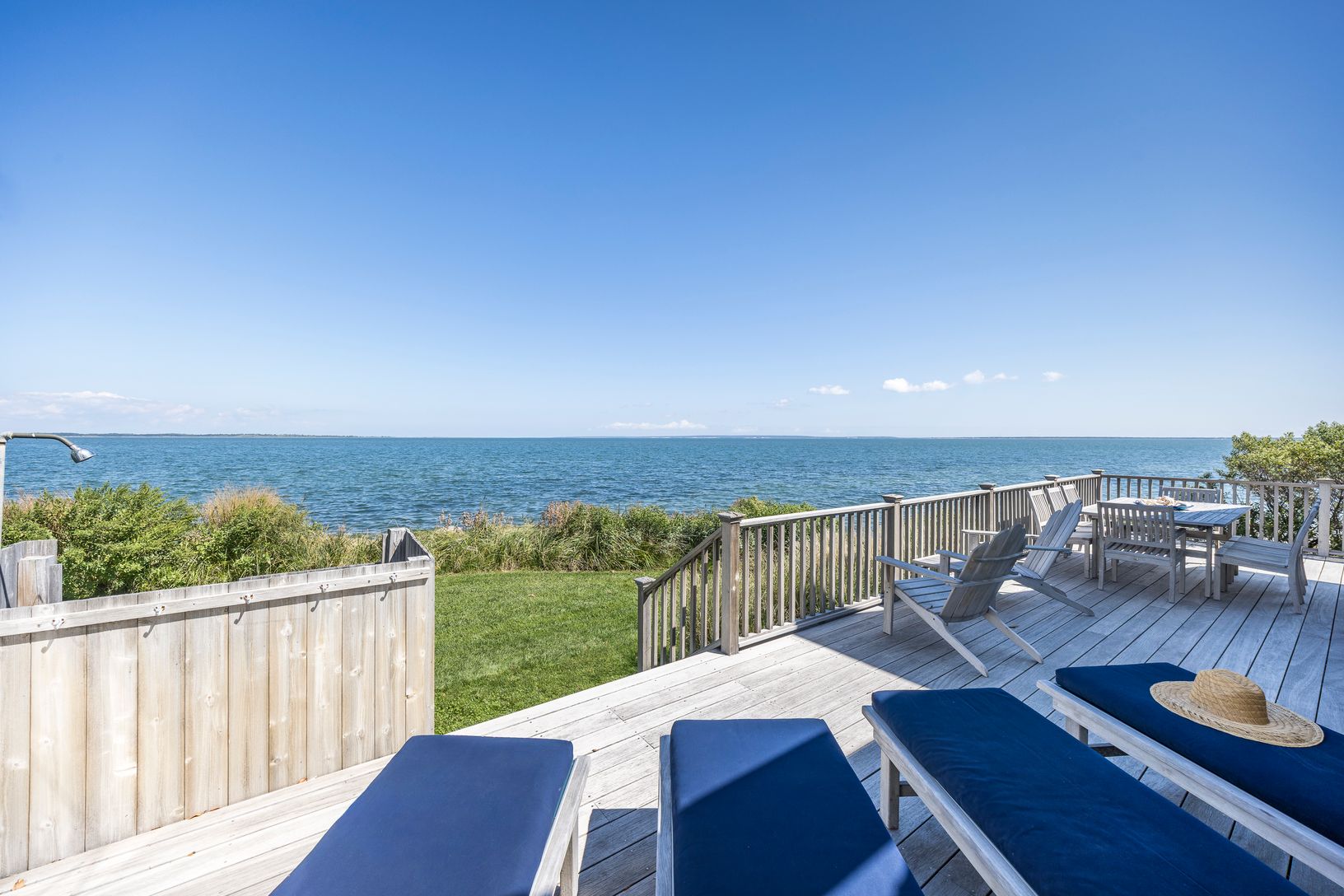 Set on an oversized bayfront parcel with sweeping views to Gardiners Island, this charming 2-bedroom, 2-bath beach house offers a rare sense of privacy and space in one of East Hampton's most scenic waterfront settings. Positioned on one of the largest lots on the street, the property is surrounded by mature trees and natural greenery, creating a peaceful retreat just moments from the bay. The home is filled with natural light and thoughtfully