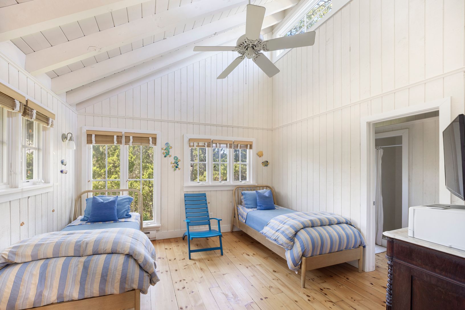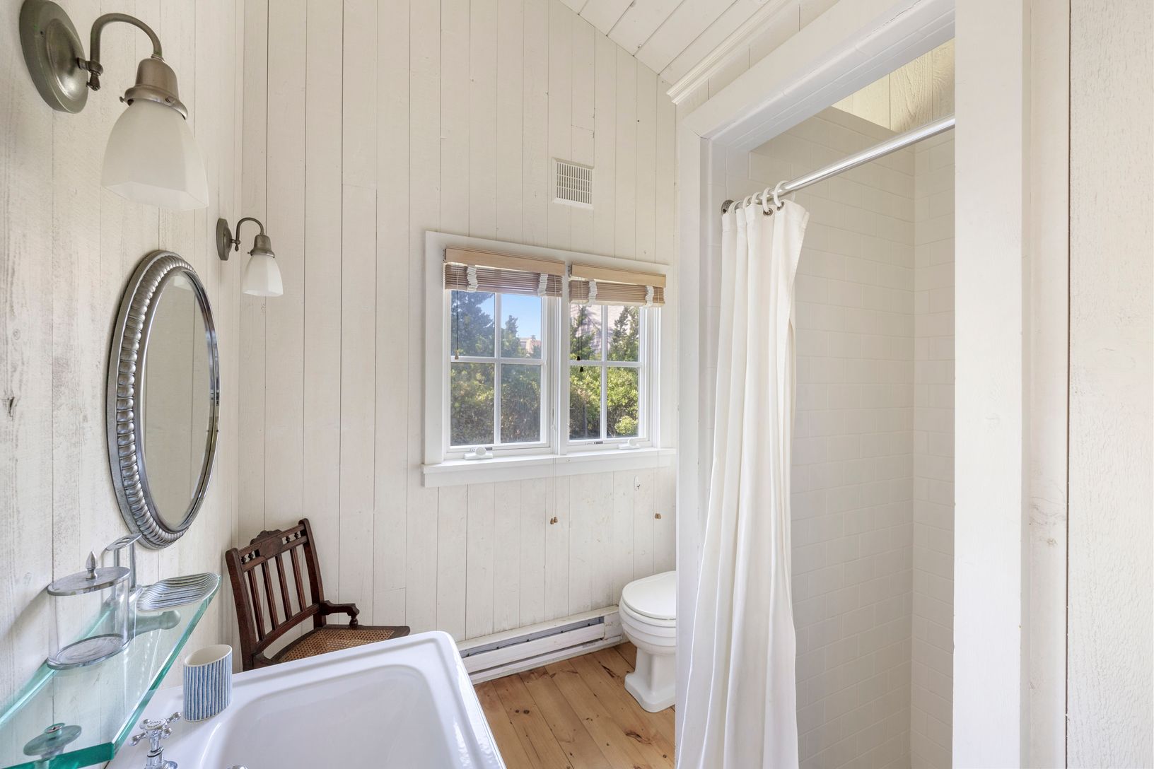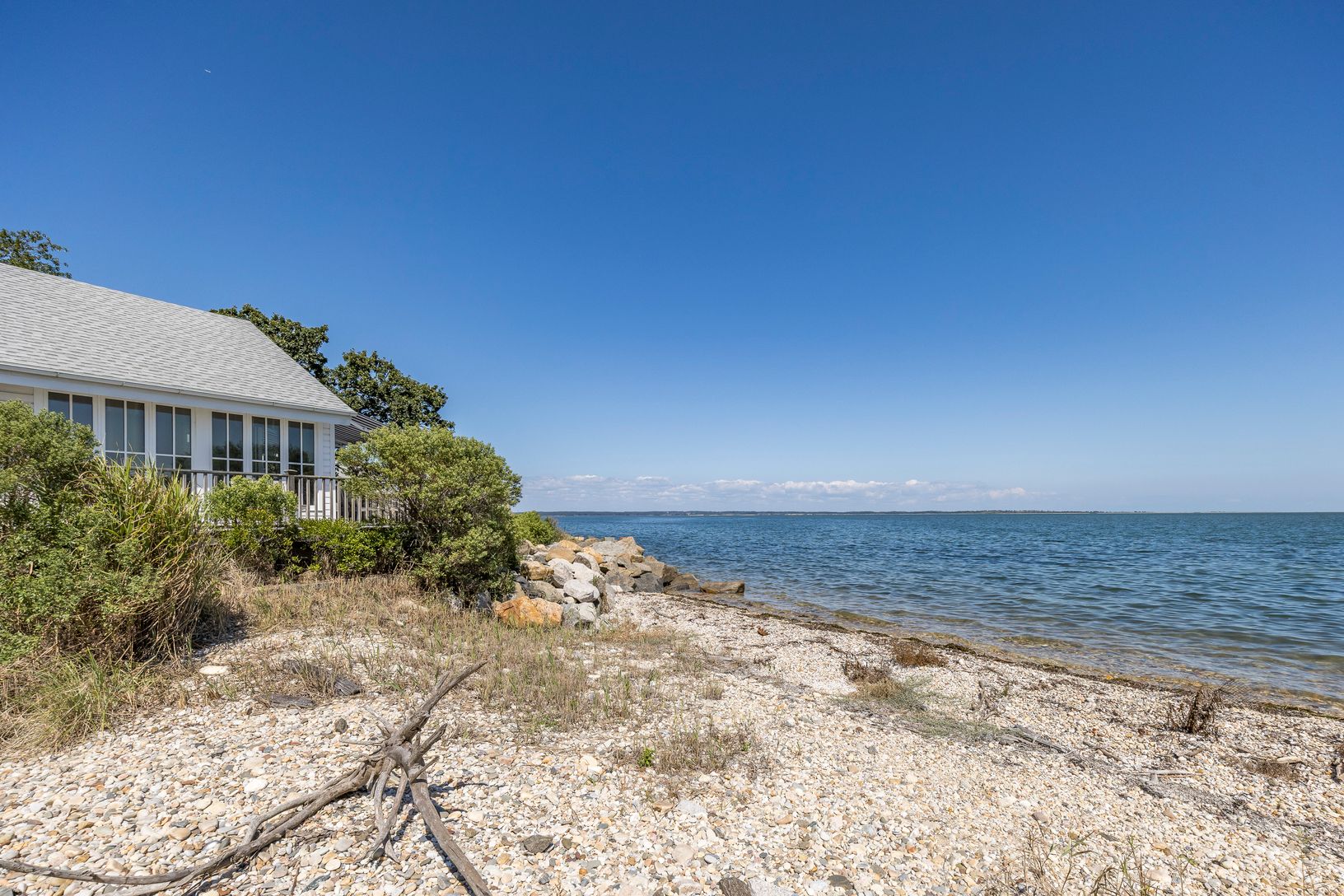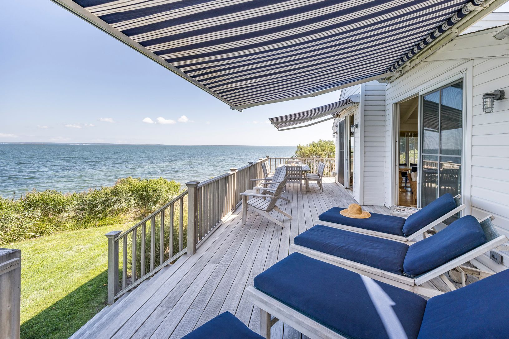 Set on an oversized bayfront parcel with sweeping views to Gardiners Island, this charming 2-bedroom, 2-bath beach house offers a rare sense of privacy and space in one of East Hampton's most scenic waterfront settings. Positioned on one of the largest lots on the street, the property is surrounded by mature trees and natural greenery, creating a peaceful retreat just moments from the bay. The home is filled with natural light and thoughtfully