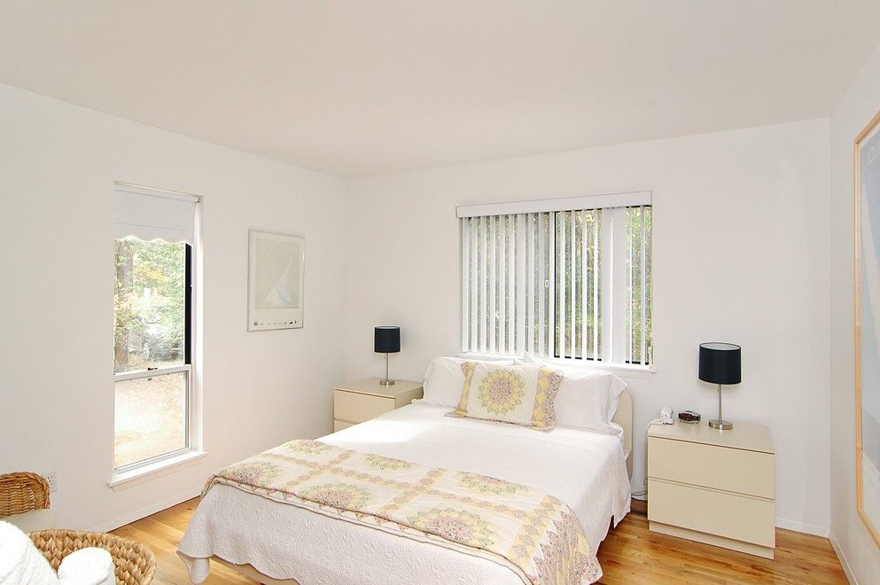 The all white interior of this 3 bedroom, 2 bath contemporary features stunning decor, a bright, light environment and vaulted ceilings with skylights. This Contemporary has been recently renovated.The kitchen has a new interior, replete with granite counter tops, all stainless steel appliances, and natural maple cabinetry. The newly updated baths feature marble tile, pedestal sinks, and new fixtures. The location, which is within a stroll to