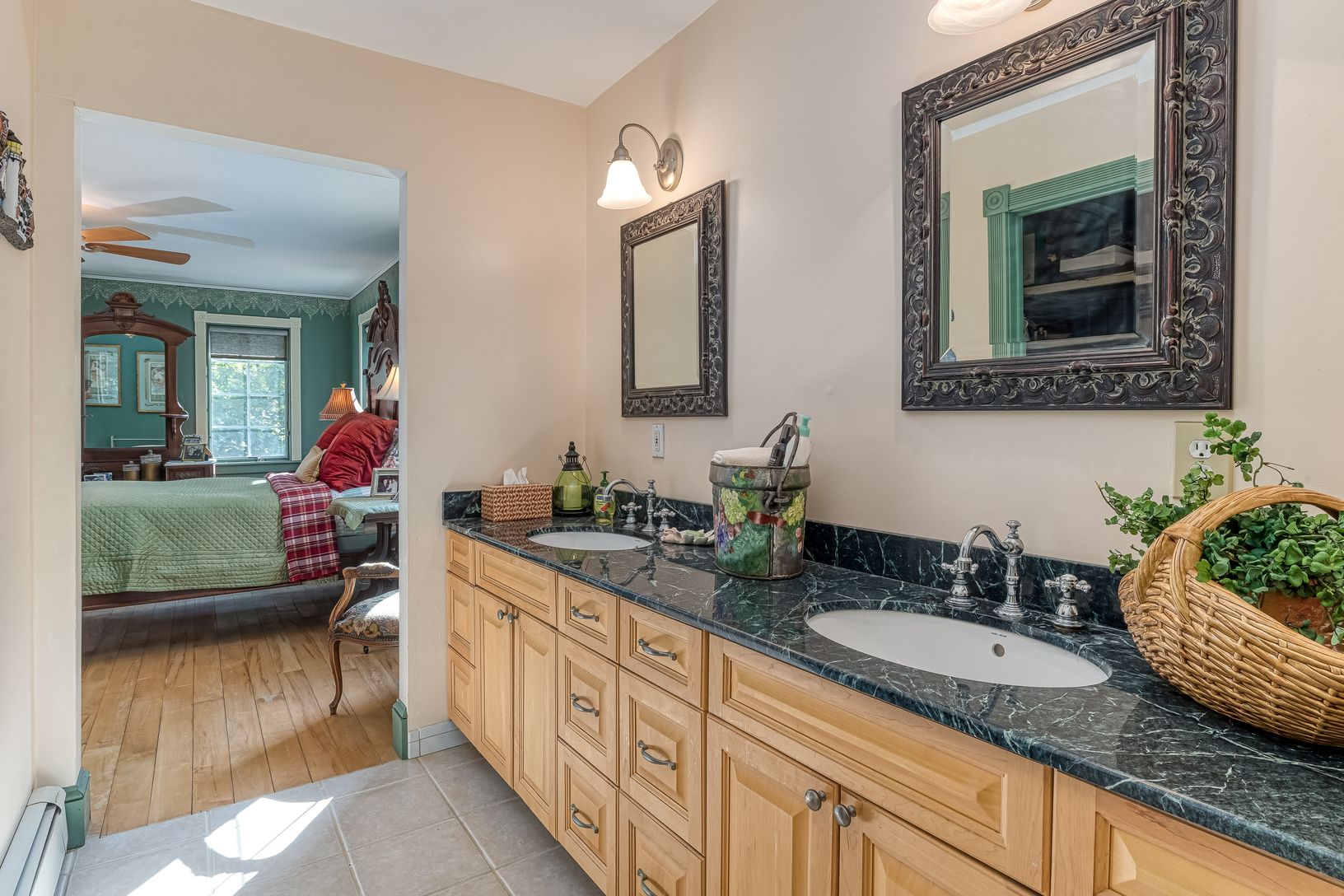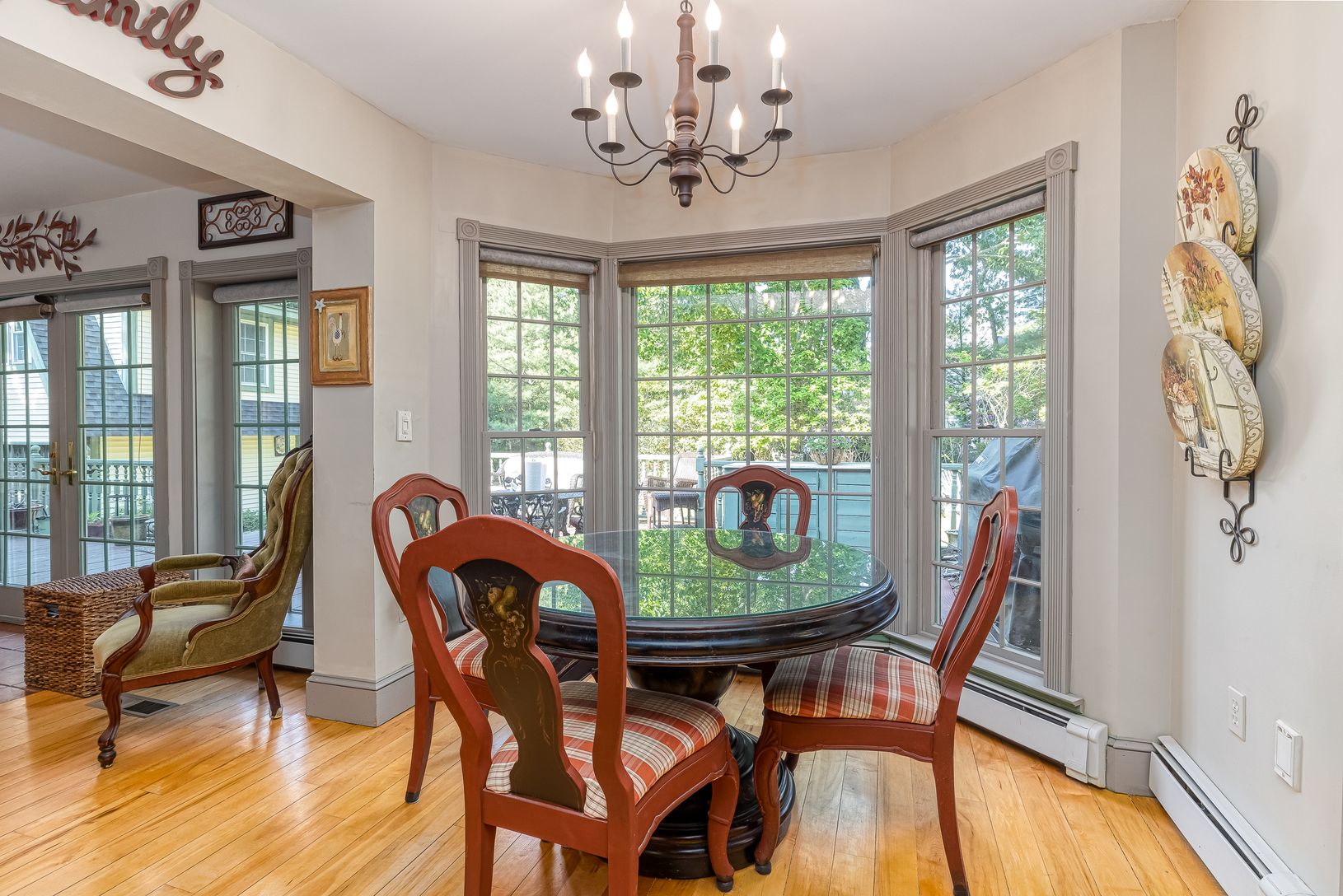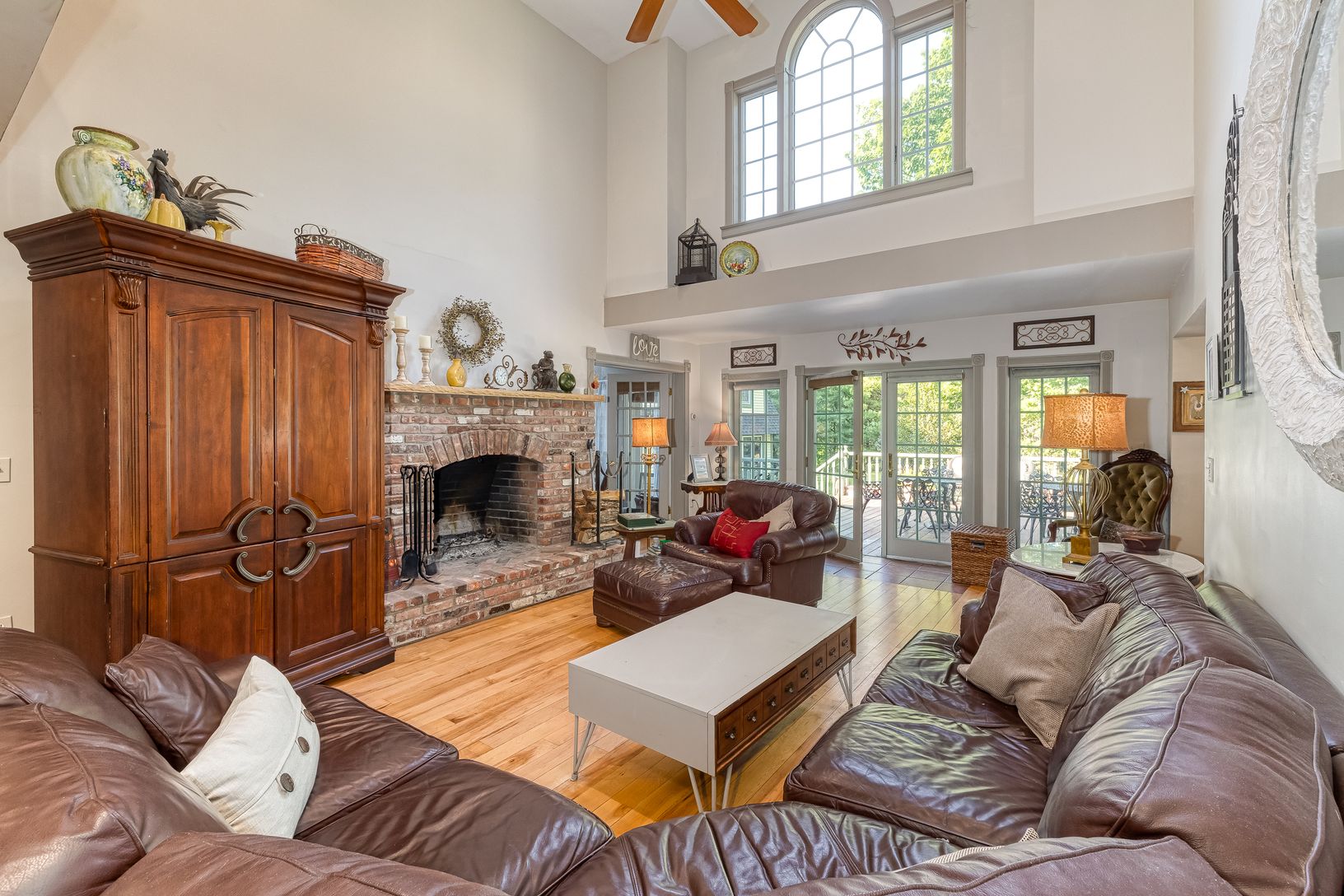 New to the North Fork Market! Cutchogue, Nassau Point exceptional contemporary farmhouse located at 1235 Wunneweta Road, Cutchogue features an open plan and soaring vaulted ceilings. Entry hall, living room/great room with red brick wood-burning fireplace, sunroom/den, large eat-in-kitchen with breakfast bay, pantry and mud room, formal dining room, powder room, and main floor owner's suite with full bath. Upstairs is found a loft/den/office,