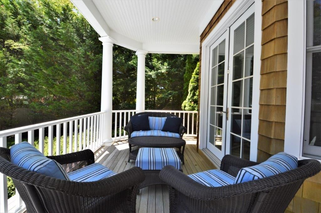 Immaculate shingled Post Modern offering spacious entry foyer, cathedral ceiling living area with fireplace and French doors to deck, dining room, eat-in-kitchen with granite counters, stainless steel appliances and center island. A den, laundry room, bedroom with fireplace and full bathroom complete the first floor. The second floor features large master suite with balcony, walk in closet, marble bathroom with double vanities, plus 2 additi
