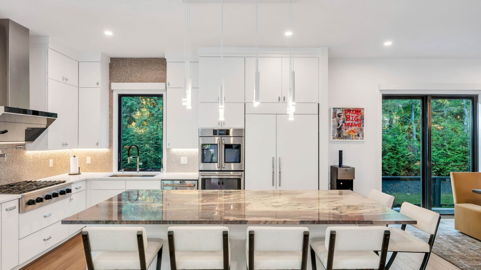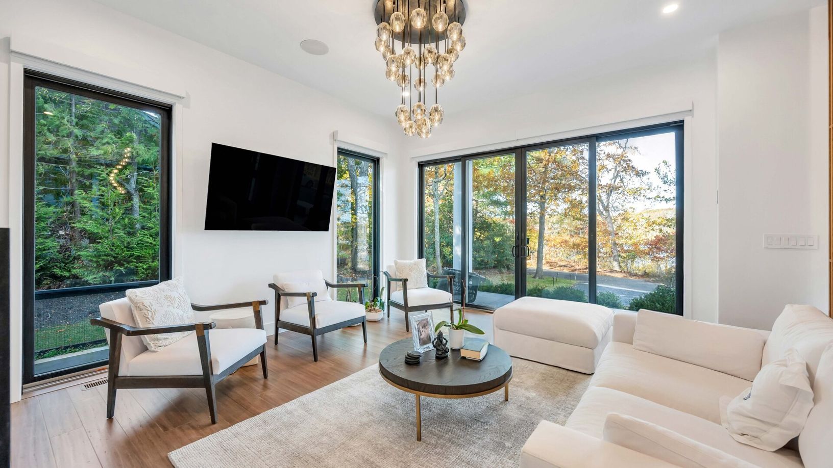 Experience the ultimate Southampton getaway in this newly built modern retreat, where sleek design meets the tranquility of waterfront living. This chic 4-bedroom, 4.5-bath sanctuary sits just across from Big Fresh Pond, offering panoramic lake views and the serenit