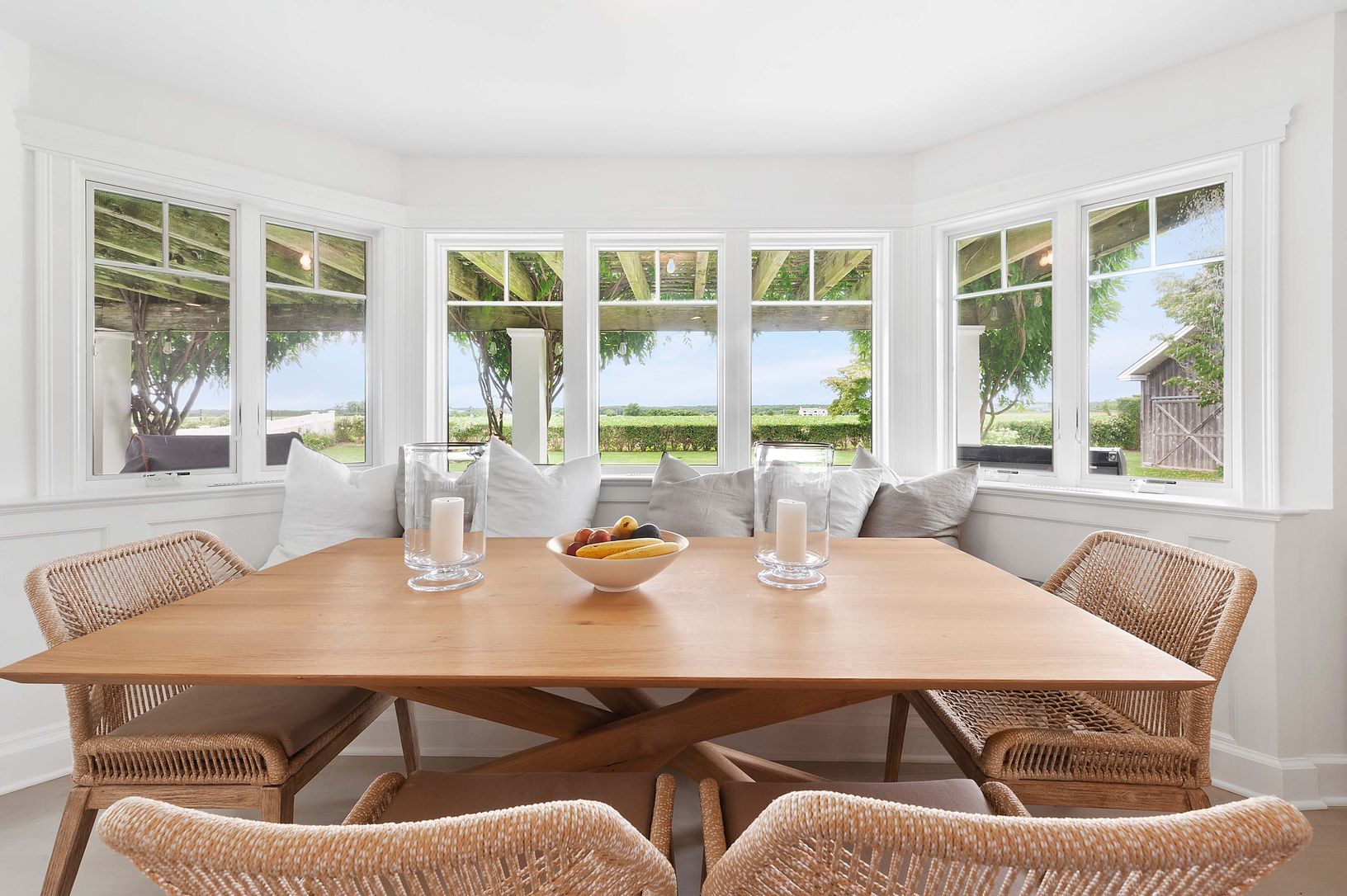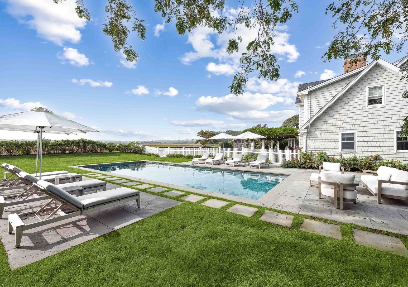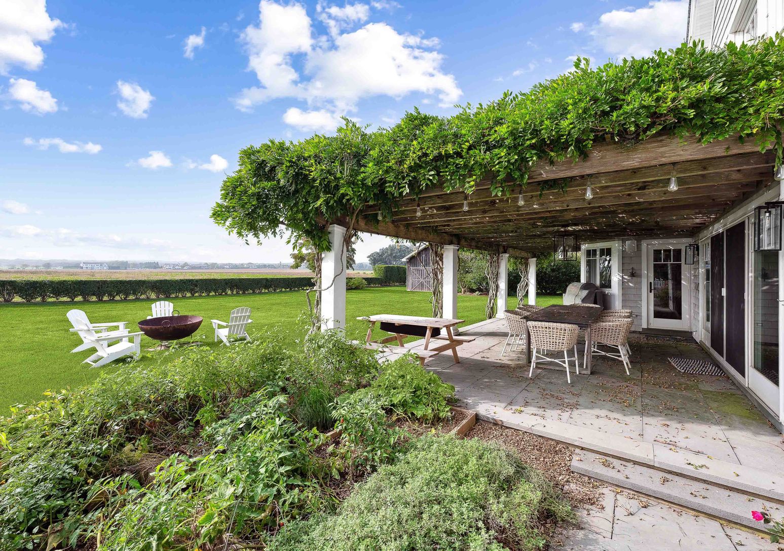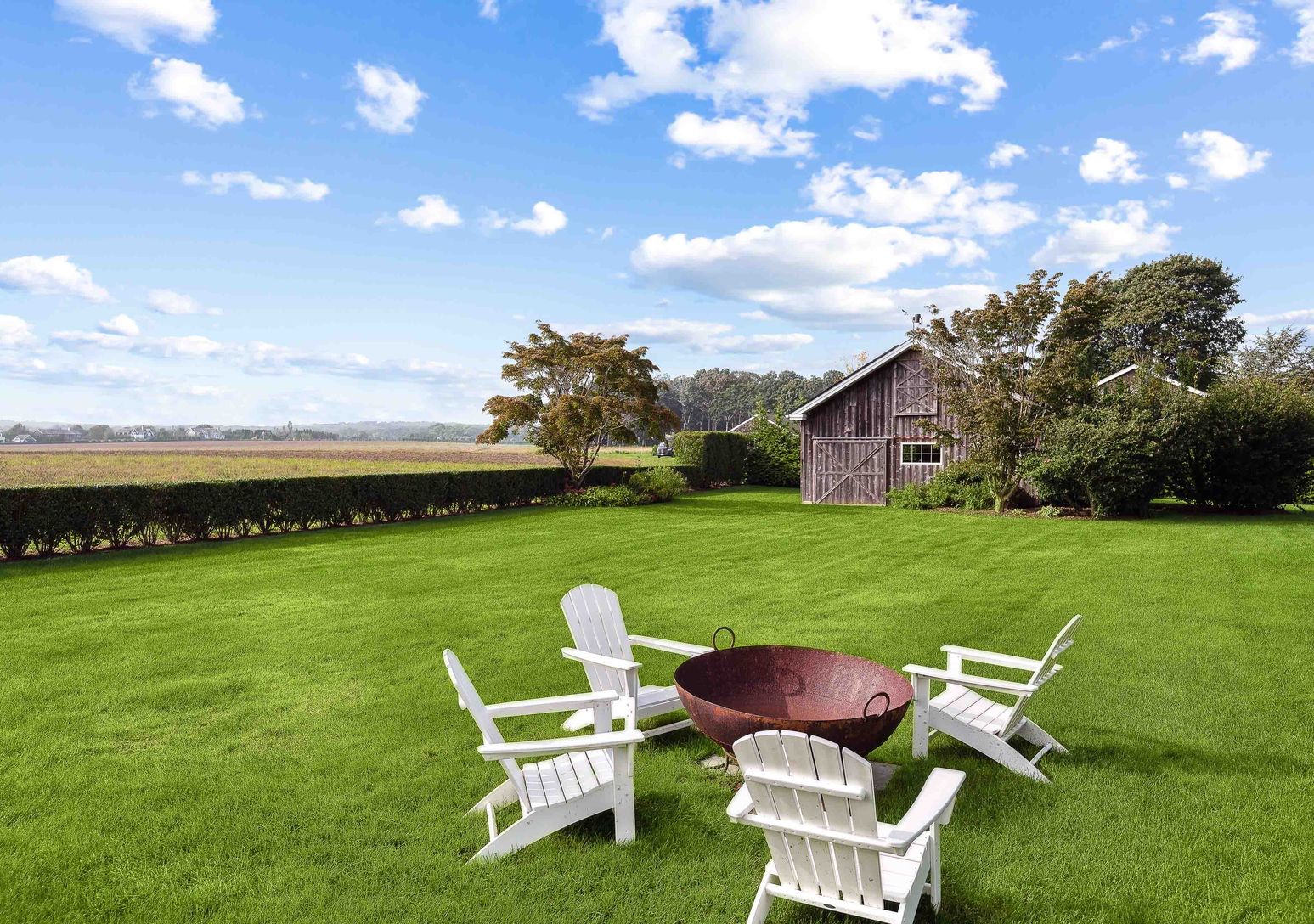 Boasting 4,731 SF+/- on .91 acres+/- is 124 Blank Lane, a traditional-style residence situated alongside a 150 acre+/- farmland reserve on a quiet street in Water Mill. The home is impeccably constructed and meticulously maintained, having completed a gut renovation in 2022. Dramatic sunset vistas frame the entertaining areas of the main level, which includes a spacious chef's kitchen with a banquette, a living room with a gas fireplace, a lib