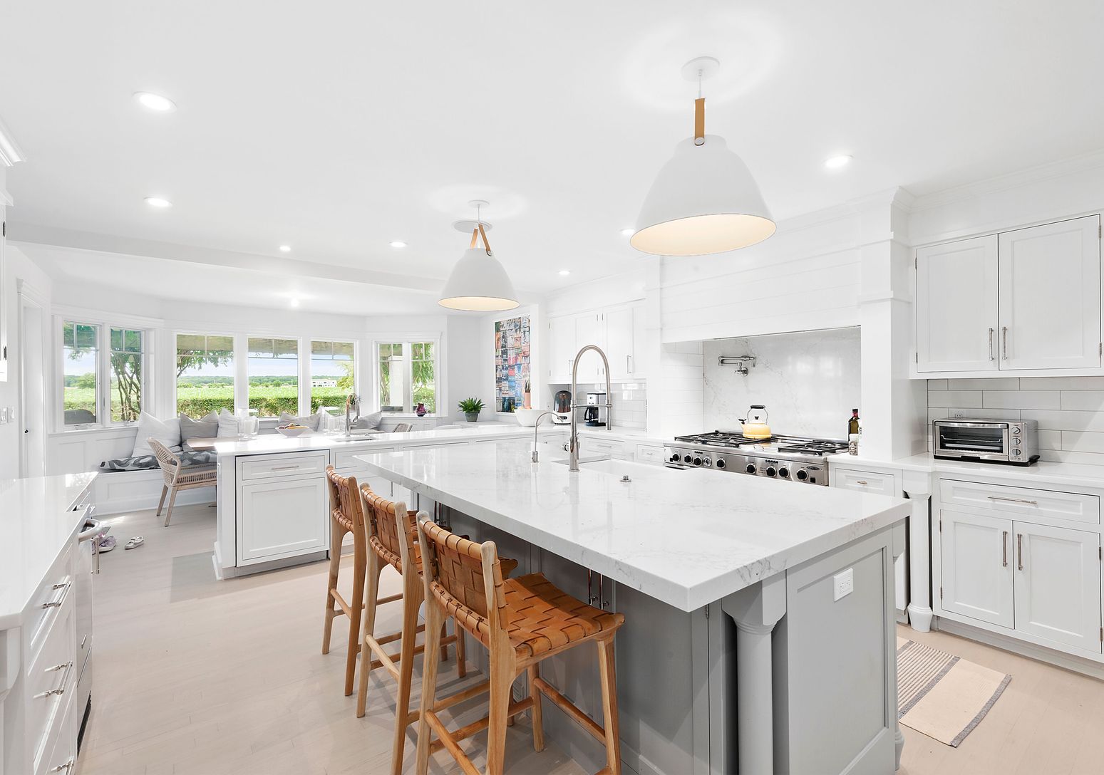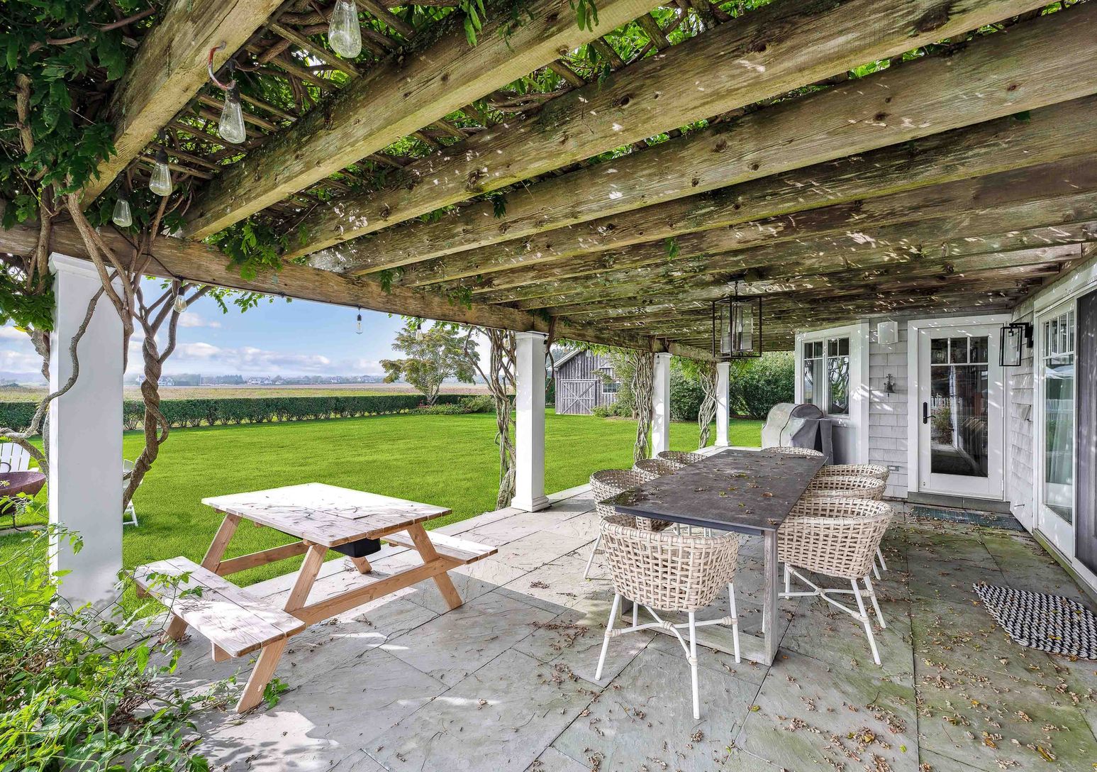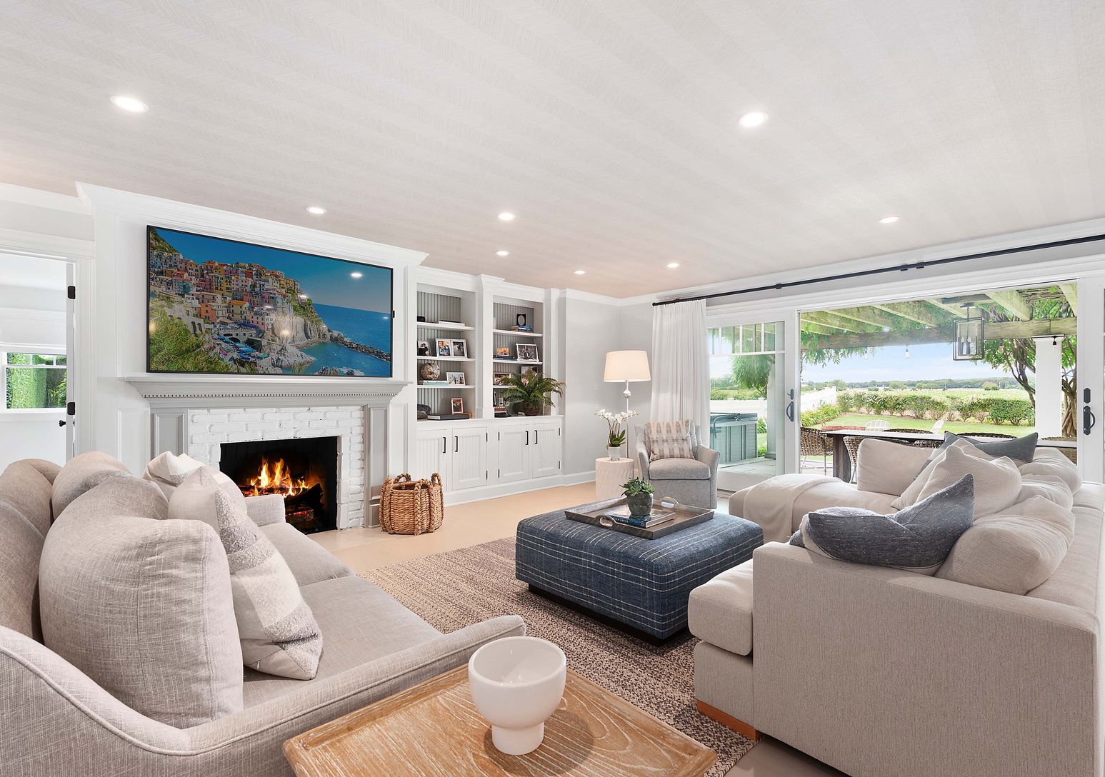 Boasting 4,731 SF+/- on .91 acres+/- is 124 Blank Lane, a traditional-style residence situated alongside a 150 acre+/- farmland reserve on a quiet street in Water Mill. The home is impeccably constructed and meticulously maintained, having completed a gut renovation in 2022. Dramatic sunset vistas frame the entertaining areas of the main level, which includes a spacious chef's kitchen with a banquette, a living room with a gas fireplace, a lib