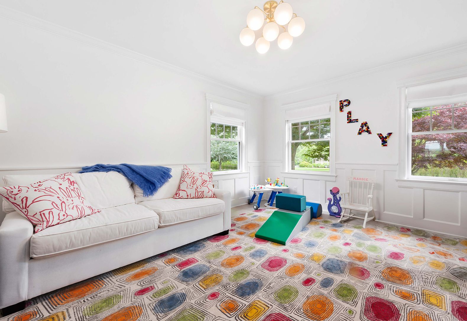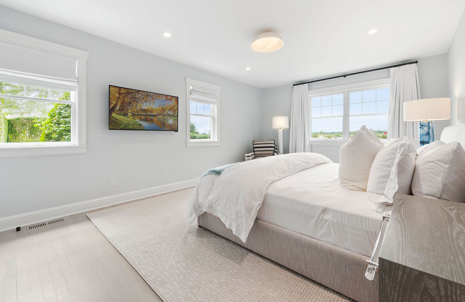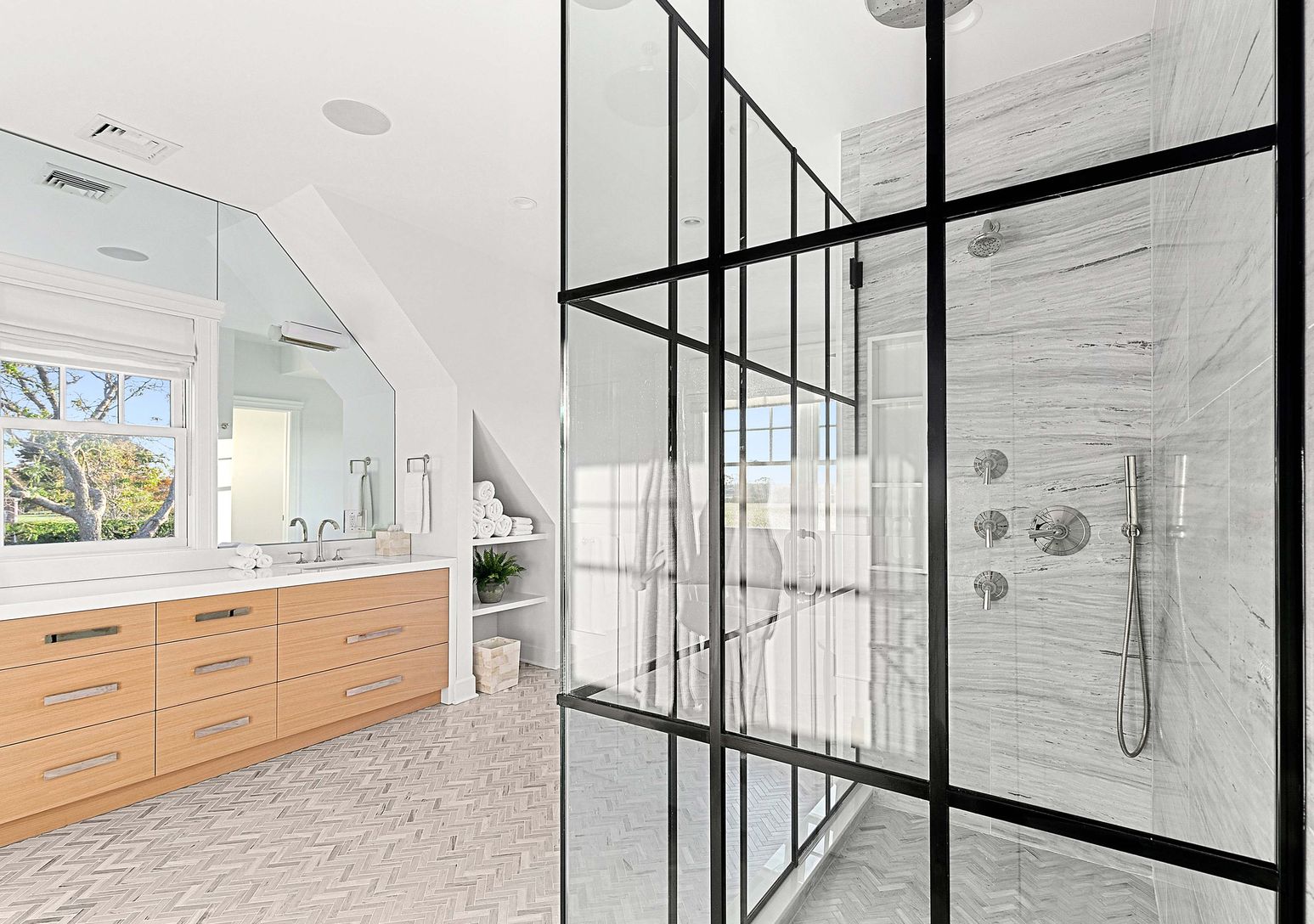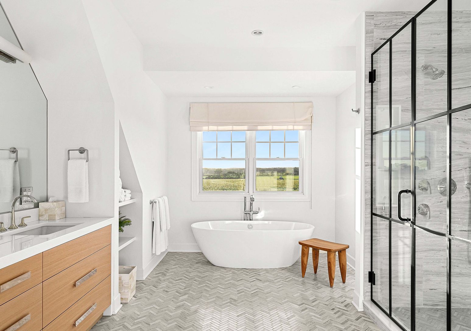 Boasting 4,731 SF+/- on .91 acres+/- is 124 Blank Lane, a traditional-style residence situated alongside a 150 acre+/- farmland reserve on a quiet street in Water Mill. The home is impeccably constructed and meticulously maintained, having completed a gut renovation in 2022. Dramatic sunset vistas frame the entertaining areas of the main level, which includes a spacious chef's kitchen with a banquette, a living room with a gas fireplace, a lib