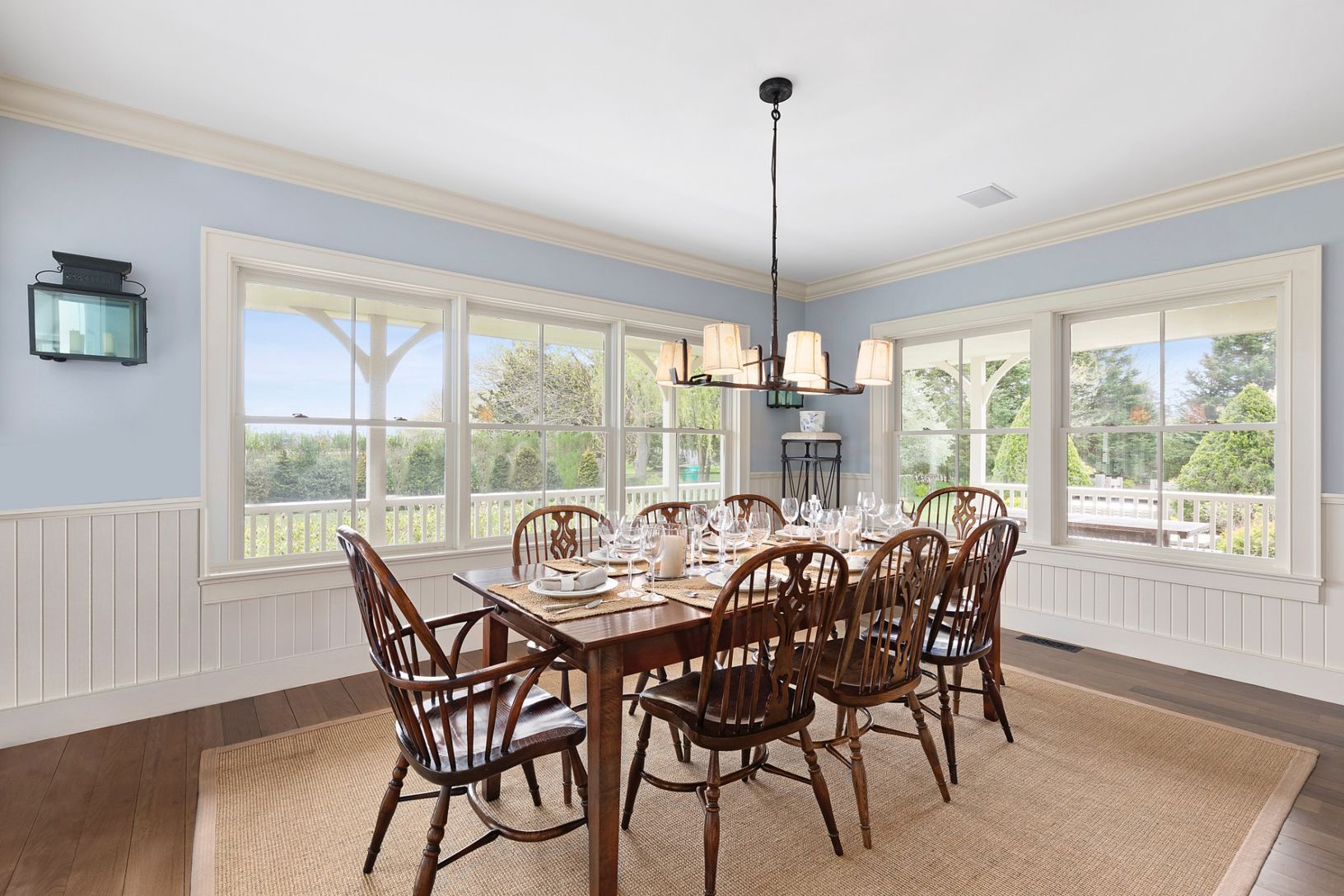 Down a quiet private drive on an agricultural reserve, is this lovely 6,200 +/- sq ft five-bedroom, five-and-one-half-bath retreat in Sagaponack South. The home has been meticulously maintained with notable updates and there is easy ability for expansion. Situated on 1.45 acres with room for tennis, this stunning estate is within close proximity to village shops and famous ocean beaches. Surrounded by lush landscaping and impeccably kept groun