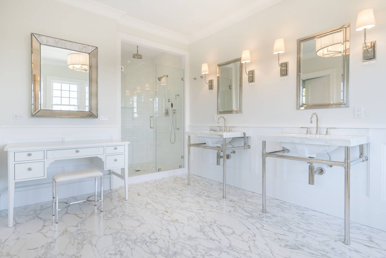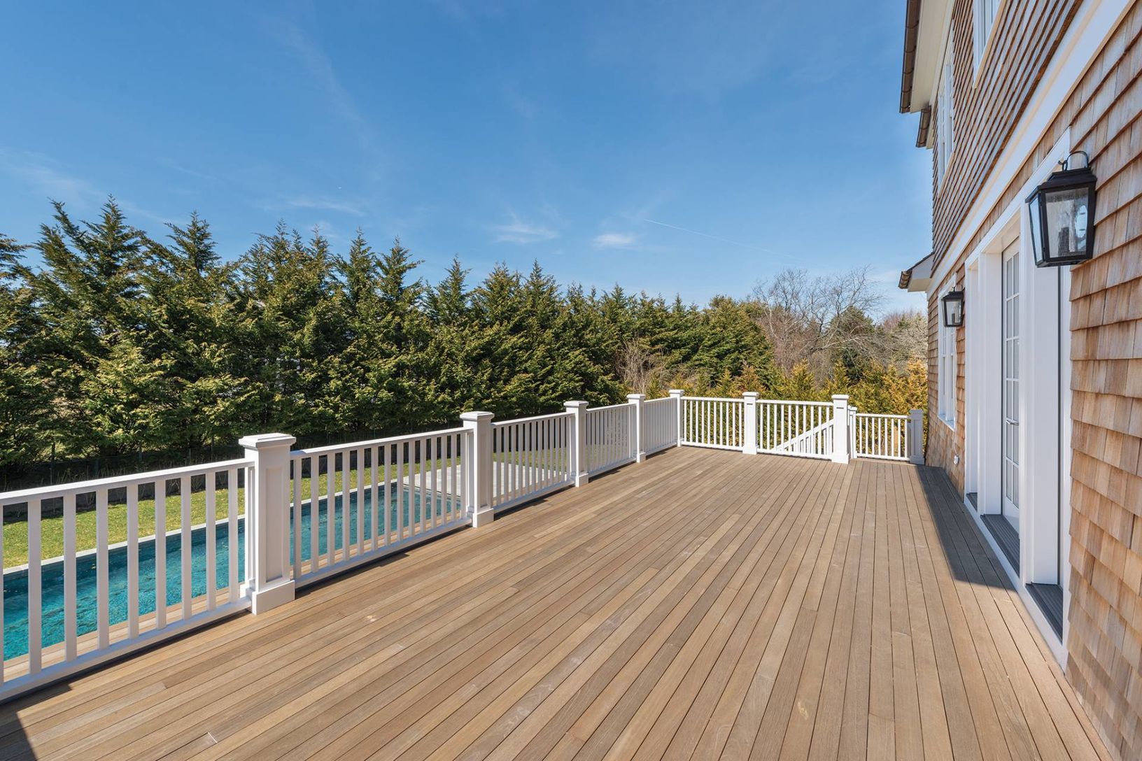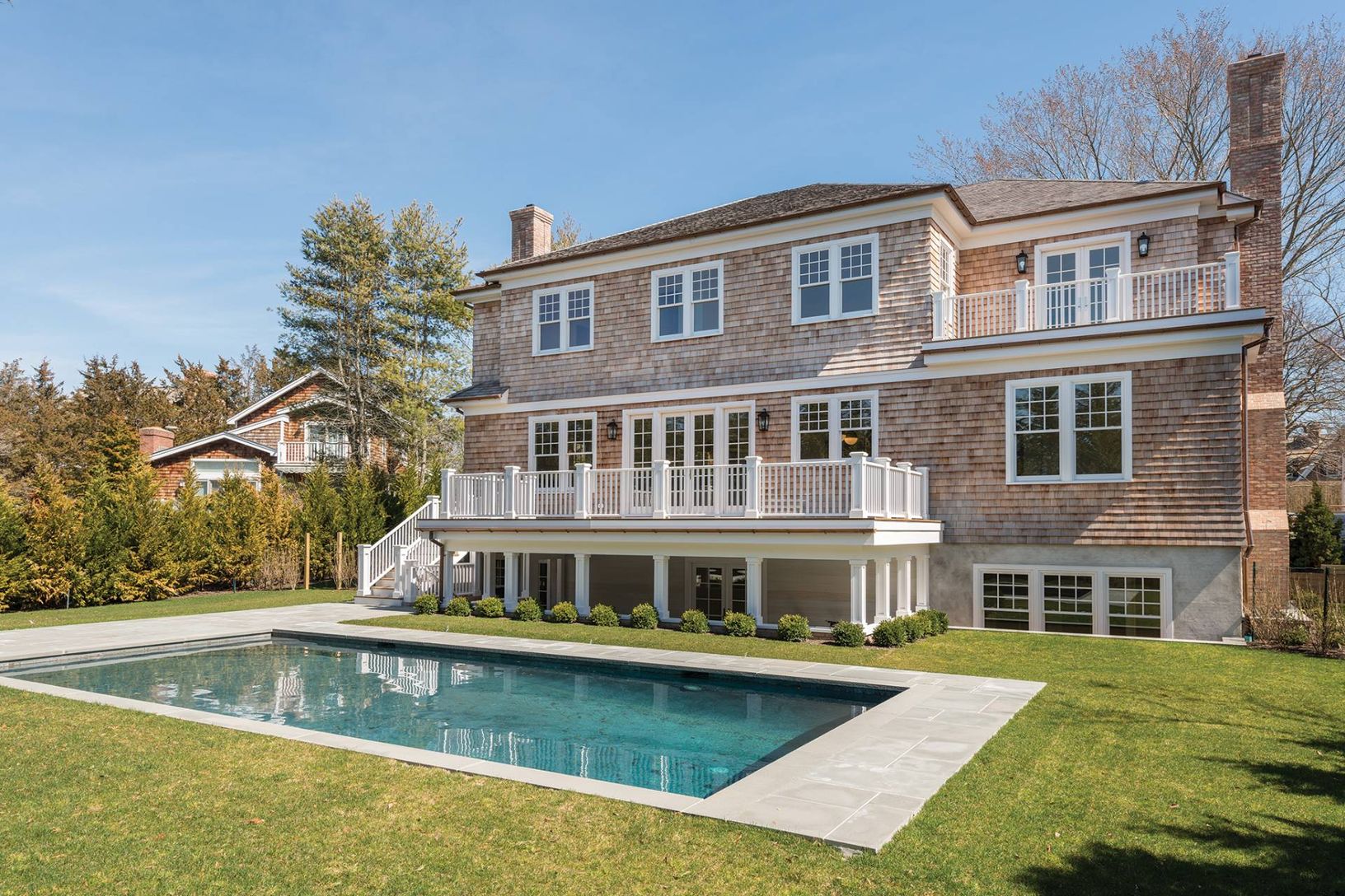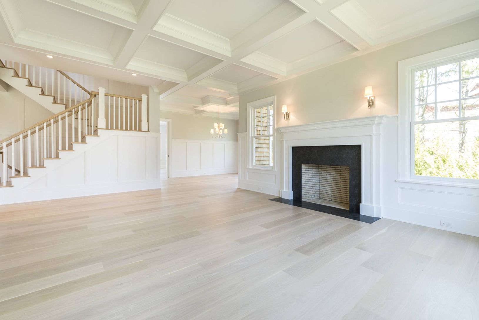 South of the highway in Water Mill, with deeded access to Mecox Bay, this custom home built in 2017 boasts six bedrooms and seven and one-half baths. Enter into a double height foyer accessing the living room with sculptural gas fireplace framed with marble, and the formal dining room, both with 10' coffered ceilings. The spacious professional kitchen includes custom cabinetry, appliances by Sub-Zero and Wolf, two dishwashers and an expansive