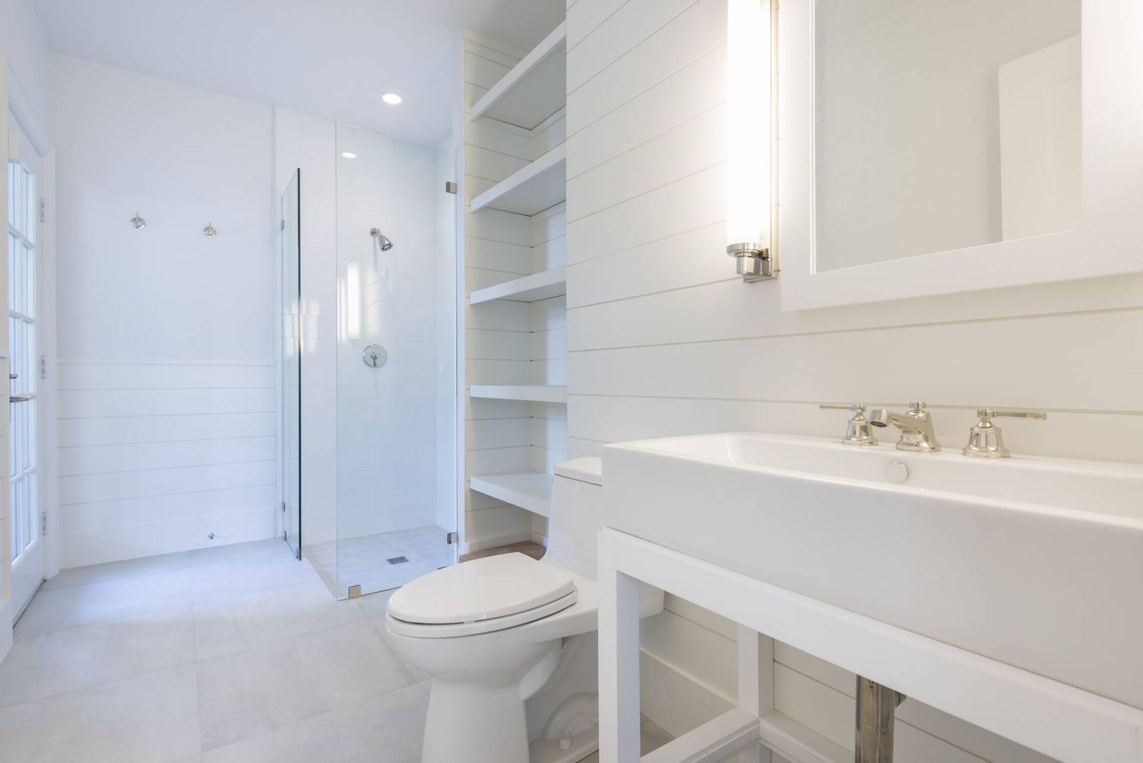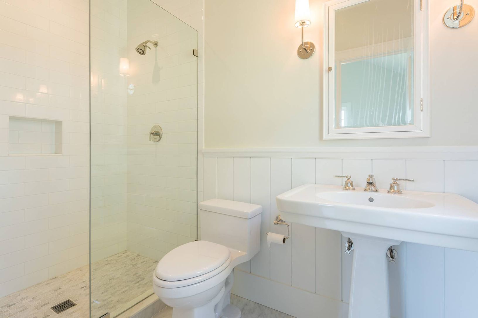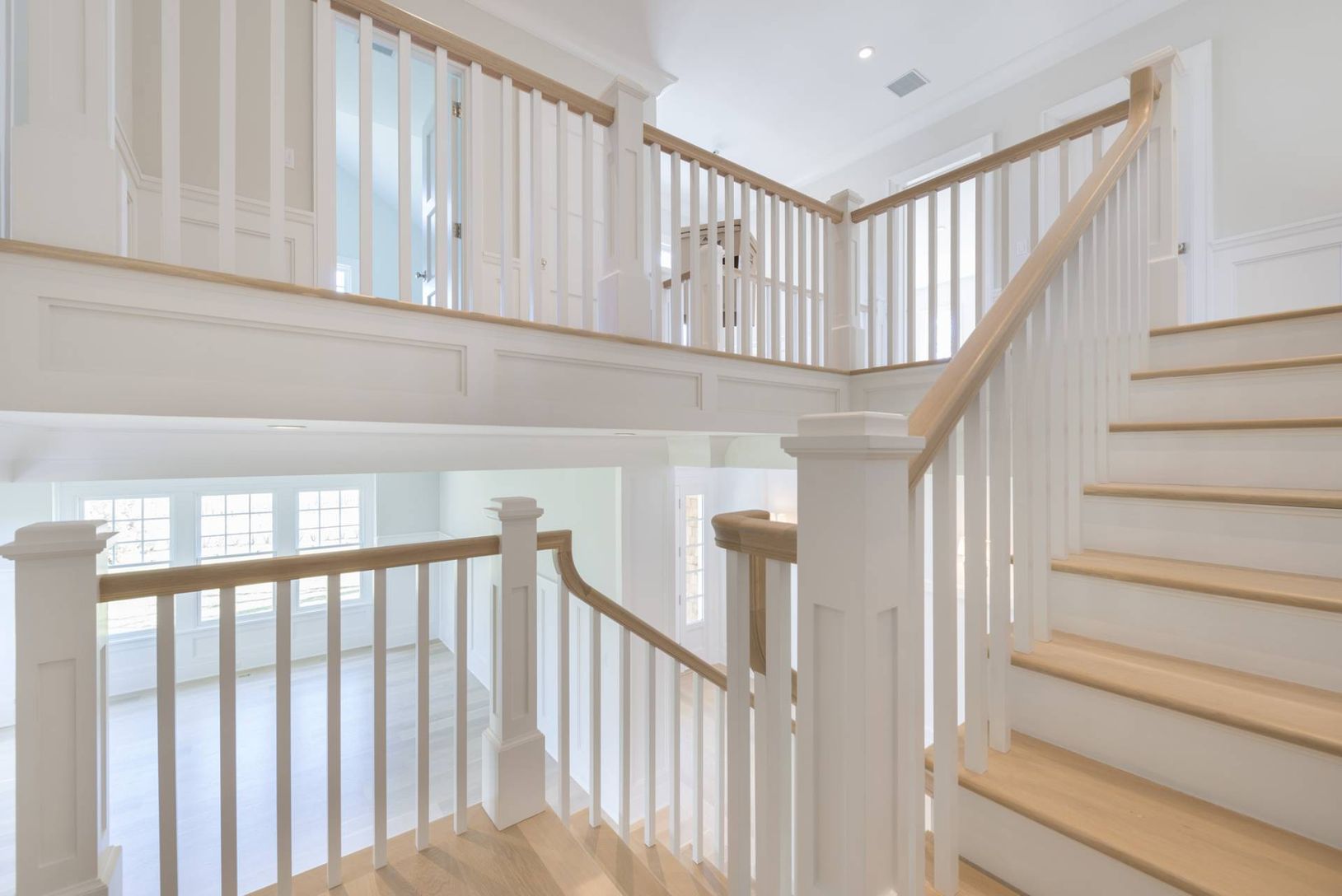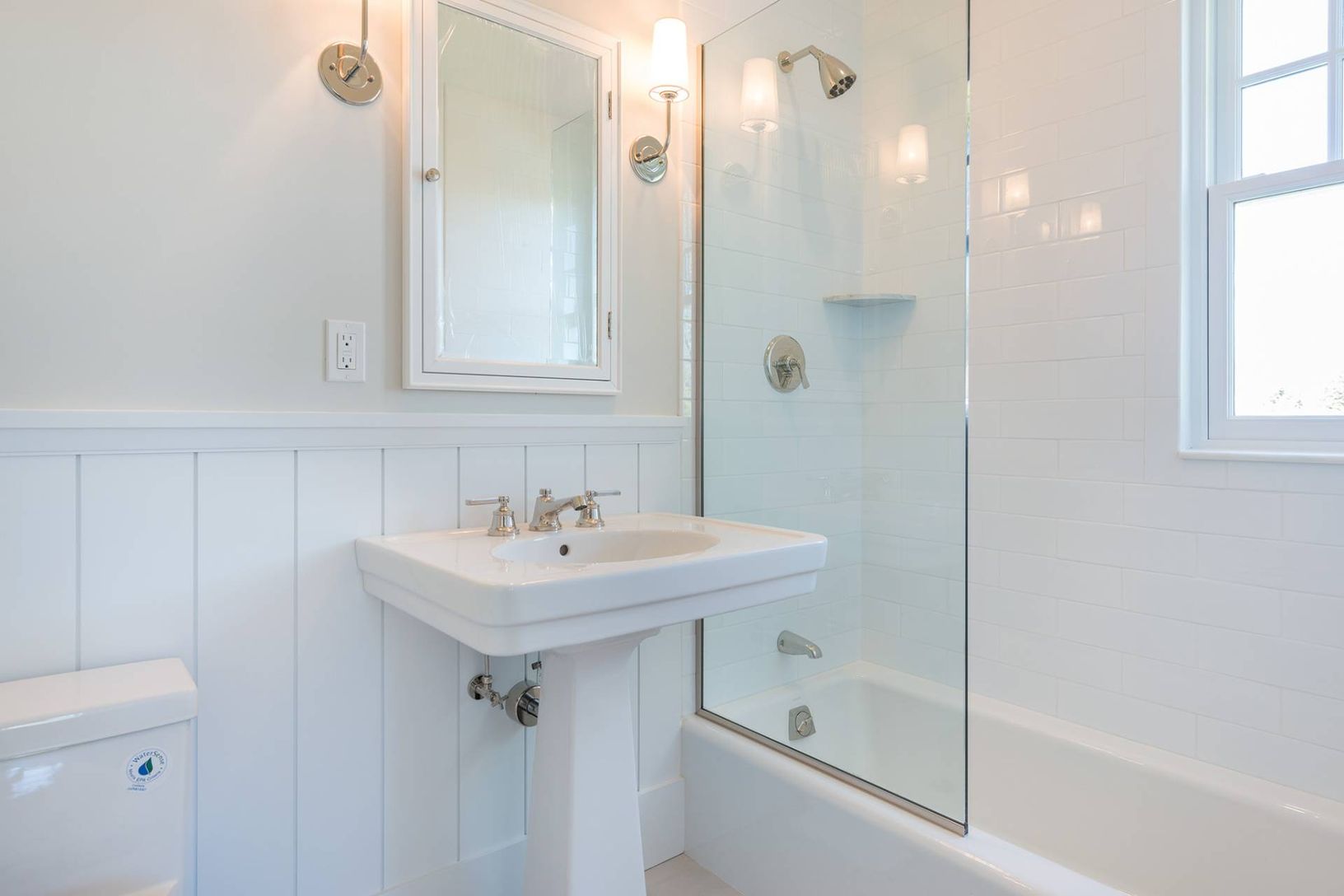 South of the highway in Water Mill, with deeded access to Mecox Bay, this custom home built in 2017 boasts six bedrooms and seven and one-half baths. Enter into a double height foyer accessing the living room with sculptural gas fireplace framed with marble, and the formal dining room, both with 10' coffered ceilings. The spacious professional kitchen includes custom cabinetry, appliances by Sub-Zero and Wolf, two dishwashers and an expansive