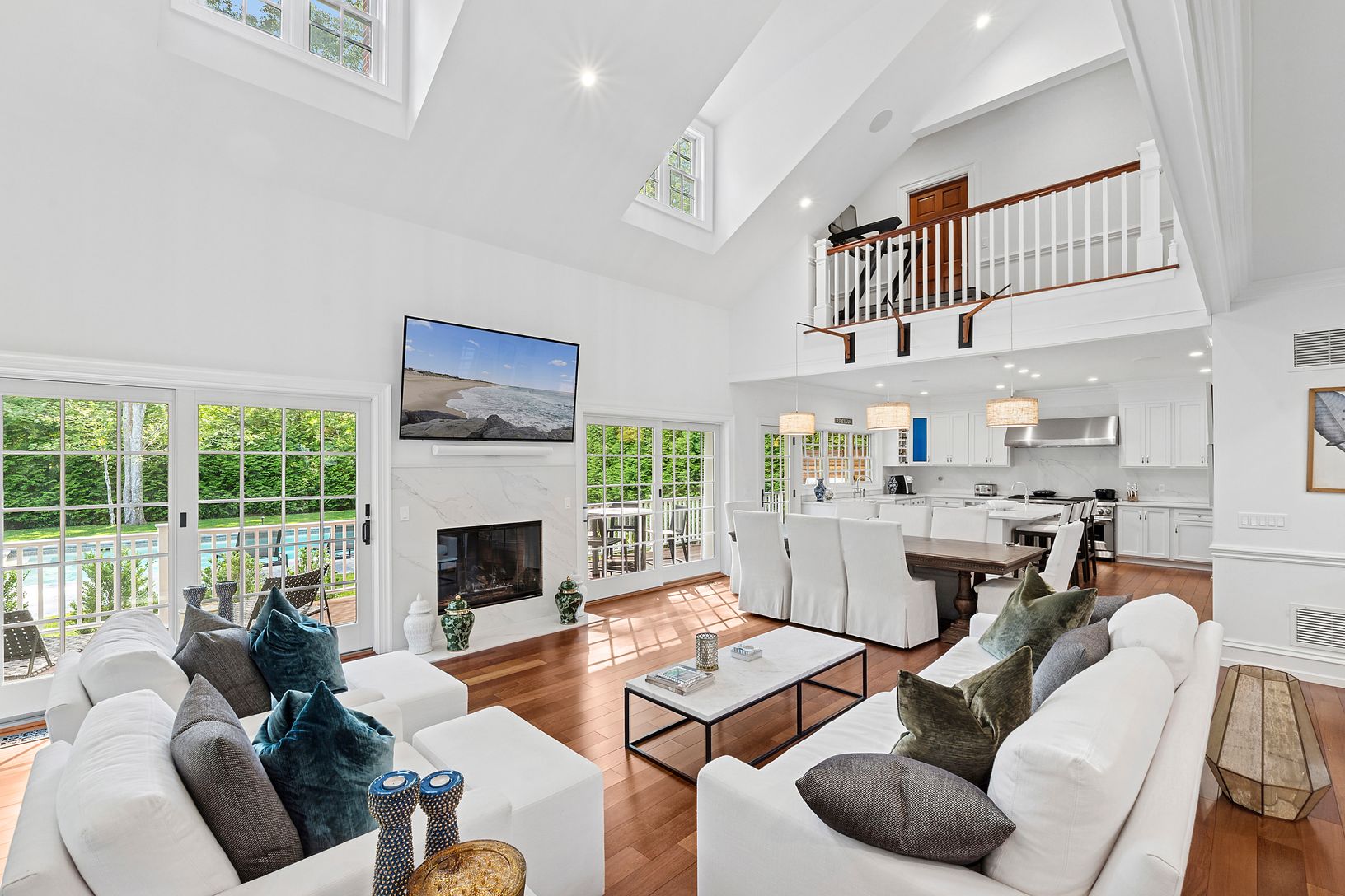 This stunning classic cedar shingle home located in the Clearwater Beach community. This exquisite property boasts over 5,000 square feet of luxurious living space spread across three floors, making it ideal for those who enjoy entertaining year round or for the summer season .As you enter, the grand foyer greets you with soaring ceilings, leading into a spacious great room that features a cozy gas fireplace. Adjacent to this, the chef’s kitch