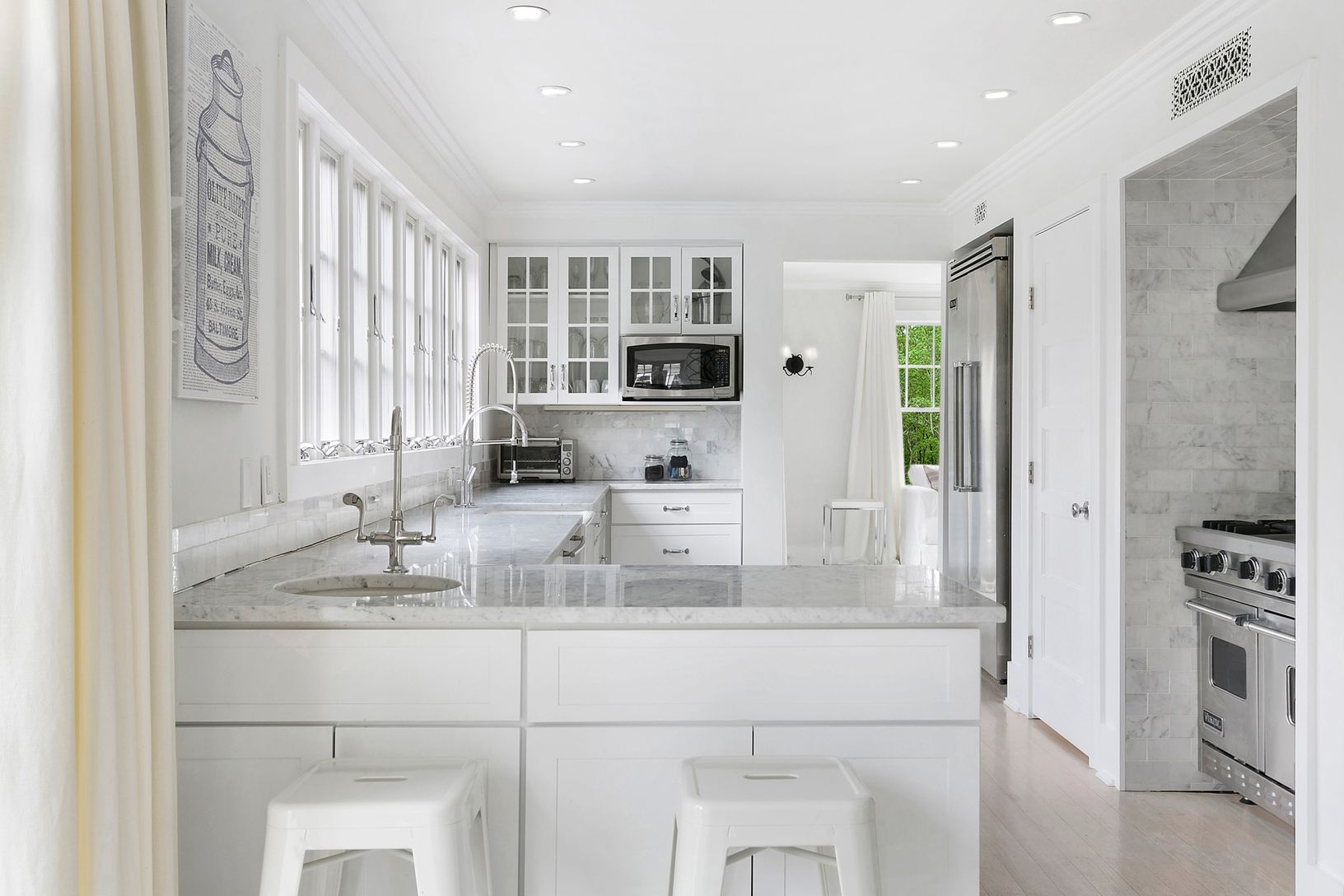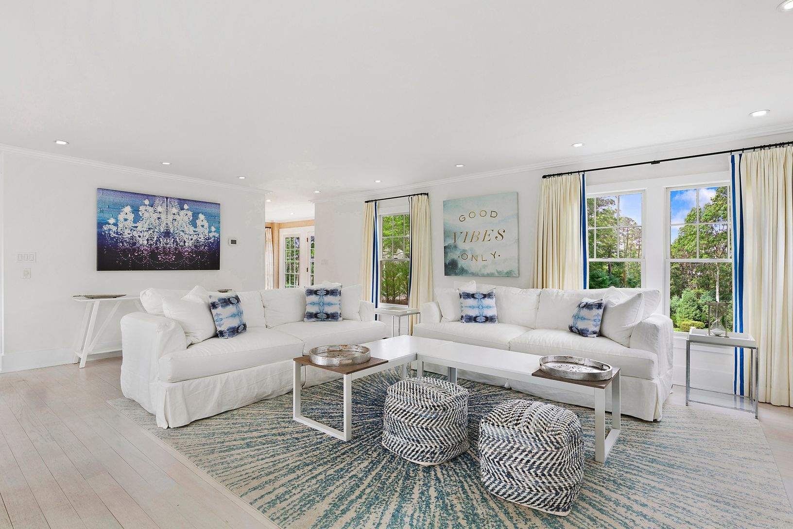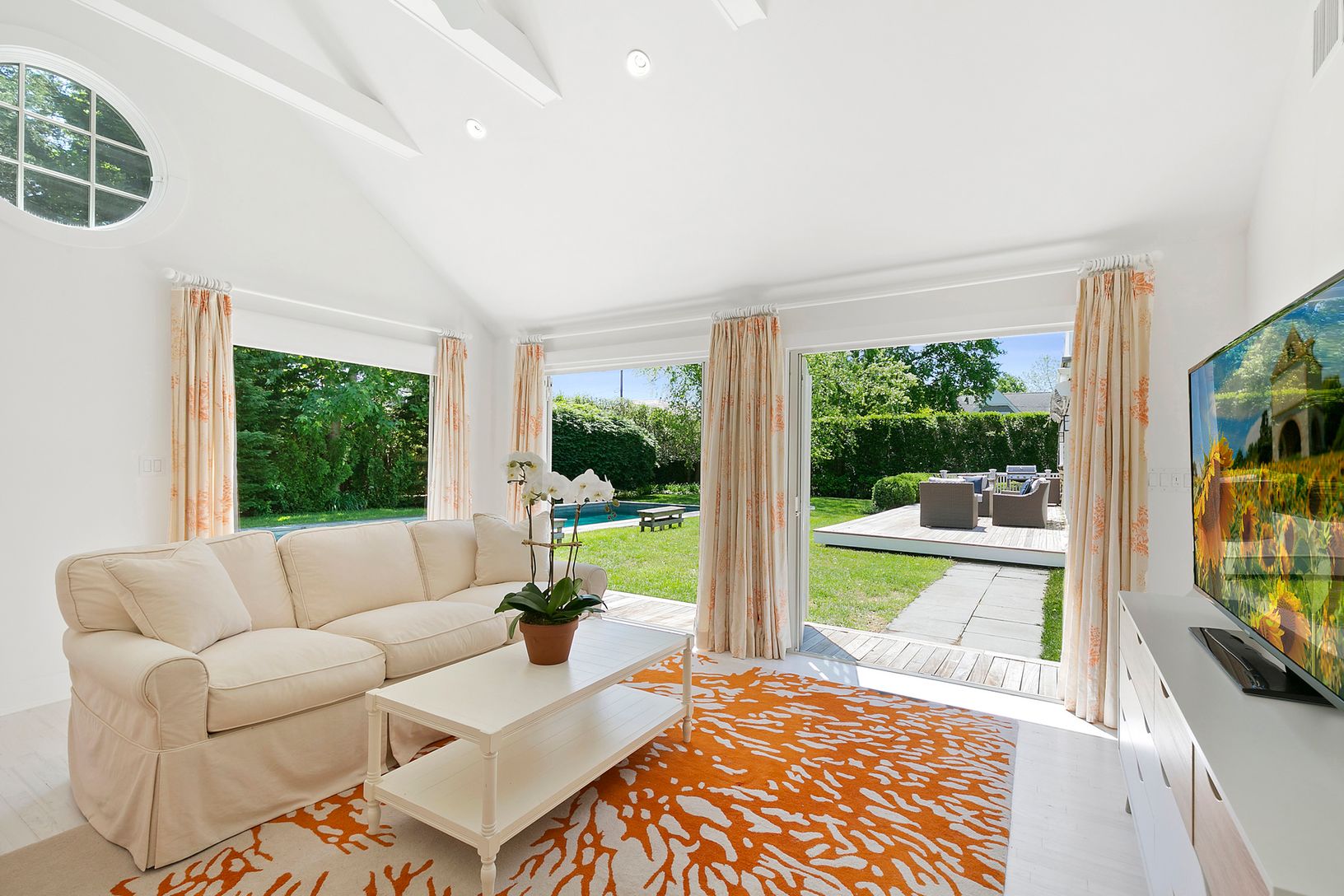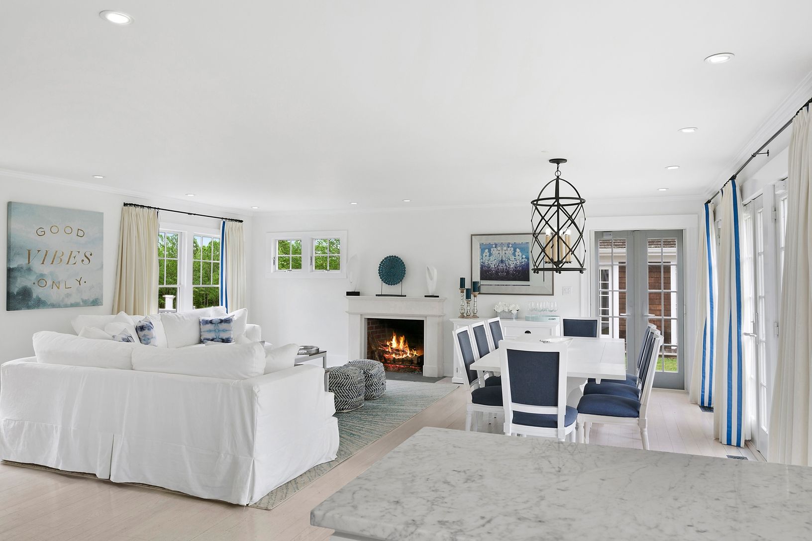 This stylish fully renovated traditional home at 124 Wooley Street, Southampton is located in the Village just minutes from the restaurants and shopping on Main Street. The light-filled foyer leads to an open floor plan that features a large living room with fireplace and dining room with multiple French doors that seamlessly lead out to the backyard. A well equipped spacious chefs kitchen opens to both the living room, separate den and overlo