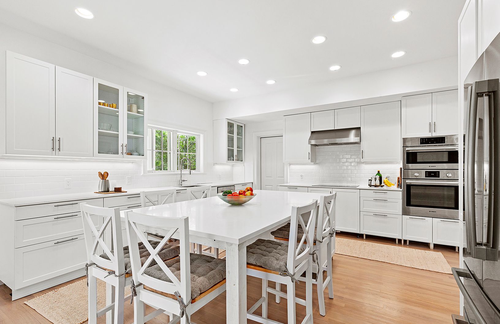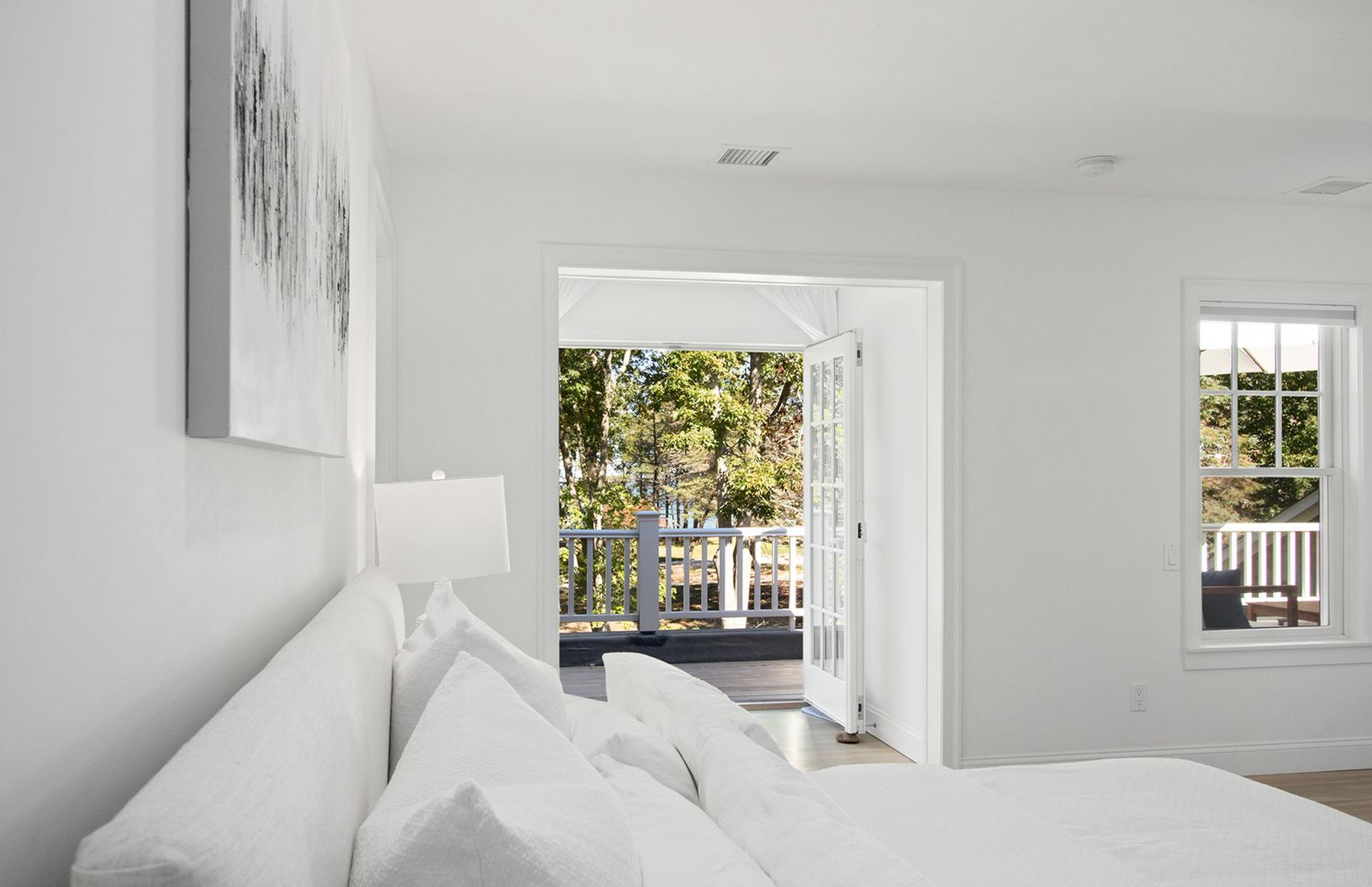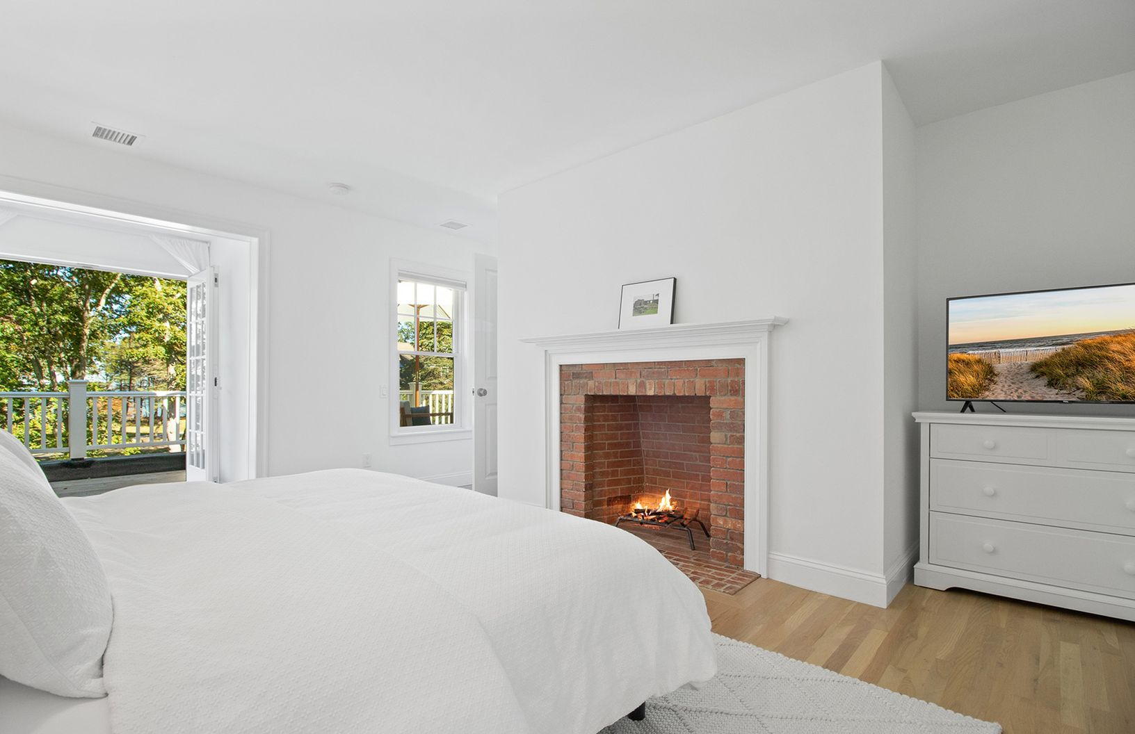 This newly built and renovated home sits on .75+/- acre at the end of Springs Fireplace Road just one house from Gardiner's bay, in the Artist's colony of Springs, East Hampton. 3,000 sf of gorgeous interior spaces featuring five spacious bedrooms, four and one half bathrooms, an additional den/sitting area, two wood burning fireplaces, hardwood flooring, and a 2-car garage. The stunning living room with fireplace offers French doors to the ba