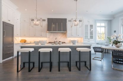 Brilliant natural light illuminates this brand new eight bedroom house, designed with both comfort and aesthetics in mind and representing a wonderful example of modern construction. Its remarkable features include high ceilings, detailed architectural millwork, large en-suite bedrooms, an open kitchen and an attached three-car garage. The dramatic, soaring entry is flooded with light from clerestory windows and opens into the extraordinarily