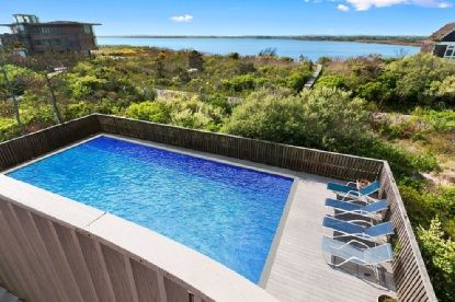 Exceptional Beach house sitting high on dune with stunning views, and pirvate ocean beach, plenty of interior and exterior space, pool and private dock on Mecox Bay with sunsets view. Just listed and will not last!