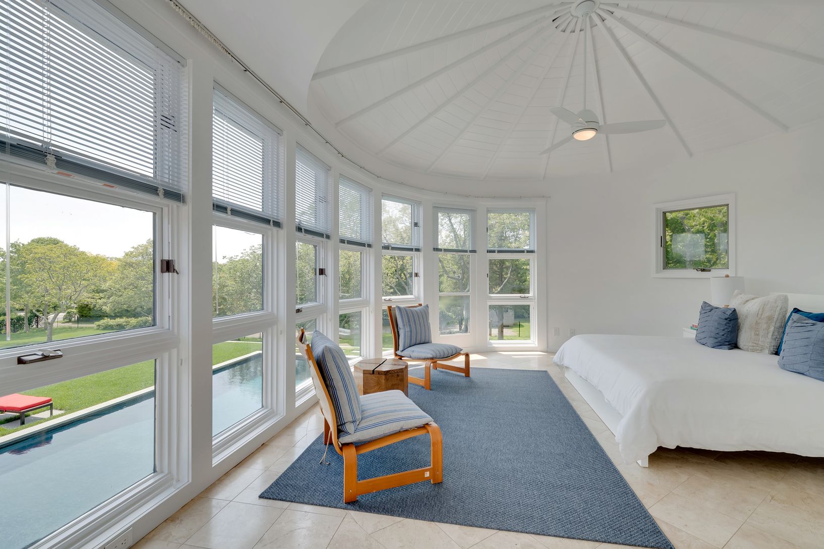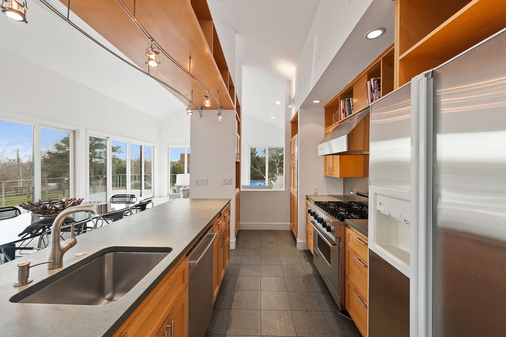 New modern stunner with open floor plan and walls of glass bringing natural light into every room. Spacious home with two large living rooms, total of four generous bedrooms, two master suites (with walk-in closets) and 4.5 baths. Outdoor features include new heated Gunite pool, large sitting area, new Ipê deck, screened pool cabana and 1.2 private acres of lawn and gardens. Stroll to the bay with your water toys. Just renovated inside and ou