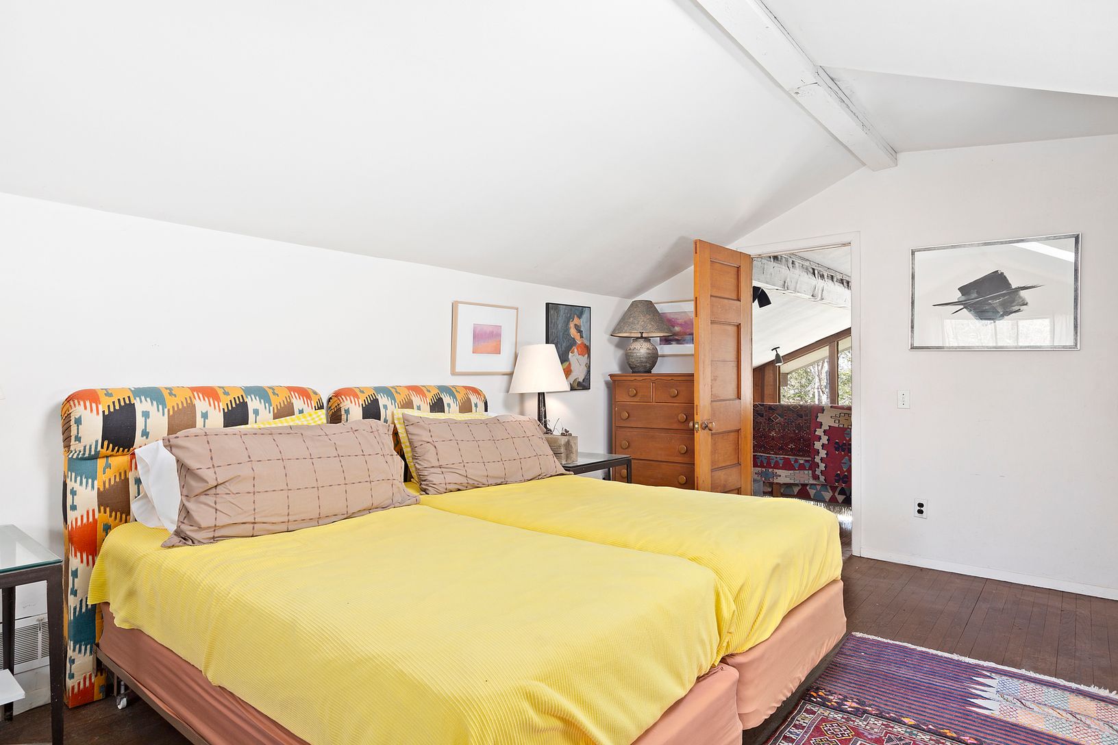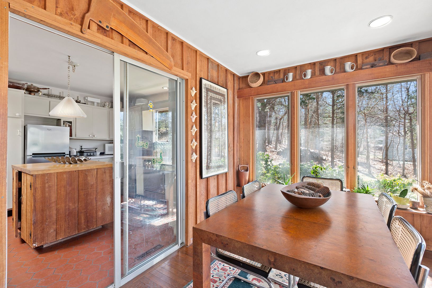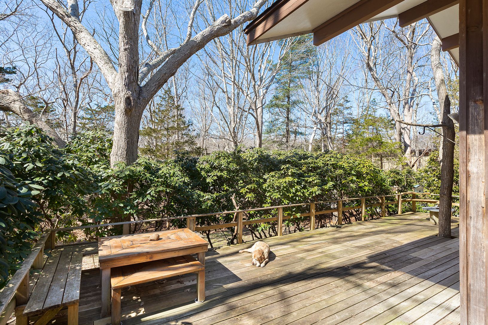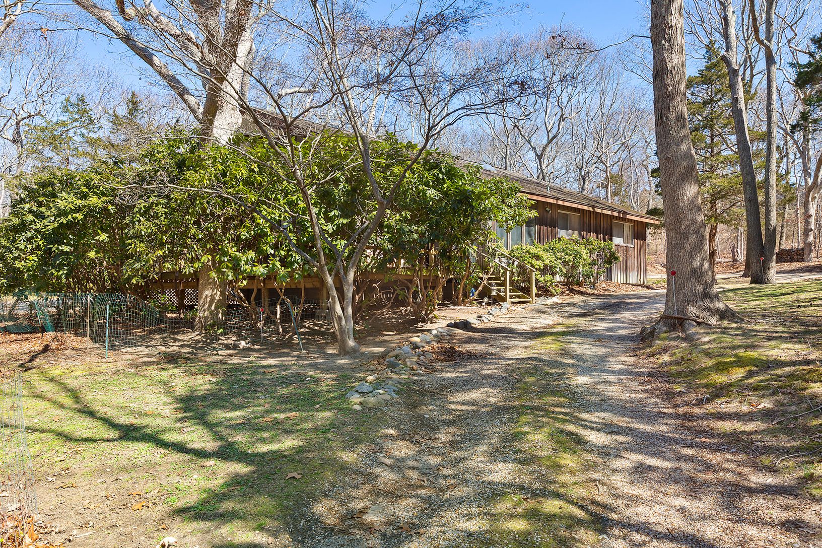 Original Barnes Landing marvel on over-sized street to street lot features four bedrooms, three baths, eat-in kitchen and cathedral great room. Floor to ceiling windows let in the natural light all day, while the protruding roof line and mature rhododendrons provide privacy for dining or lounging outside on the deck. Gardiners Bay is across the street and the detached garage will store the toys.