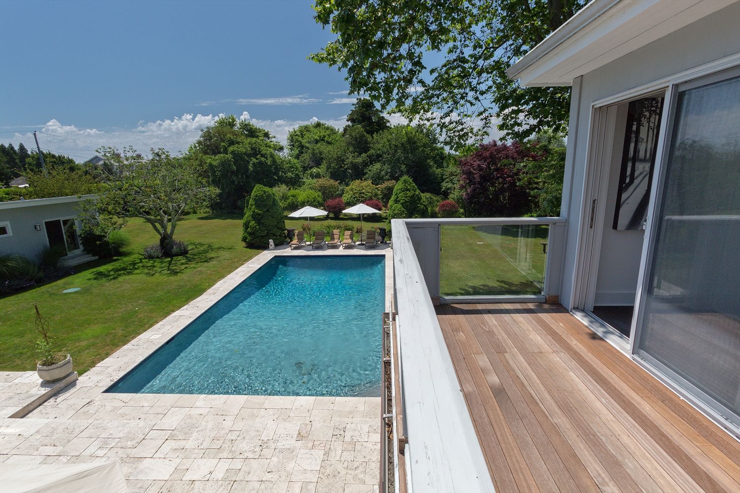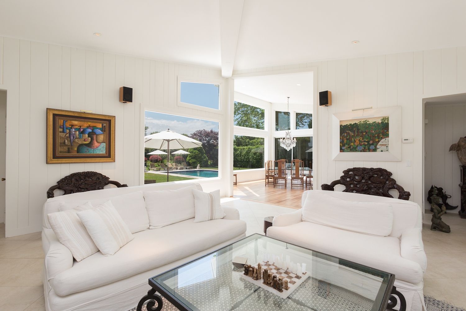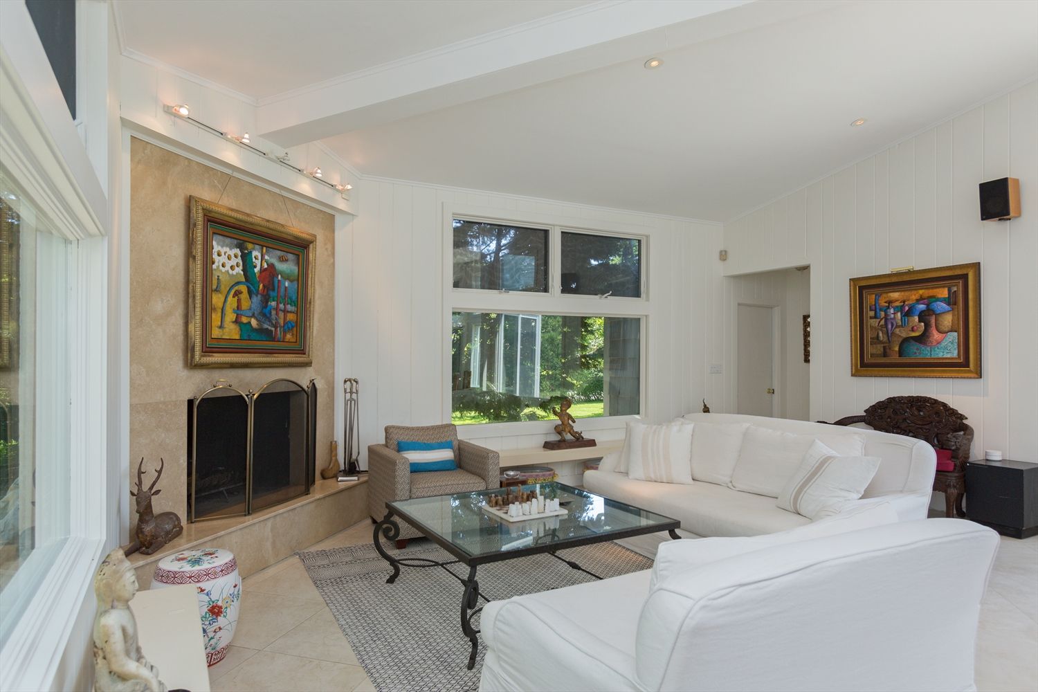 A prime property very close to the ocean, new improvements include a professional kitchen, 4 full baths plus guest powder room, a new master suite in a separate wing with a private balcony overlooking the heated gunite pool and manicured grounds. A dramatic formal dining room, living room with new furnishings, poolside family room with large flat screen & a pool house recreation room & outdoor refreshment area, a total of 5 bedrooms in