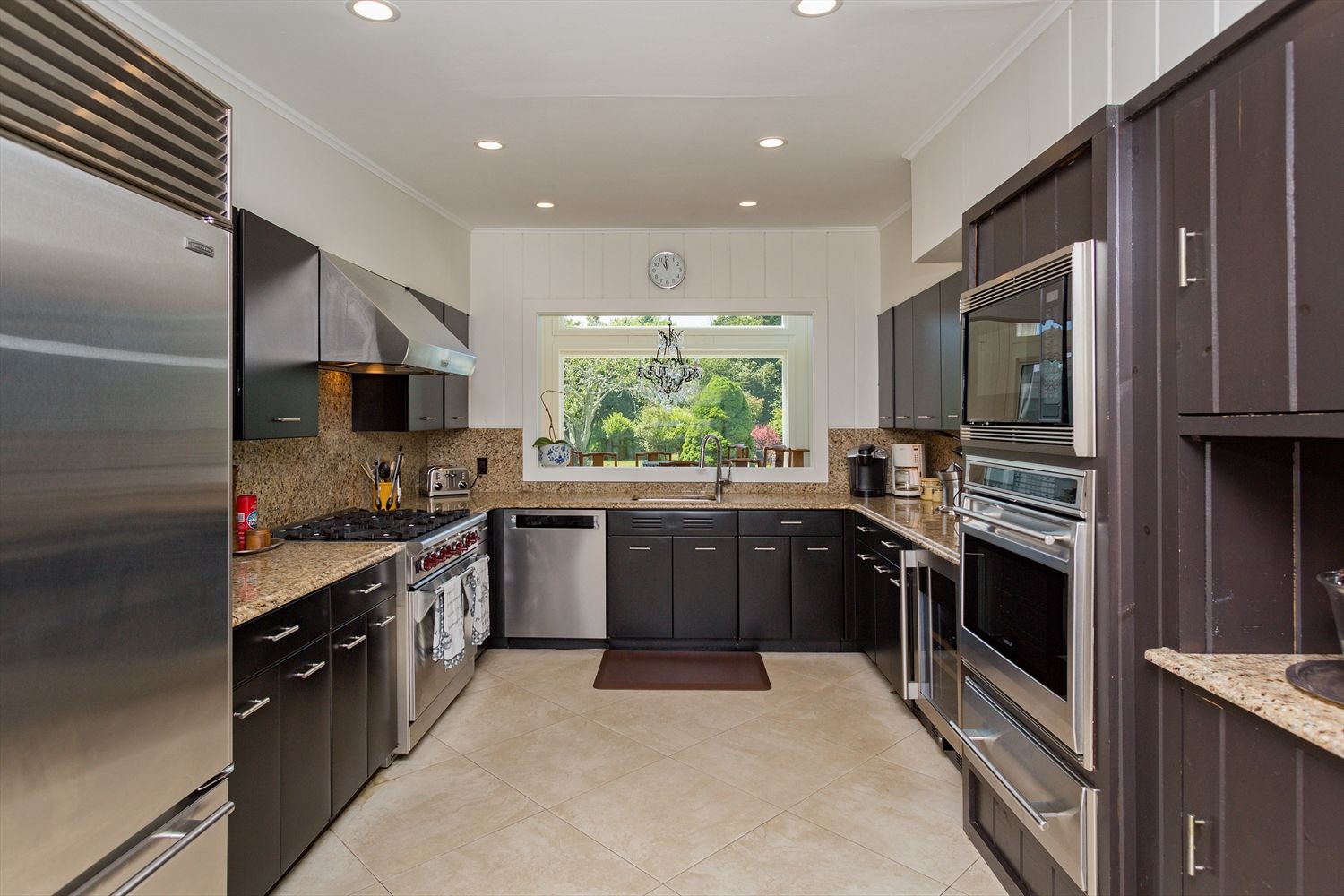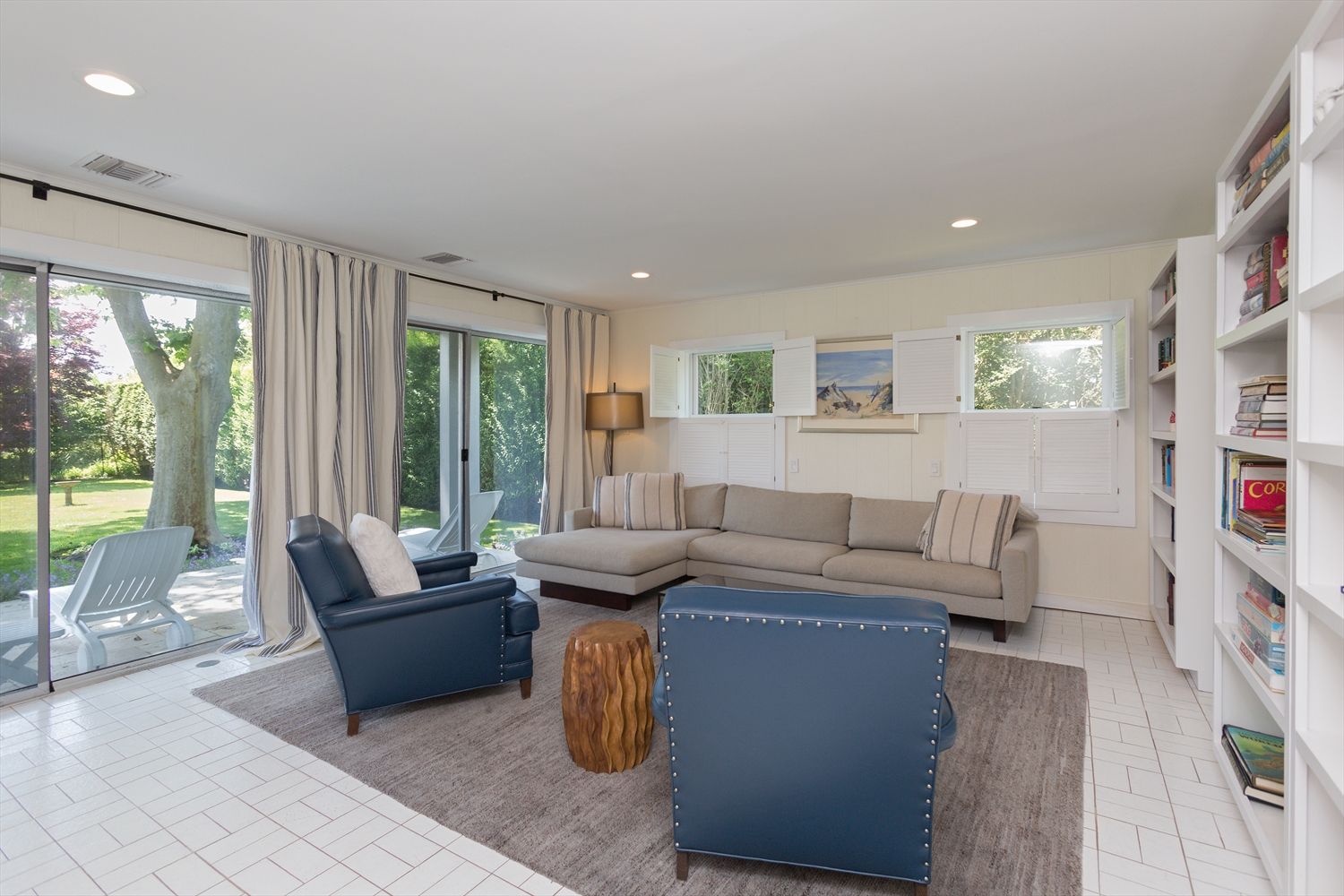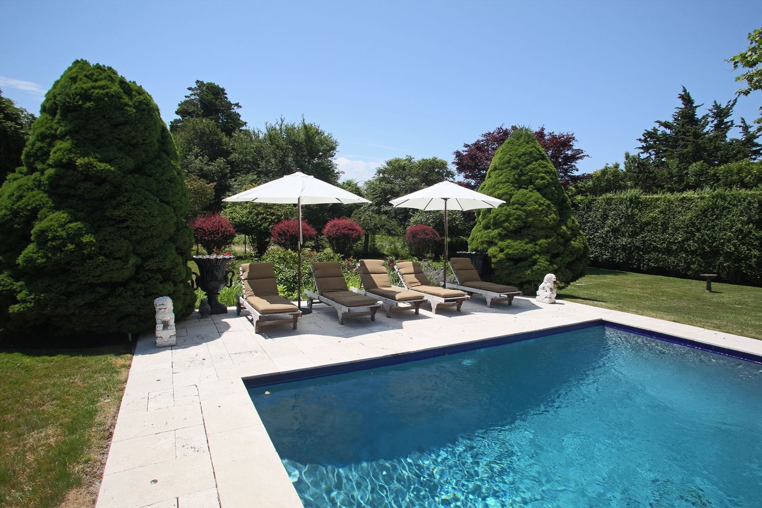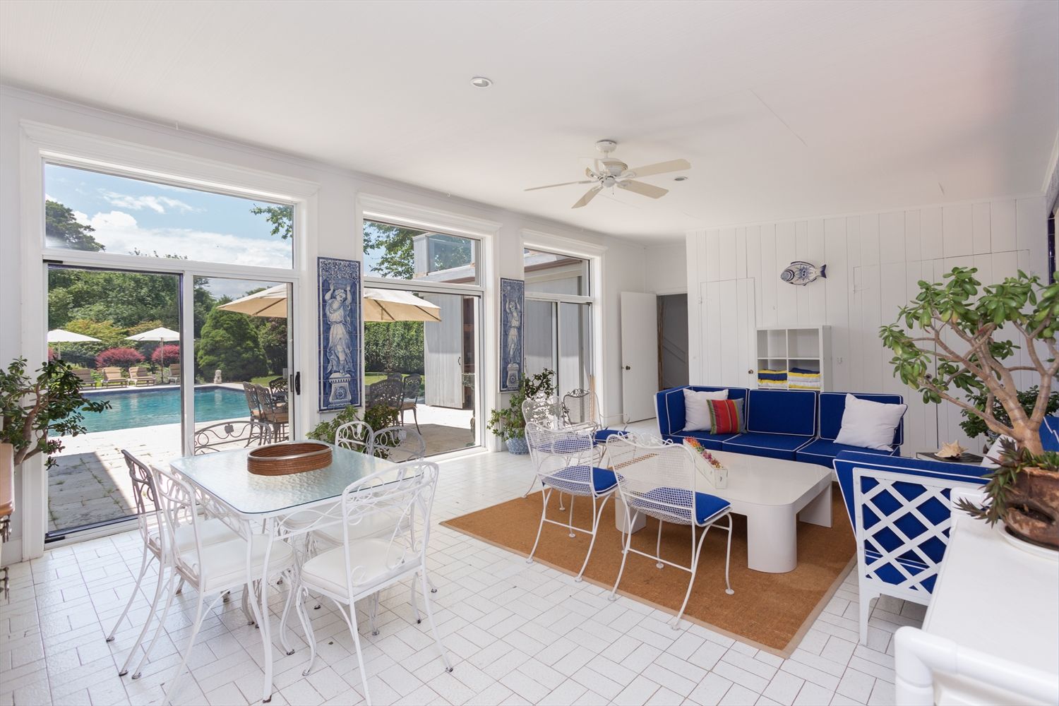 A prime property very close to the ocean, new improvements include a professional kitchen, 4 full baths plus guest powder room, a new master suite in a separate wing with a private balcony overlooking the heated gunite pool and manicured grounds. A dramatic formal dining room, living room with new furnishings, poolside family room with large flat screen & a pool house recreation room & outdoor refreshment area, a total of 5 bedrooms in