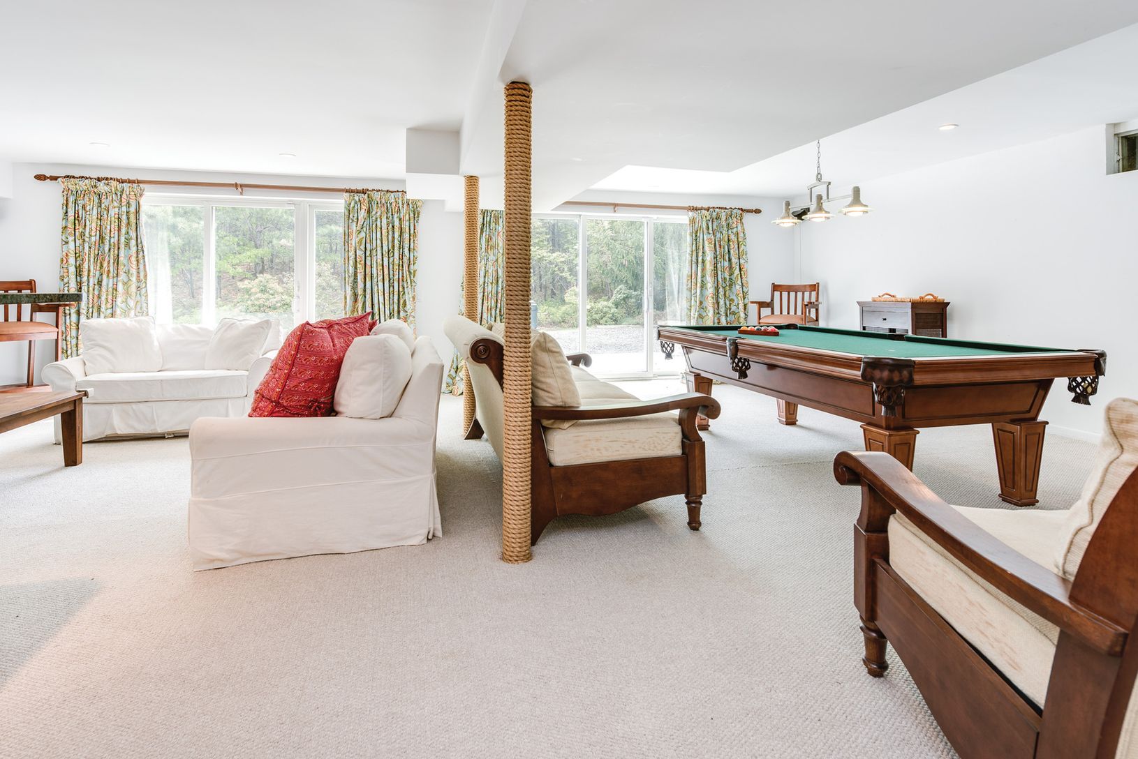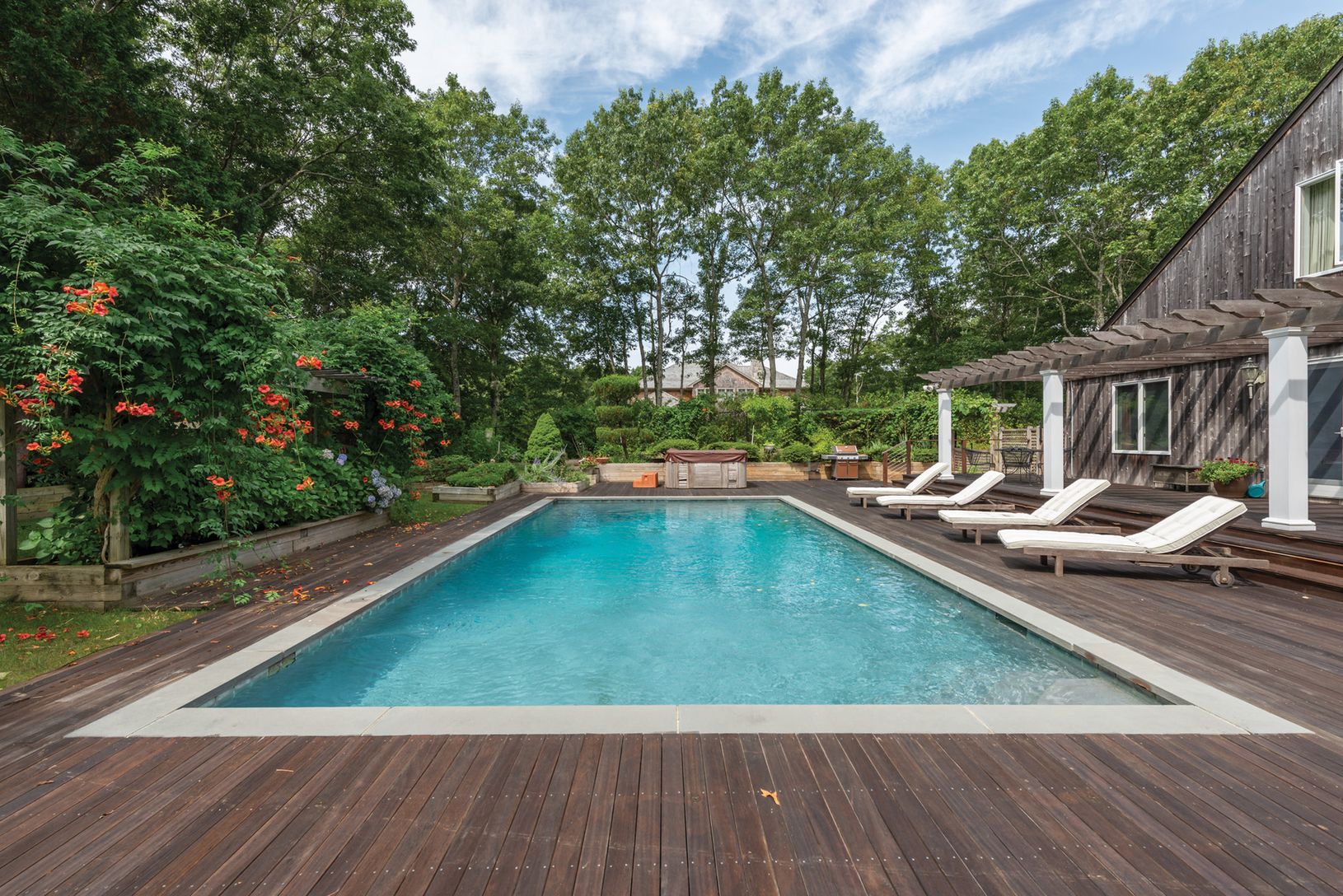 Set upon a one acre flag lot amidst many large estates, this crisp contemporary is privately, yet centrally, located. The four bedroom, 4.5 bathroom home features first and second floor master suites, and a sun-bathed open great room. The seller has just had the hardwood floors refinished with a bleached, beach vibe and the main floors of the home completely painted. There are double height ceilings and wood-burning fireplace in the living are