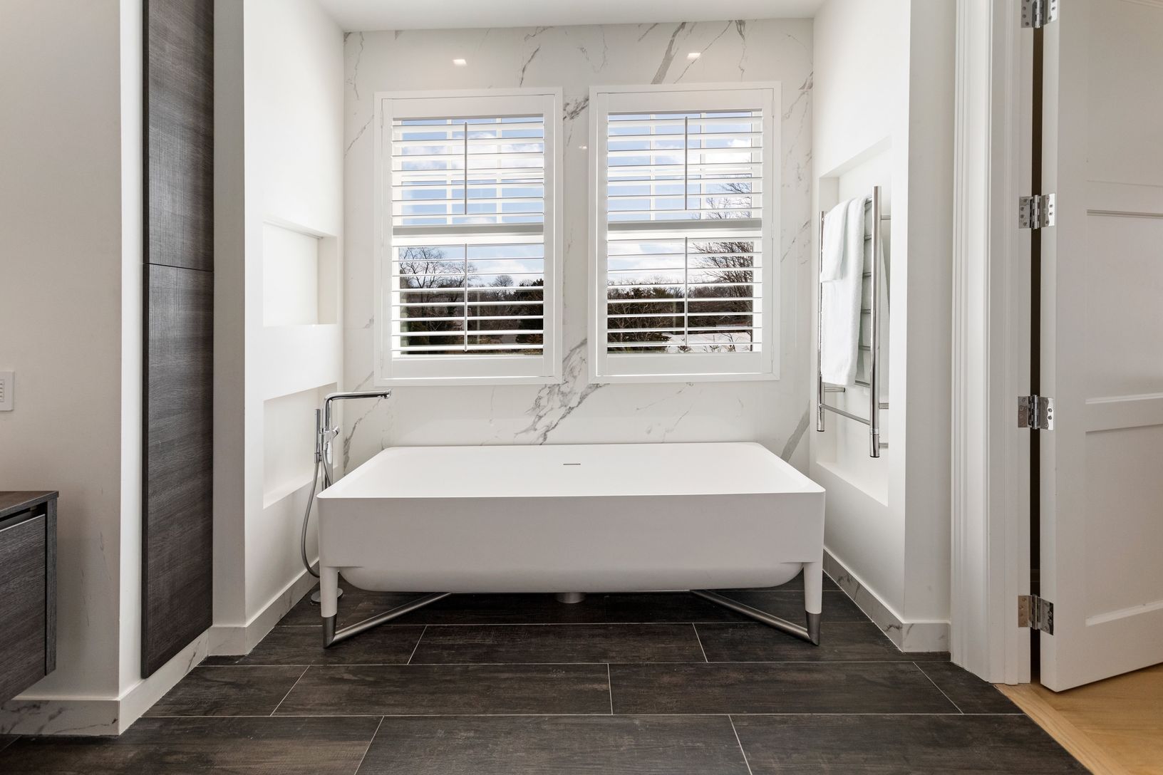 This fabulous, newly constructed home is now available for rent at any time of year! The home boasts 6 ensuite bedrooms, 6.5 bathrooms, two large living rooms each with a fireplace, a beautiful gourmet chef’s kitchen, large island with seating, breakfast area, and formal dining room. The finished lower level offers a game room, home gym with floor to ceiling mirrors, and a home theatre with 8 reclining large chairs. The spacious yard is fully