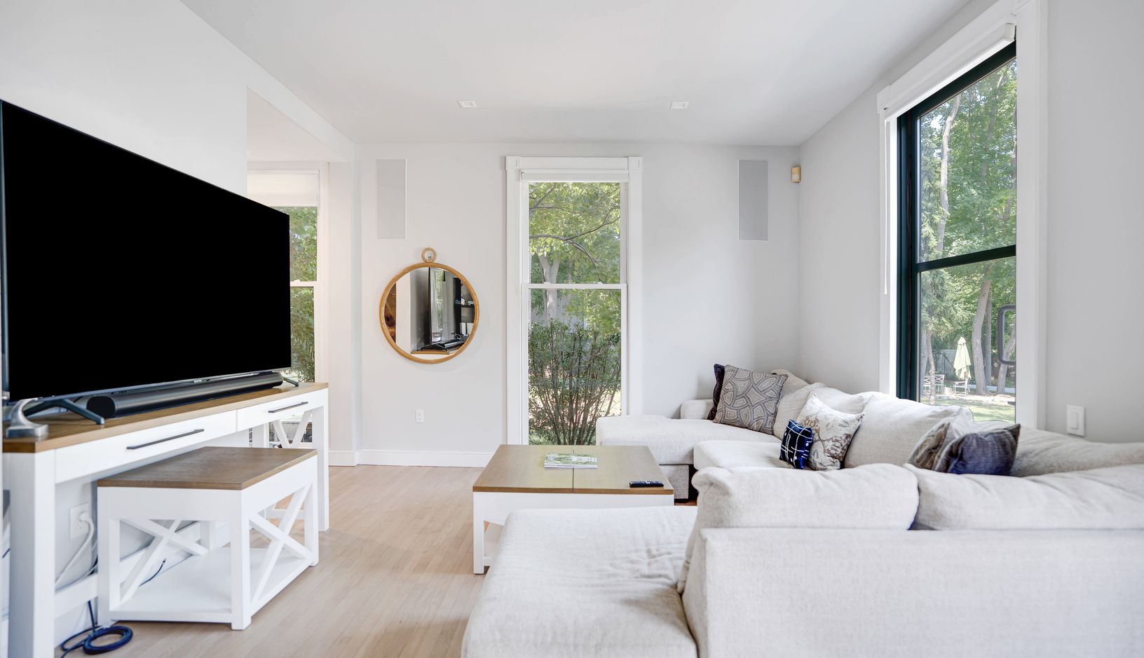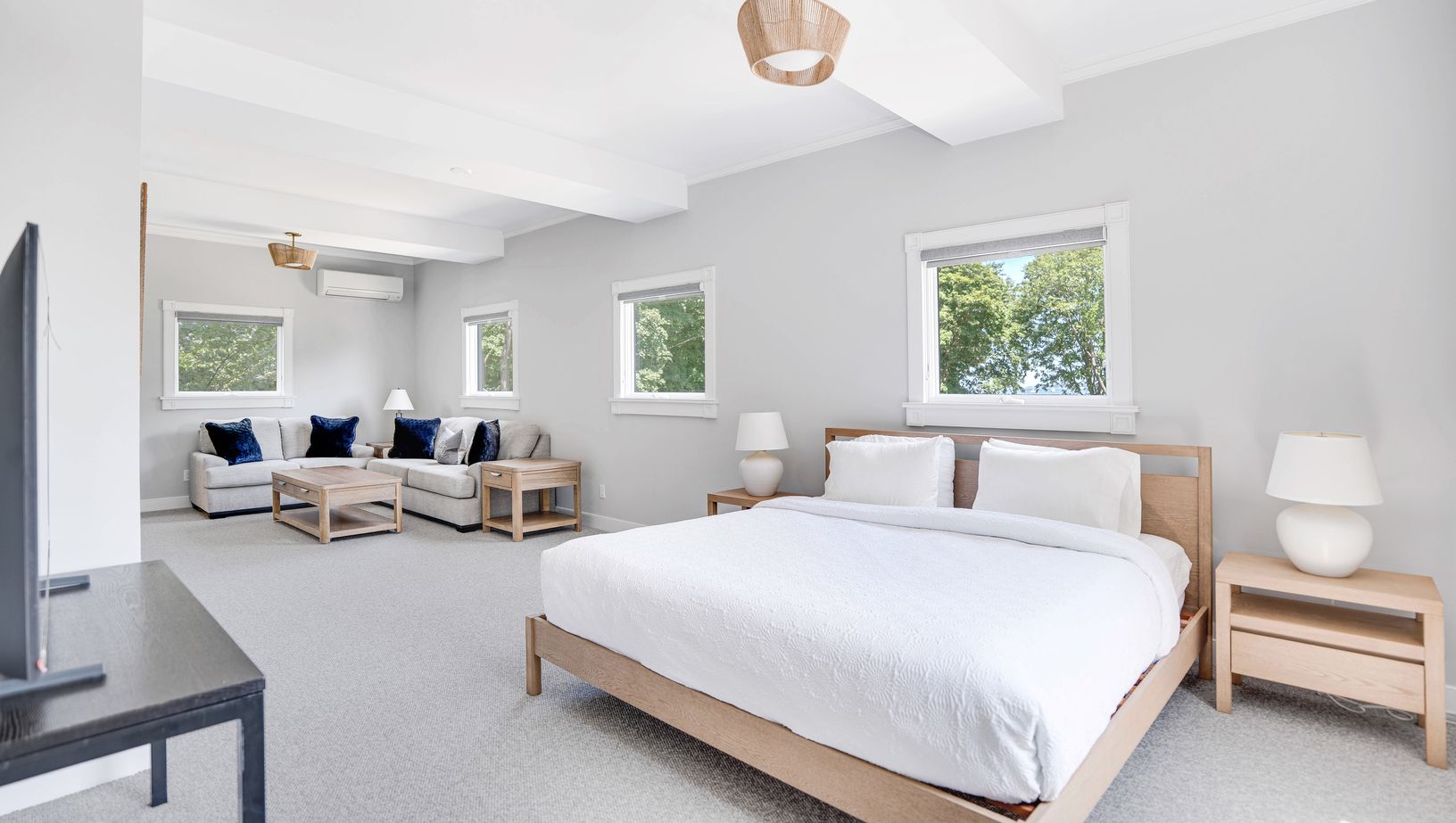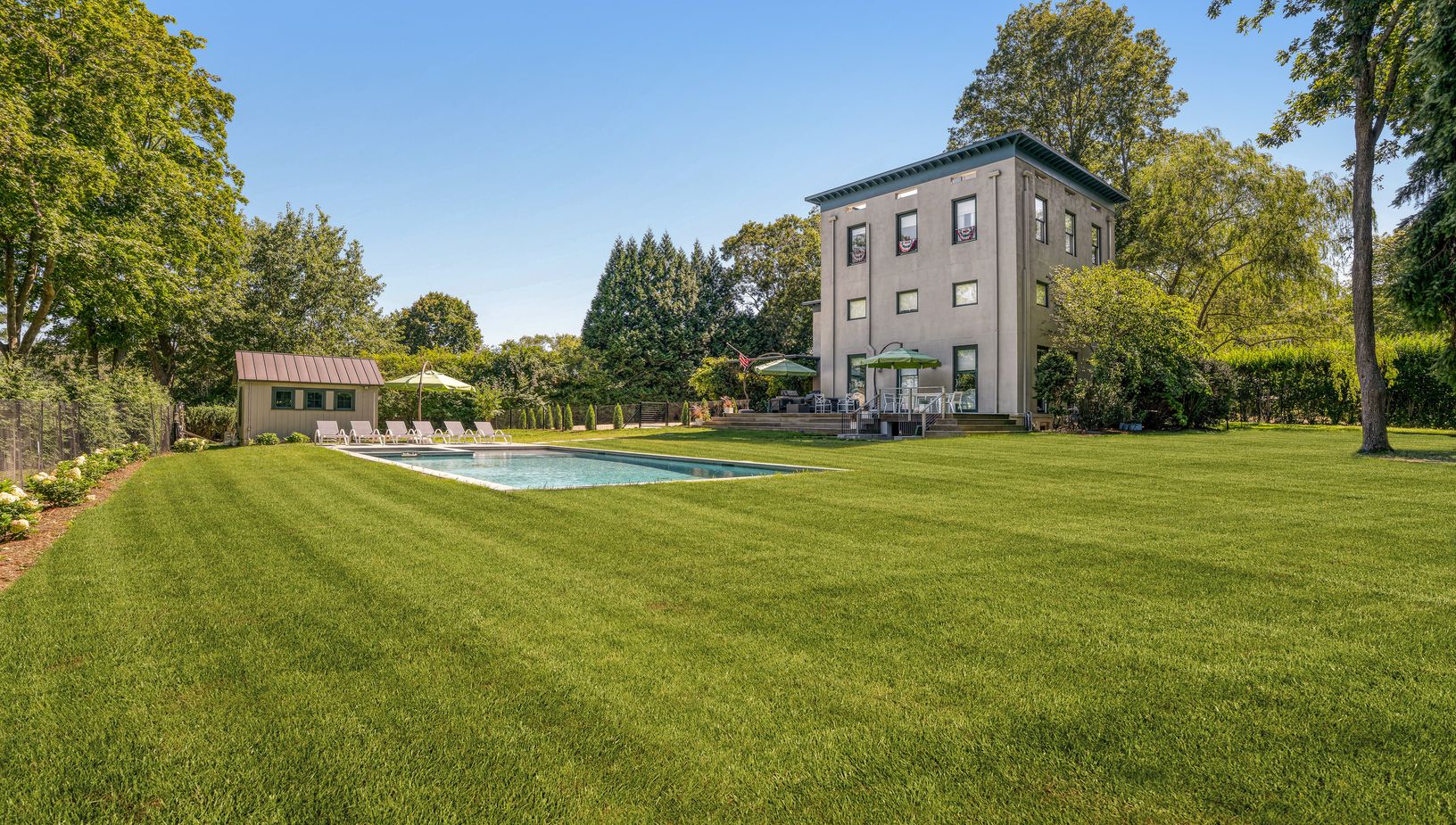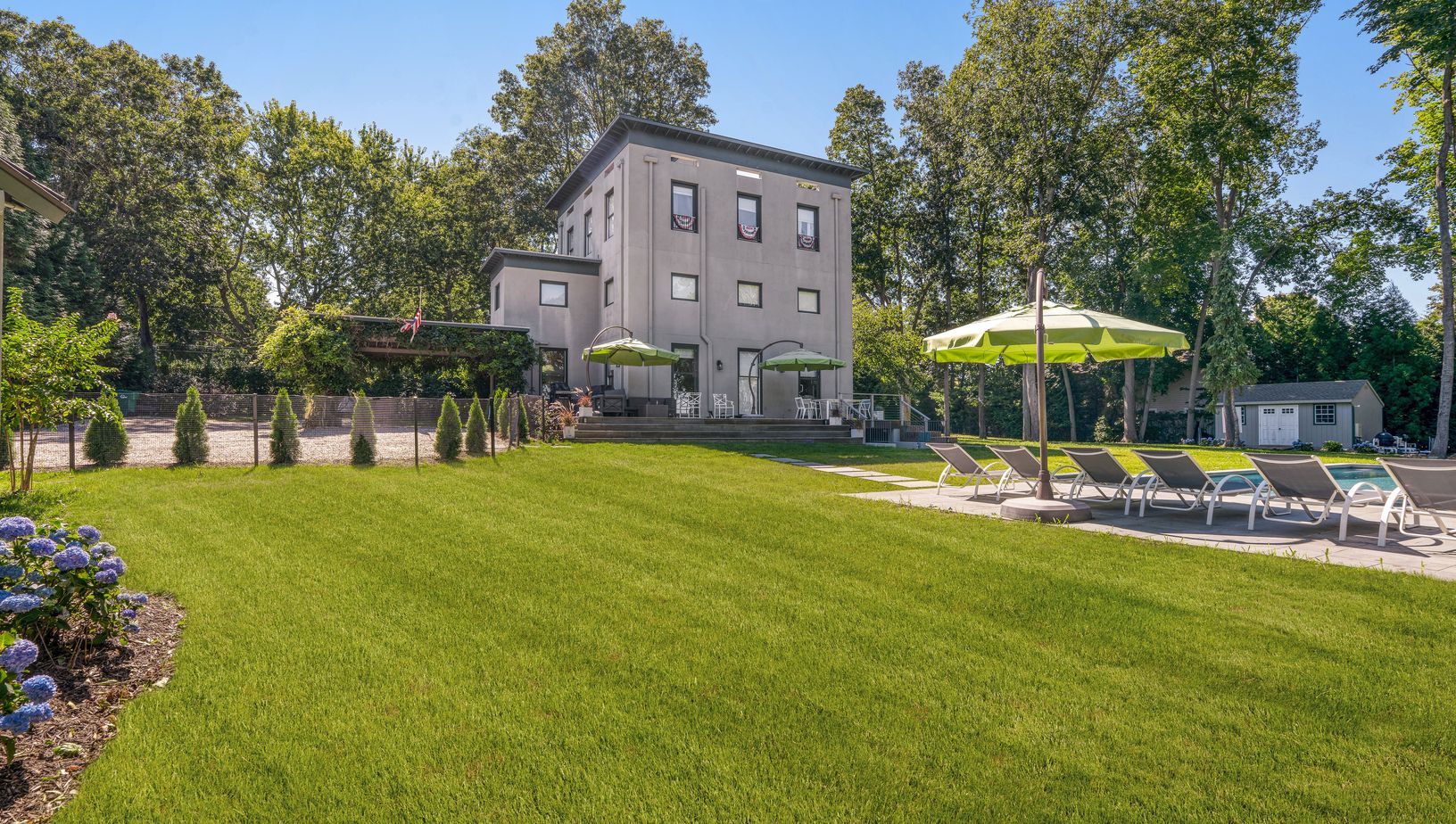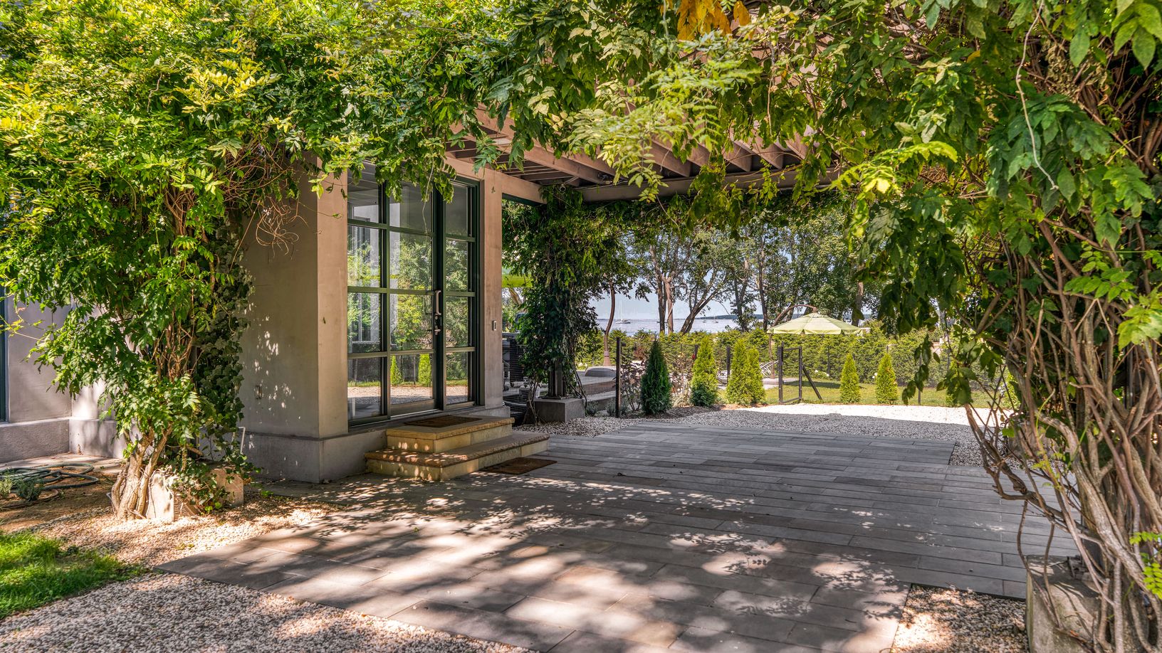 Overlooking Havens Beach with a 450 foot path to Sag Harbor Bay and pristine, sandy beaches, this 3 bedroom Sag Harbor Village beach house has bright, voluminous interiors with French doors to the expansive al fresco dining deck and waterside, heated, gunite pool. With stunning views of the beach, bay, and boats beyond, floor to ceiling windows and a roof deck frame the lush 0.81 acre