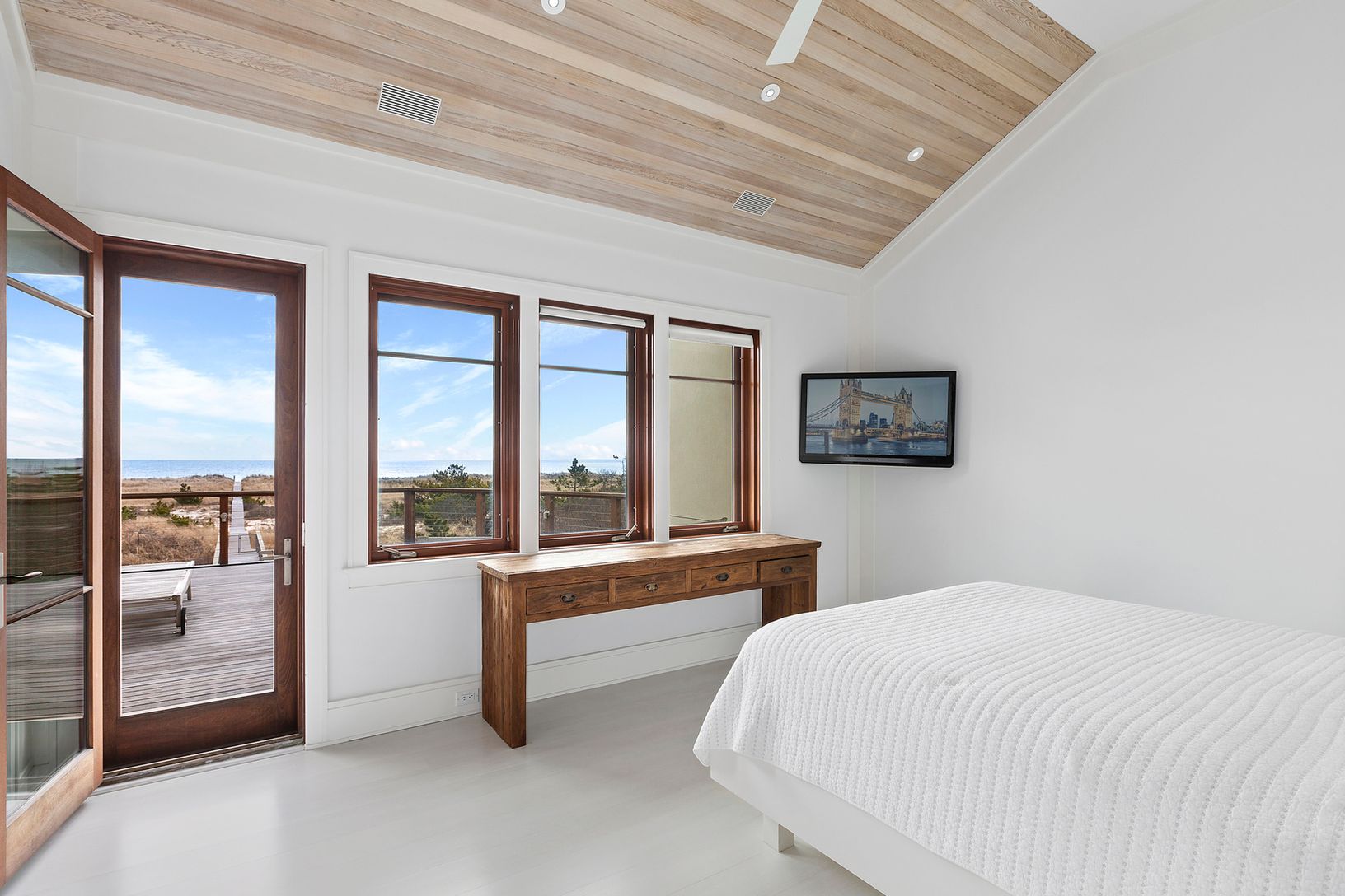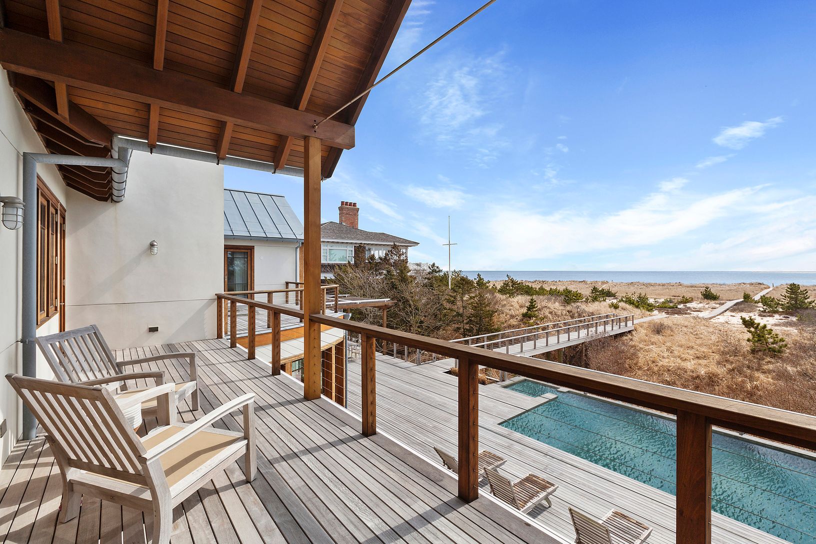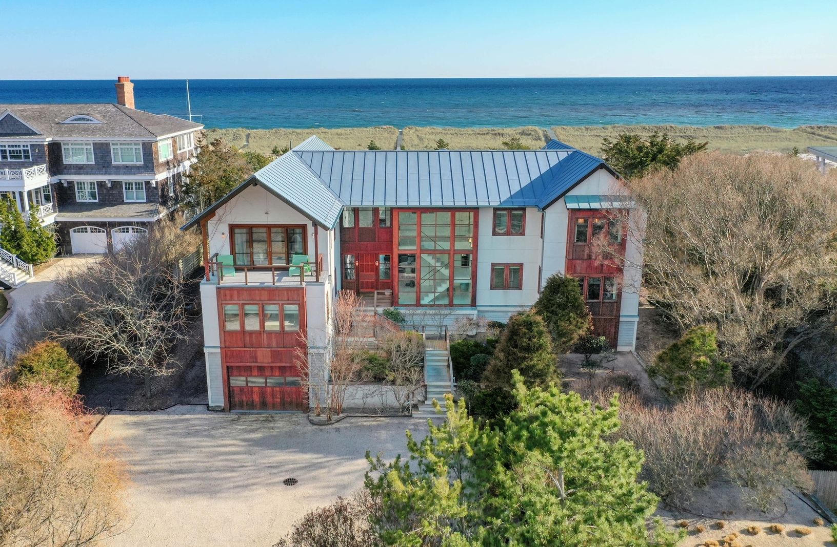 Ideally situated "Between the Bridges" in Westhampton Beach, you'll find this iconic oceanfront contemporary with 1.2 +/- acres, 120 feet of ocean frontage, and deeded right of way to the bay. Upon entering, the open floor plan invites you in with picturesque first floor ocean views. The main floor also offers a spacious living room with woodburning fireplace, sitting room/library, half bath, oceanside dining room, elevator to all three floors