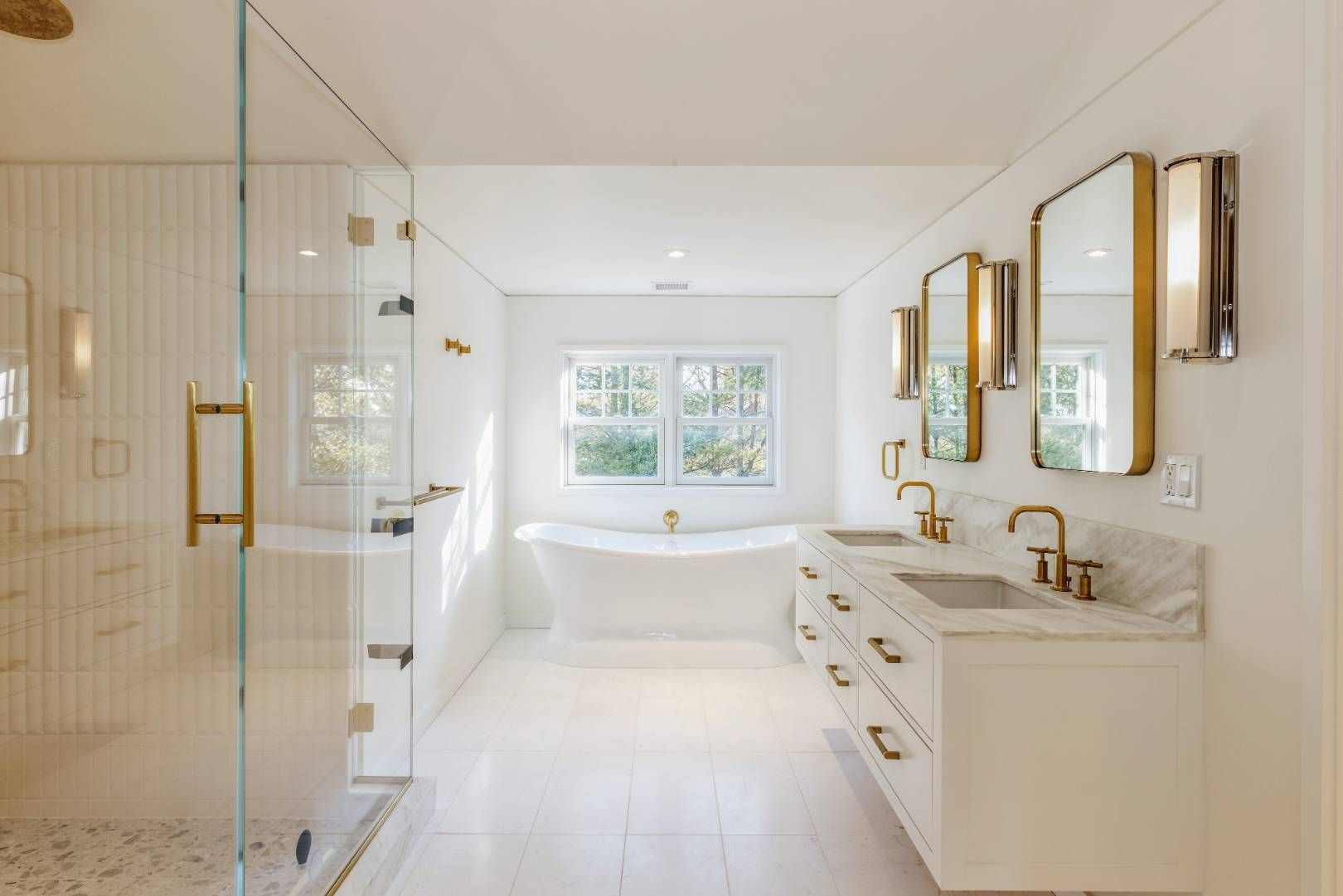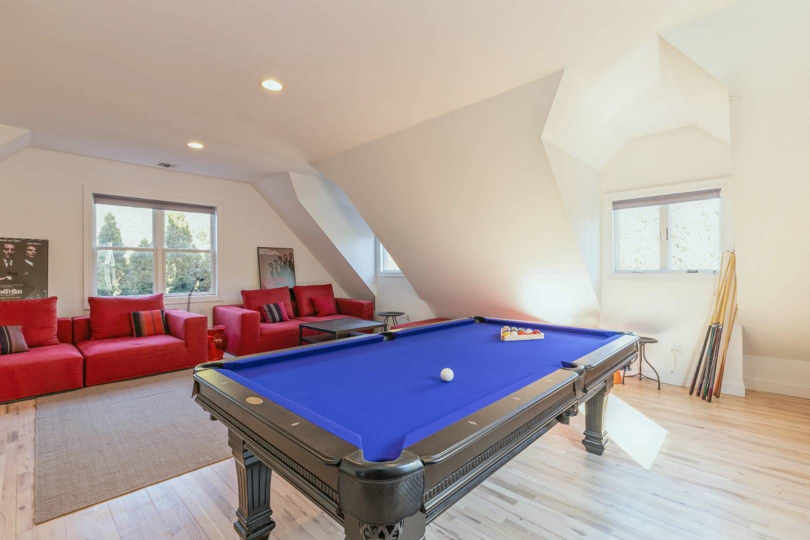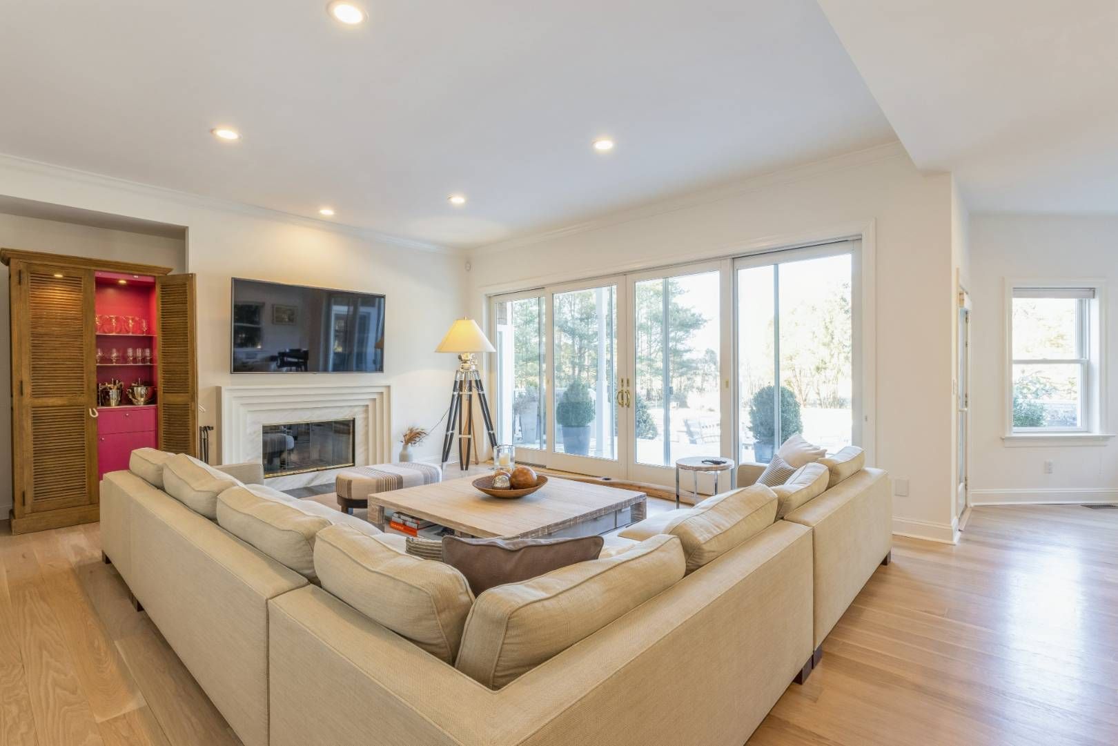 Nestled at the end of a cul-de-sac, and neighboring a farm reserve, this designer renovation is only moments from famed Flying Point Beach. Featuring 6 bedrooms all of which have ensuite bathrooms, 2 Master Bedrooms on each of 1st and 2nd floors, a beautiful library with full bath, as well as a large recreation room with pool table also with a full bath. Light and bright with an open living plan between the state-of-the-art kitchen and living
