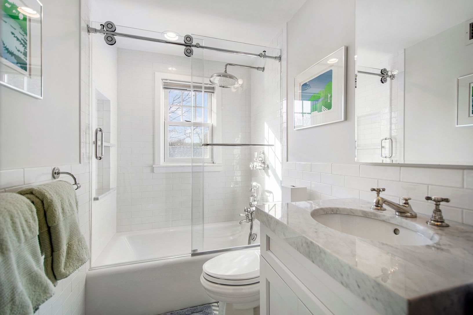 On a shy half-acre right in Southampton village, this stylish four-bedroom, five-bath designer's own village home is fresh and delightful. With beautiful finishes and living space over three floors, there is room for both privacy and togetherness. Completely renovated in 2017, the house boasts a detached two-car garage, a 900 SF finished lower level, a large Gunite pool, and upgraded systems from Lutron lighting to street gas, outdoor lighting