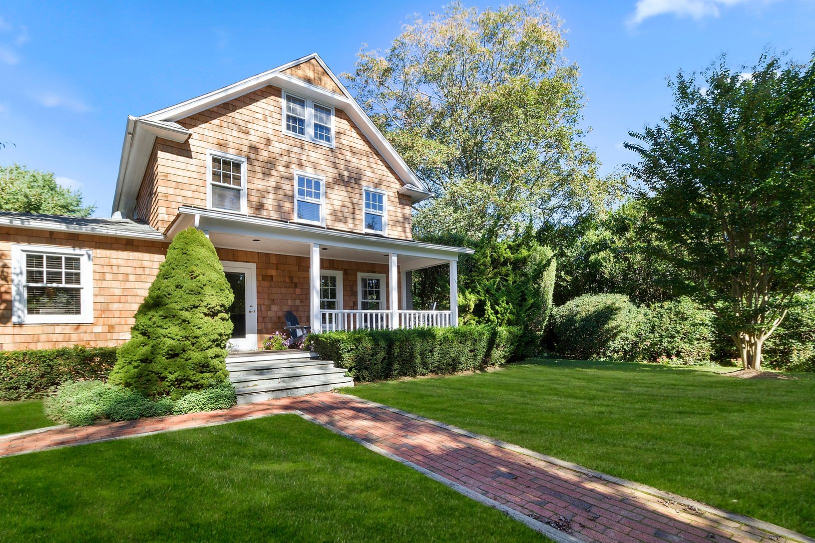 Not to be missed this farm house is conveniently located near the center of East Hampton village. The shingled traditional with front porch features four bedrooms, three and one half baths, a bright and open living room,fireplace, dining room, kitchen with stainless appliances, laundry room, ground floor bedroom with ensuite bath, two guest bedrooms which share a bath and master bedroom with bath. Finished basement, large private back yard, he