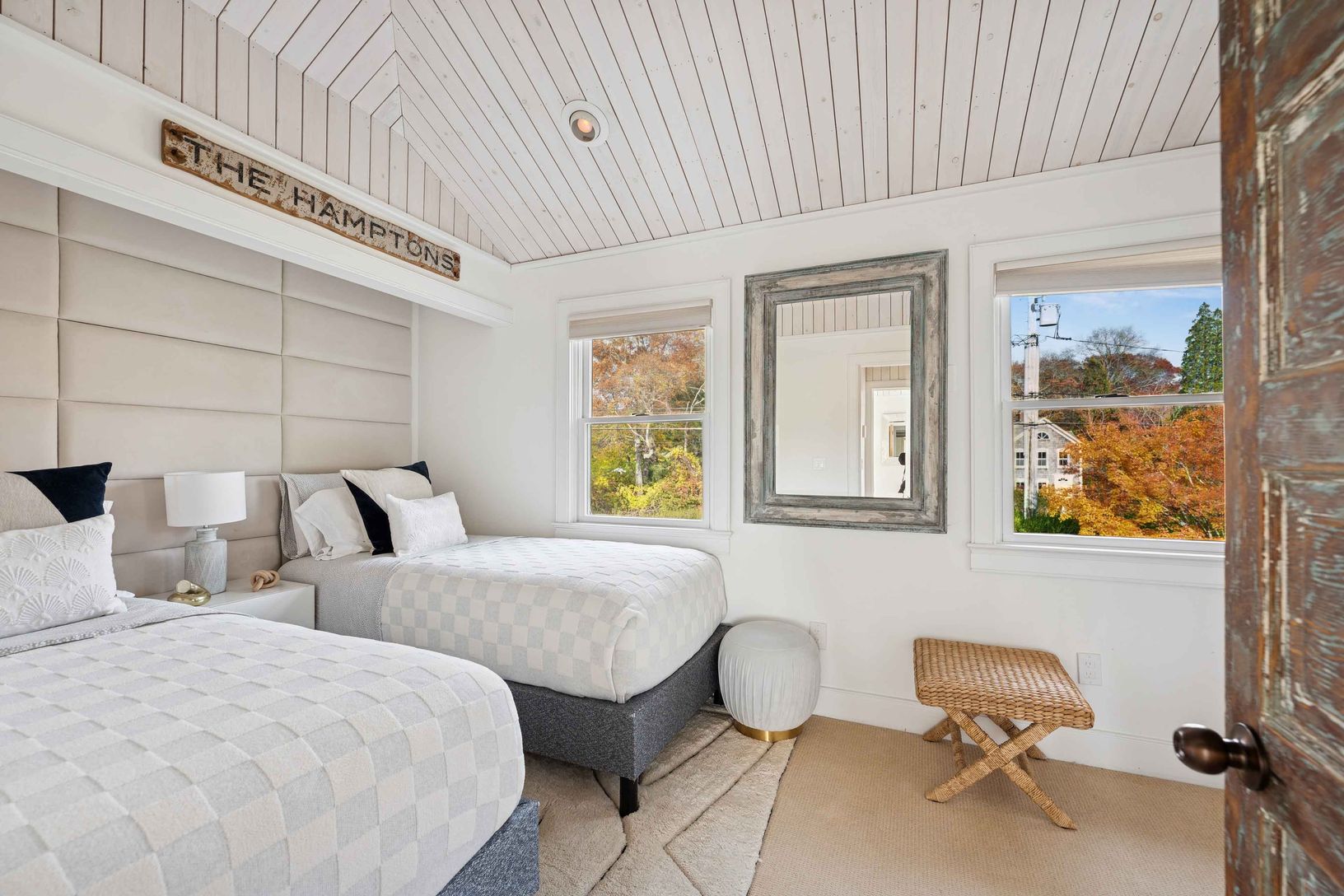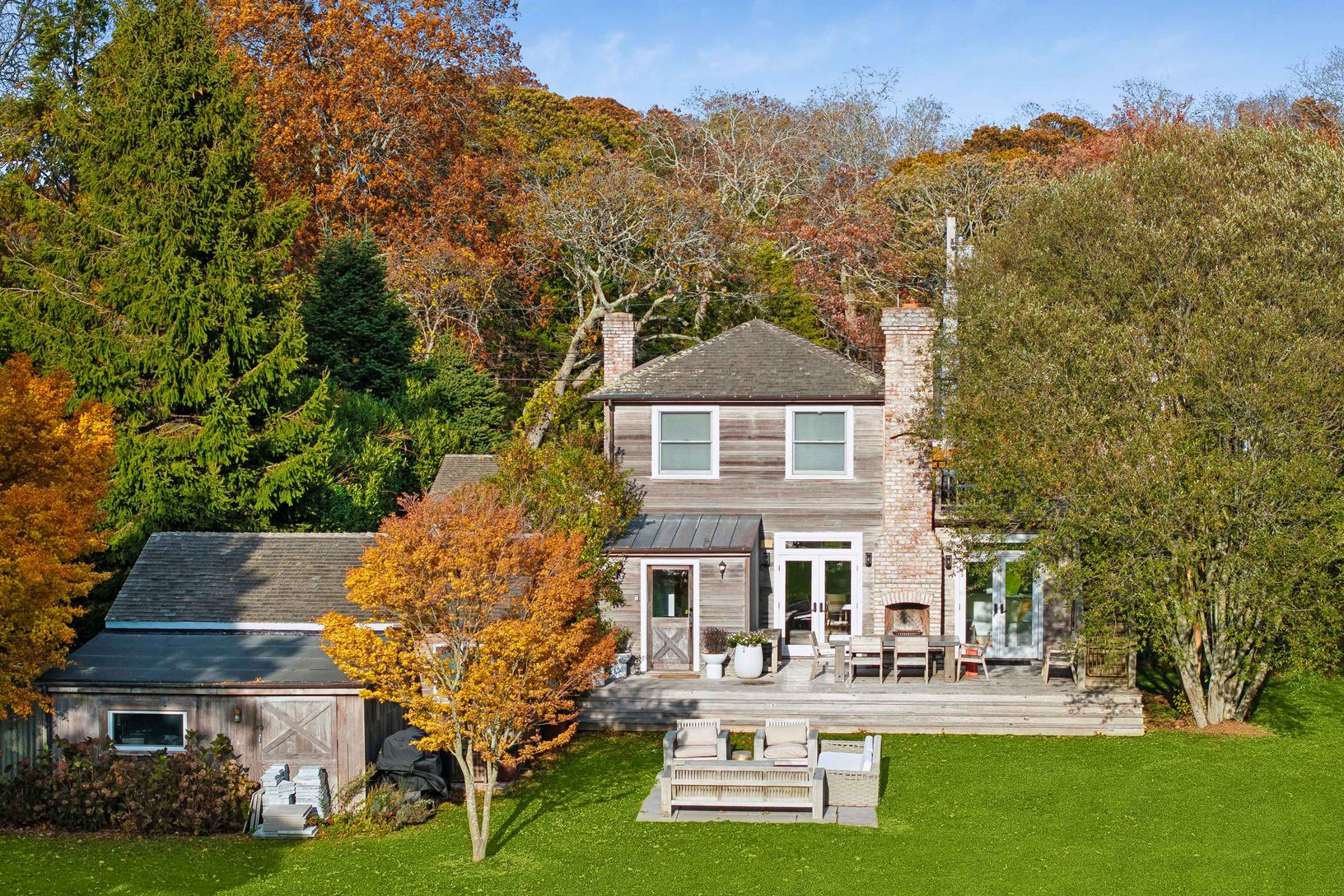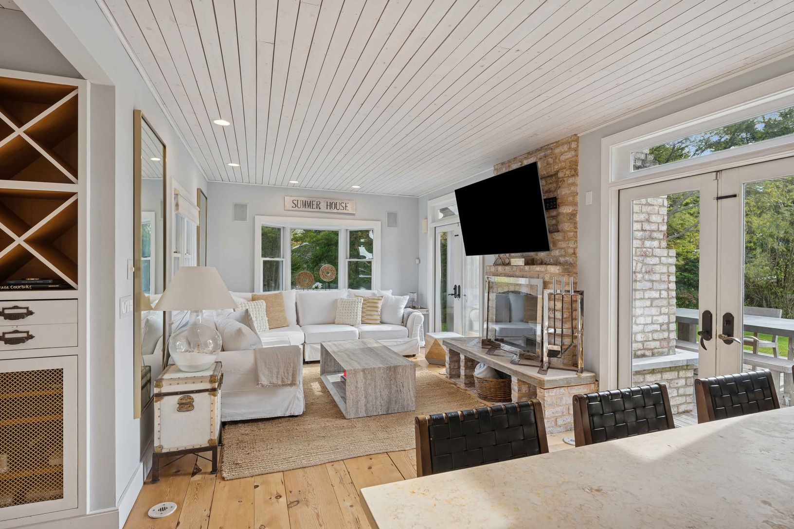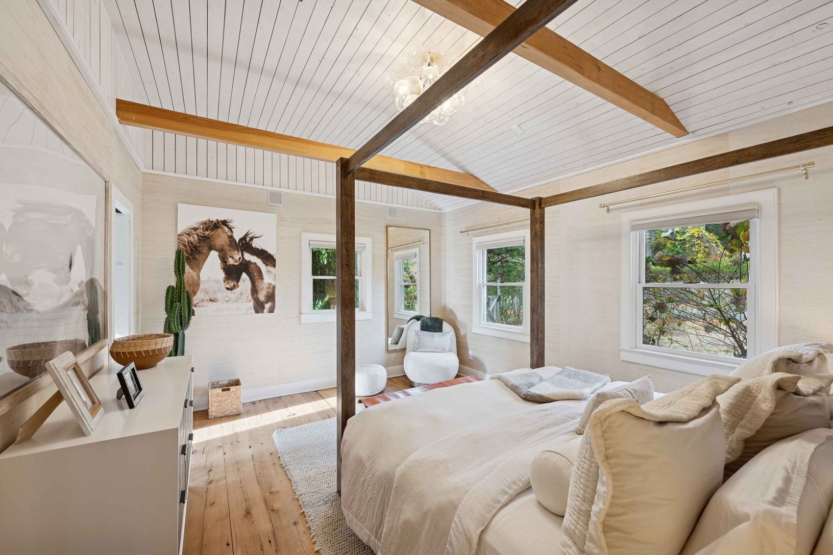 Experience quintessential Wainscott living at this rare, multi-generational beach compound. Ideally situated south of the highway, 1 mile+/- to the ocean and bordering reserve land, the property features a 3 bedroom main house with a sleep-ready media room and a separate 2 bedroom cottage. Blending historic character with modern luxury, the newly updated interiors showcase reclaimed Vermont floors, Provence stone, white oak beams, and all-new