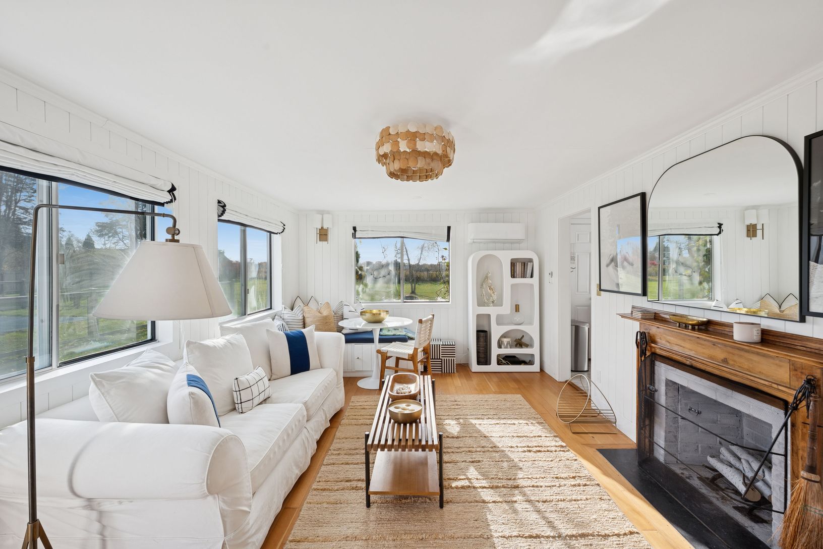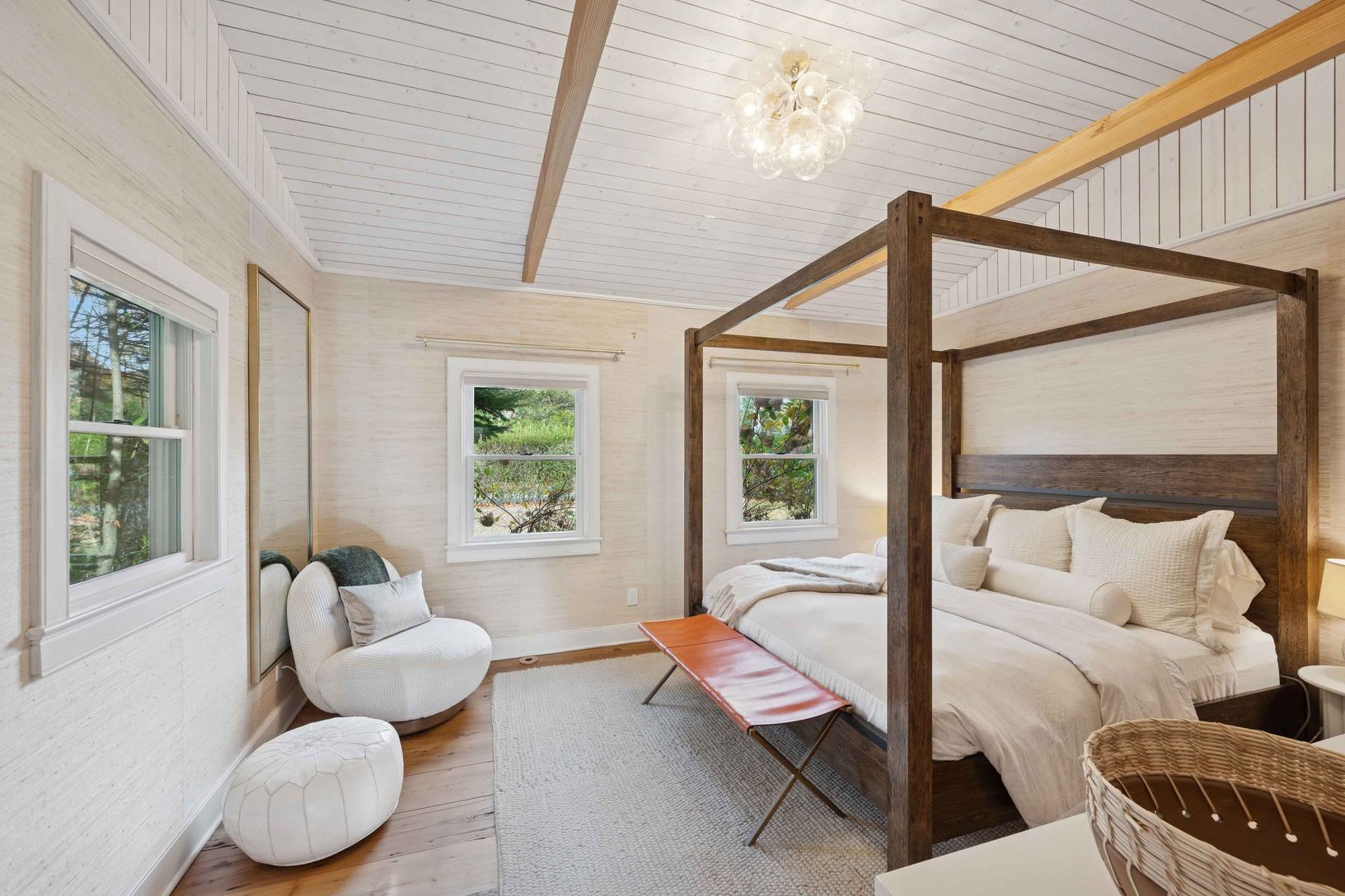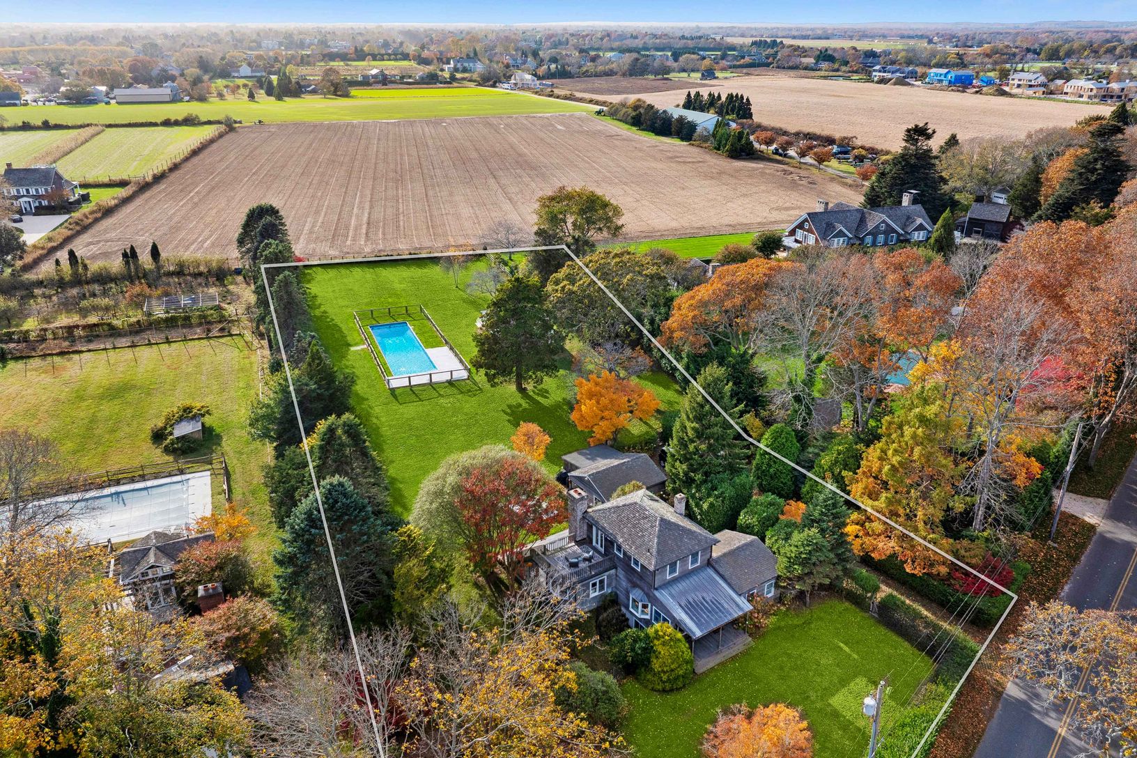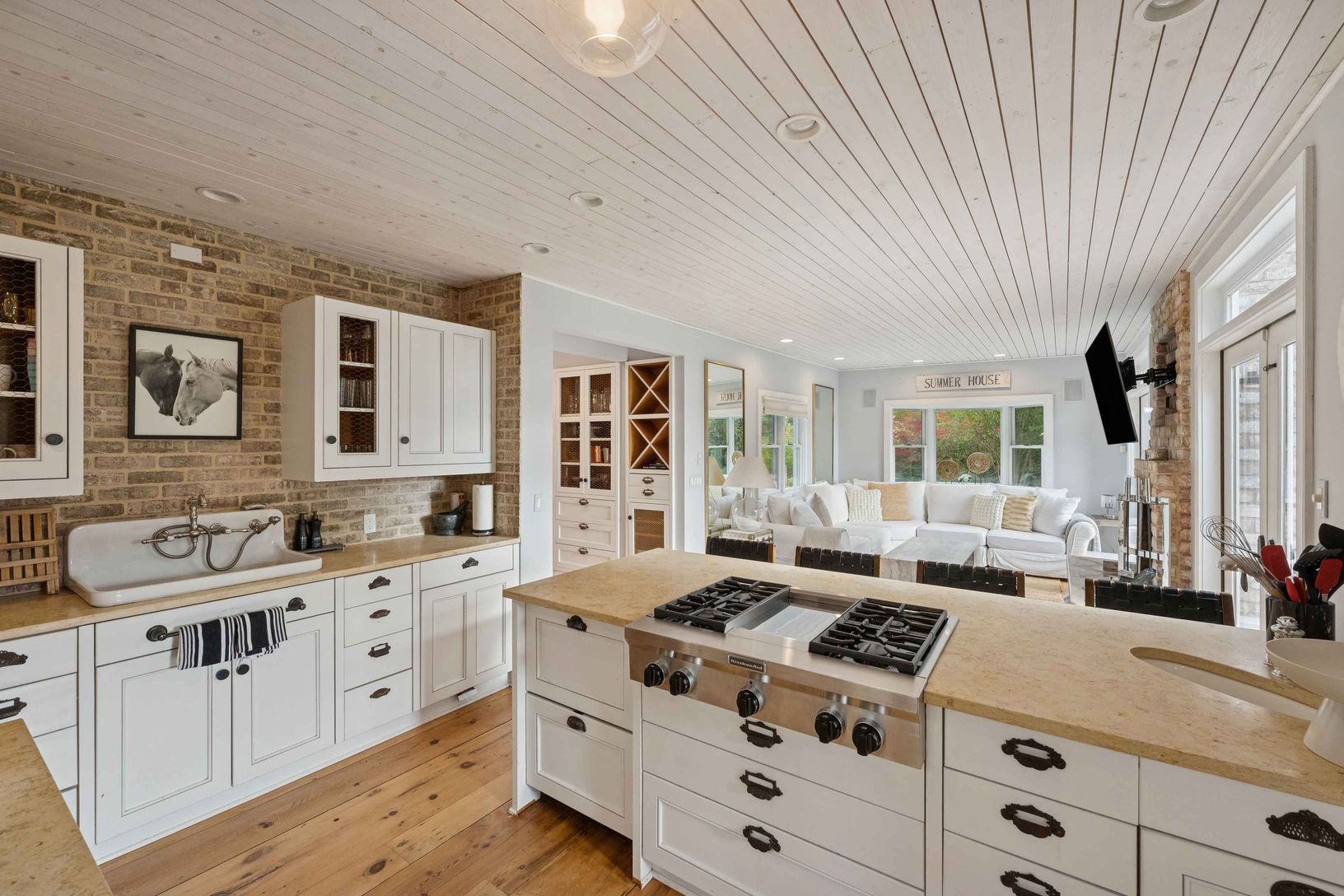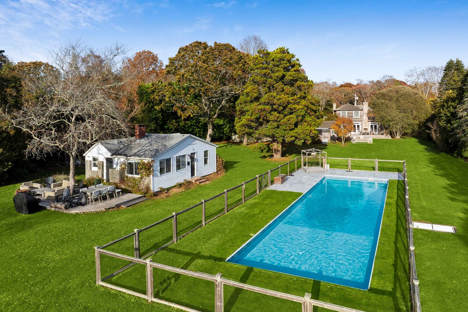 Experience quintessential Wainscott living at this rare, multi-generational beach compound. Ideally situated south of the highway, 1 mile+/- to the ocean and bordering reserve land, the property features a 3 bedroom main house with a sleep-ready media room and a separate 2 bedroom cottage. Blending historic character with modern luxury, the newly updated interiors showcase reclaimed Vermont floors, Provence stone, white oak beams, and all-new