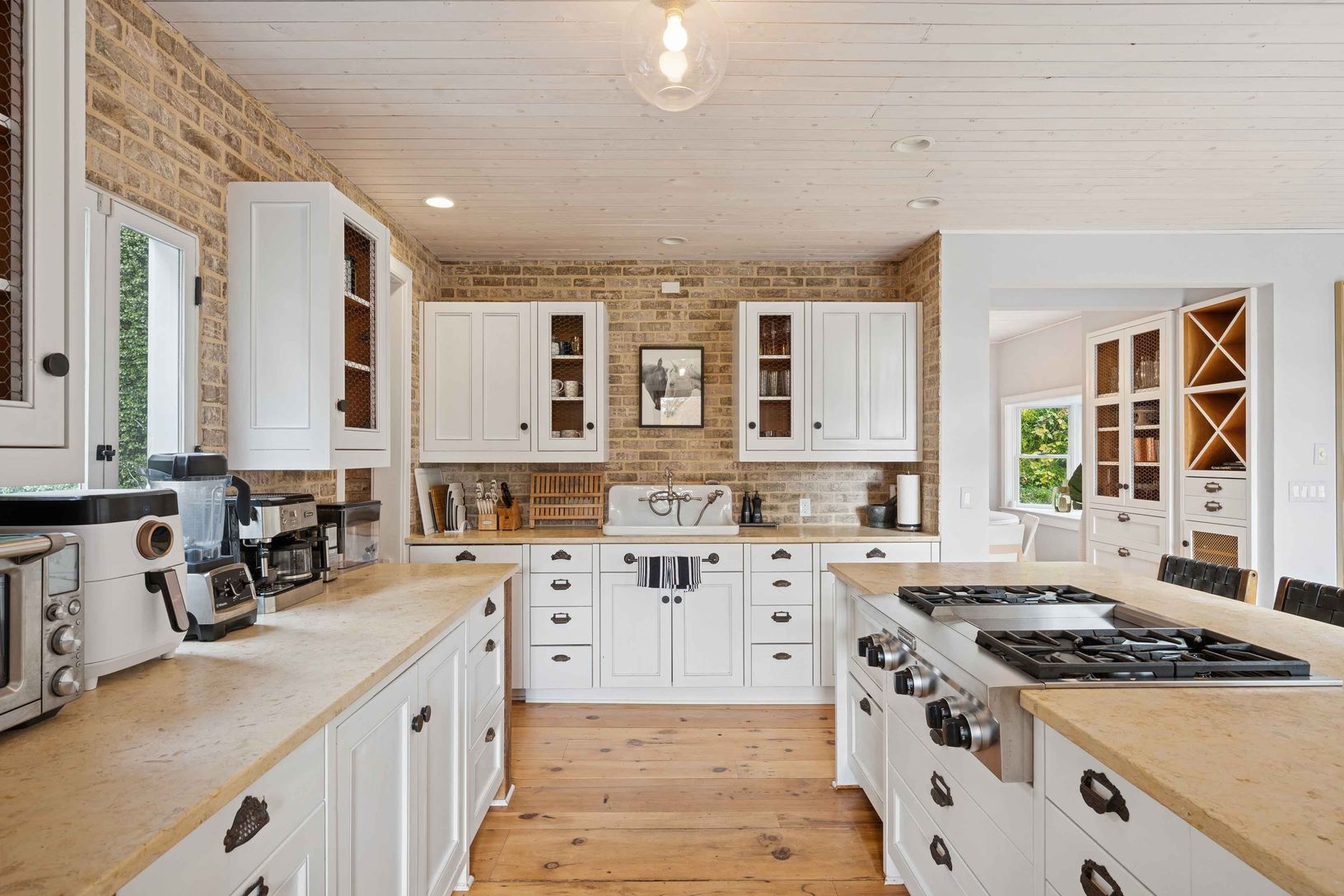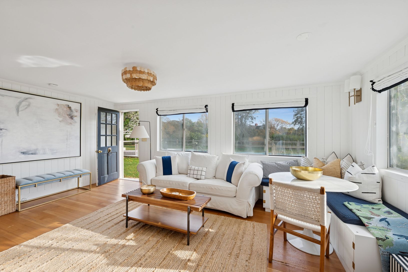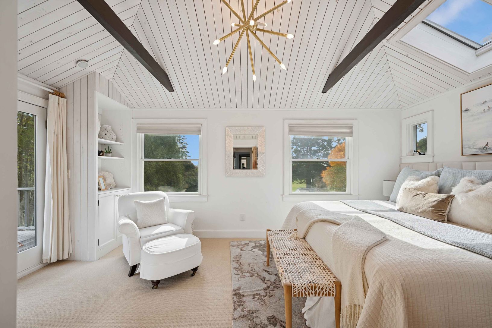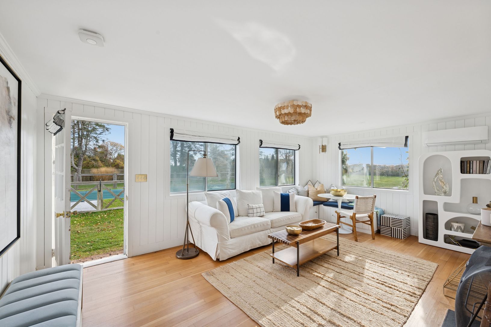 Experience quintessential Wainscott living at this rare, multi-generational beach compound. Ideally situated south of the highway, 1 mile+/- to the ocean and bordering reserve land, the property features a 3 bedroom main house with a sleep-ready media room and a separate 2 bedroom cottage. Blending historic character with modern luxury, the newly updated interiors showcase reclaimed Vermont floors, Provence stone, white oak beams, and all-new