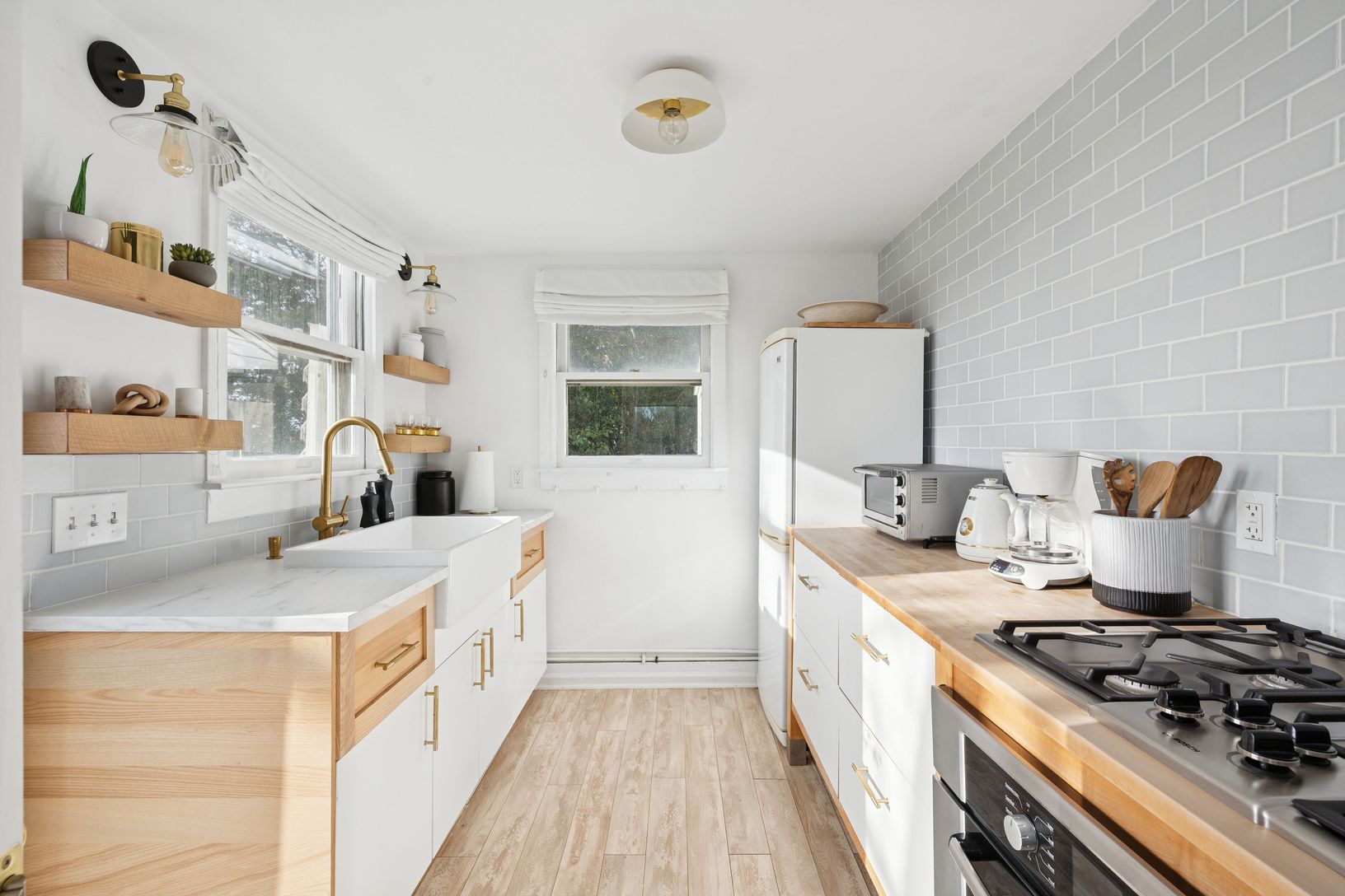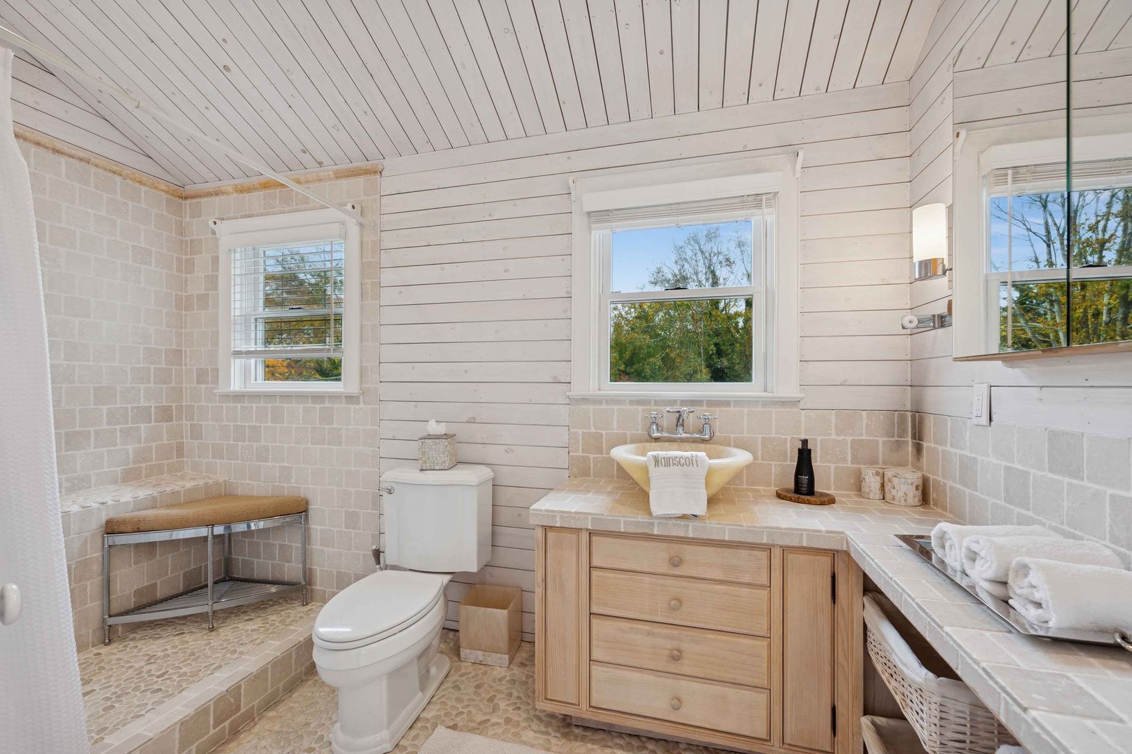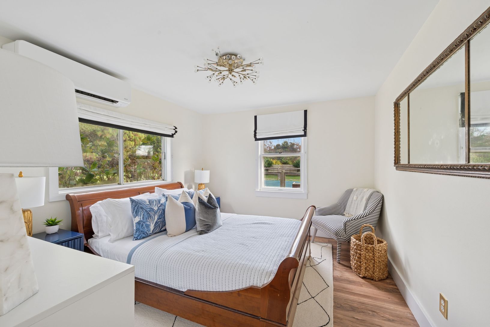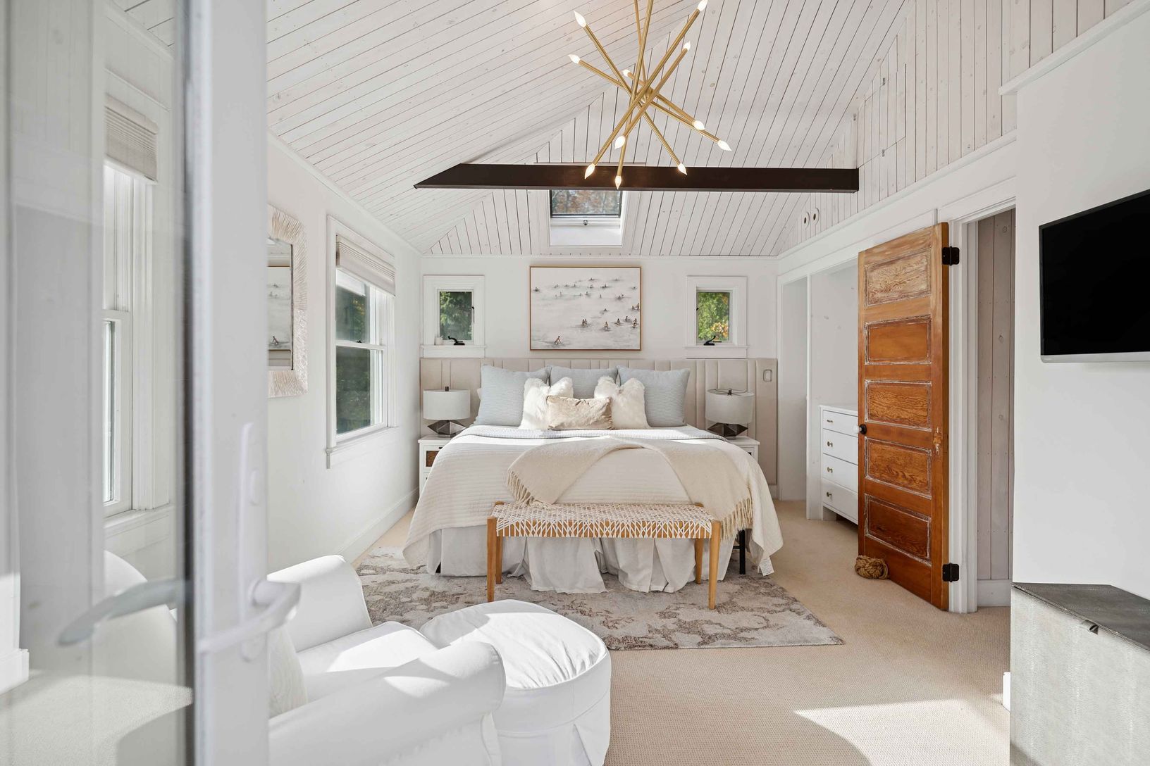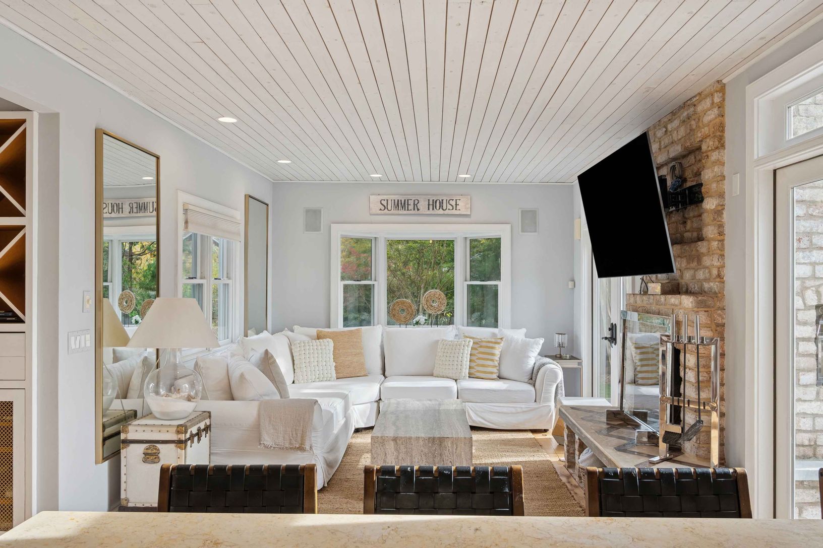 Experience quintessential Wainscott living at this rare, multi-generational beach compound. Ideally situated south of the highway, 1 mile+/- to the ocean and bordering reserve land, the property features a 3 bedroom main house with a sleep-ready media room and a separate 2 bedroom cottage. Blending historic character with modern luxury, the newly updated interiors showcase reclaimed Vermont floors, Provence stone, white oak beams, and all-new