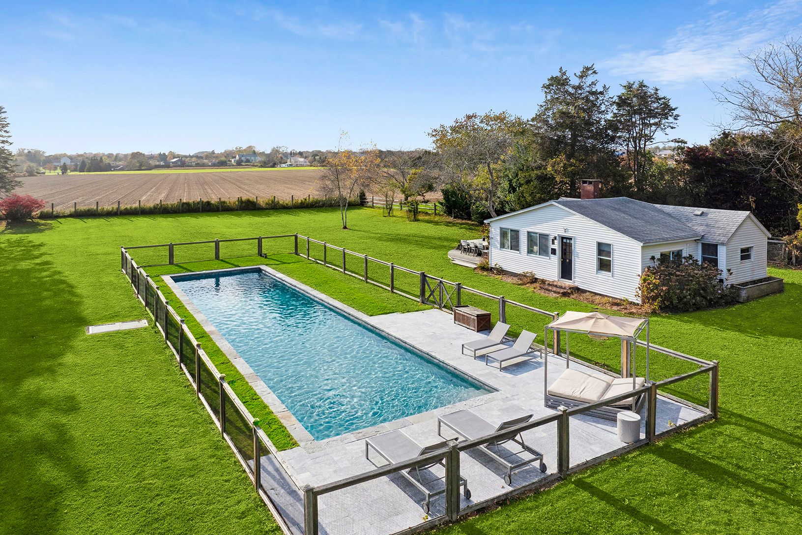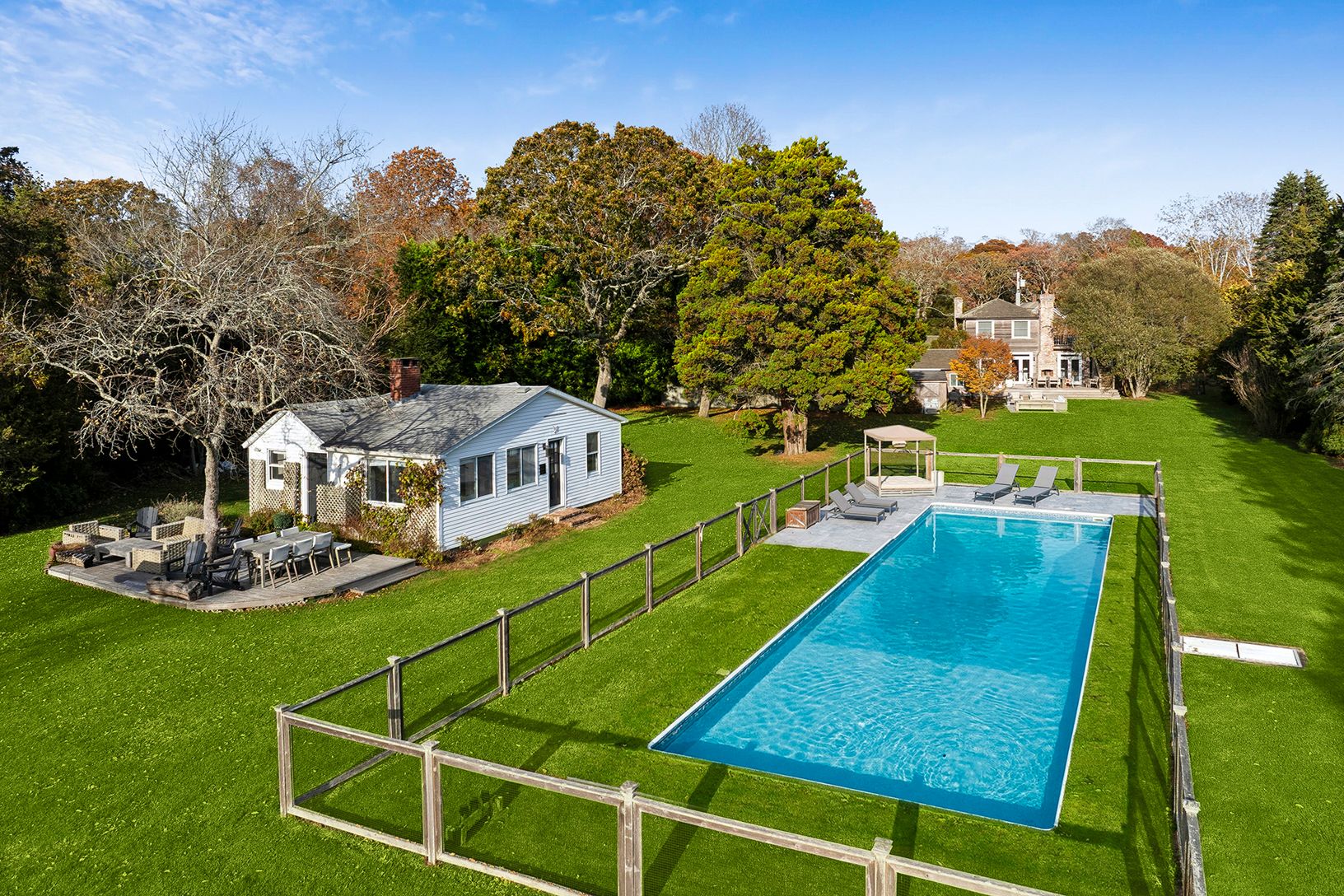 Experience quintessential Wainscott living at this rare, multi-generational beach compound. Ideally situated south of the highway, 1 mile+/- to the ocean and bordering reserve land, the property features a 3 bedroom main house with a sleep-ready media room and a separate 2 bedroom cottage. Blending historic character with modern luxury, the newly updated interiors showcase reclaimed Vermont floors, Provence stone, white oak beams, and all-new