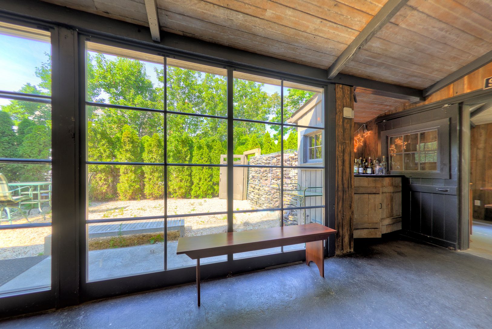 This charming 1900s dairy barn transports you back in time, built with all the benefits of modern-day amenities. One of the most unique properties in all of the Hamptons, this designer home features two bedrooms, one full bath and two wood-burning fireplaces. Thoughtfully designed gardens and pathways are showcased with Gabion walls that are backlit with inspiring outdoor lighting. An oversized gunite pool is perfectly situated on this .73 acr