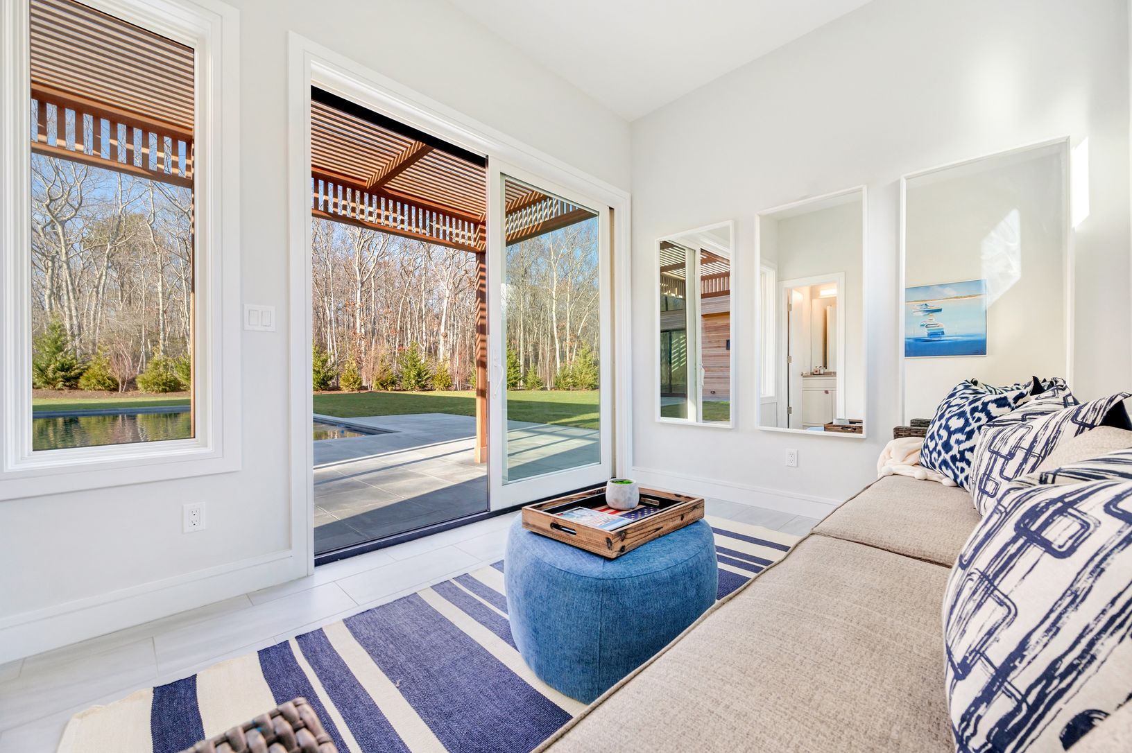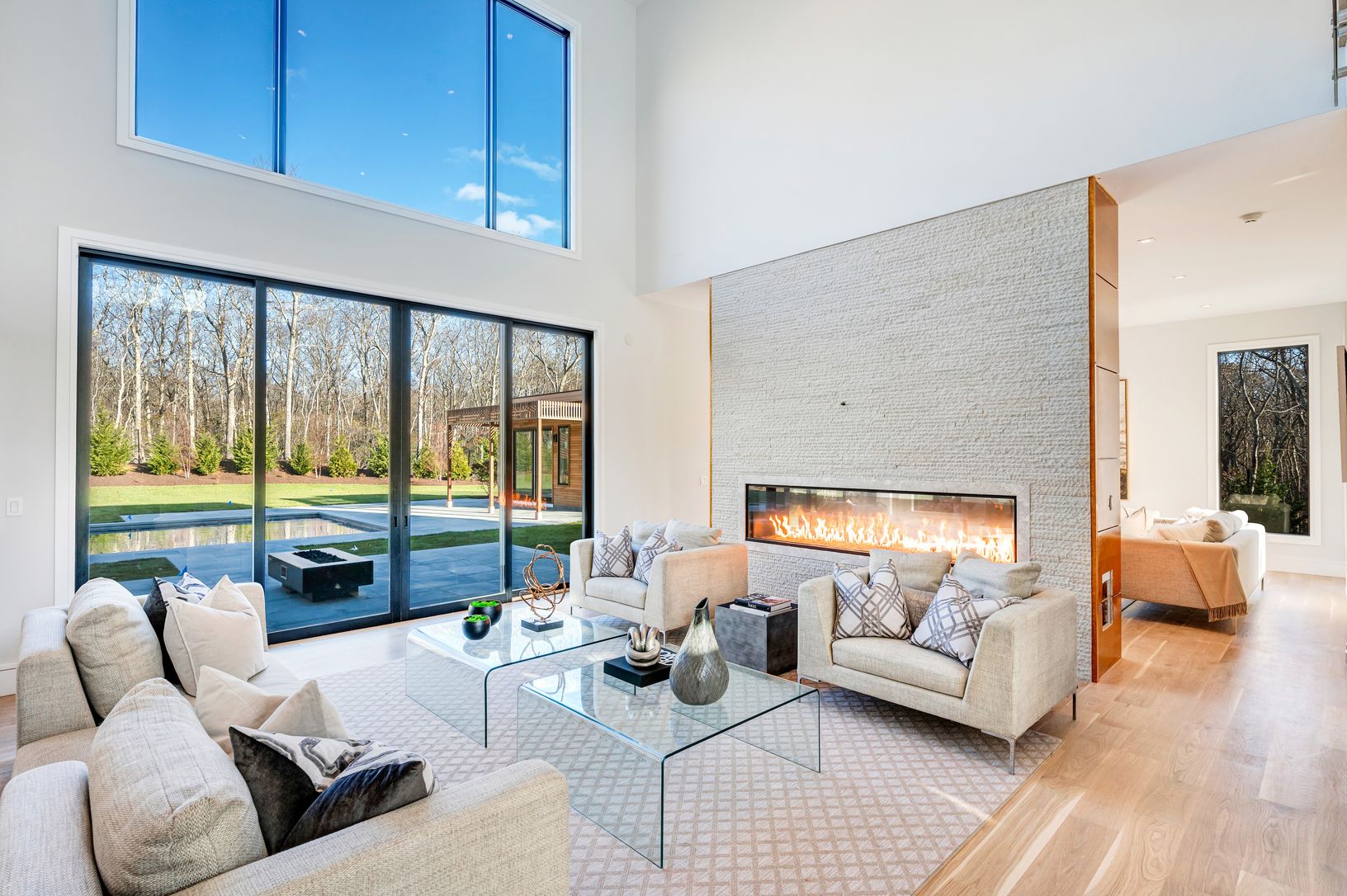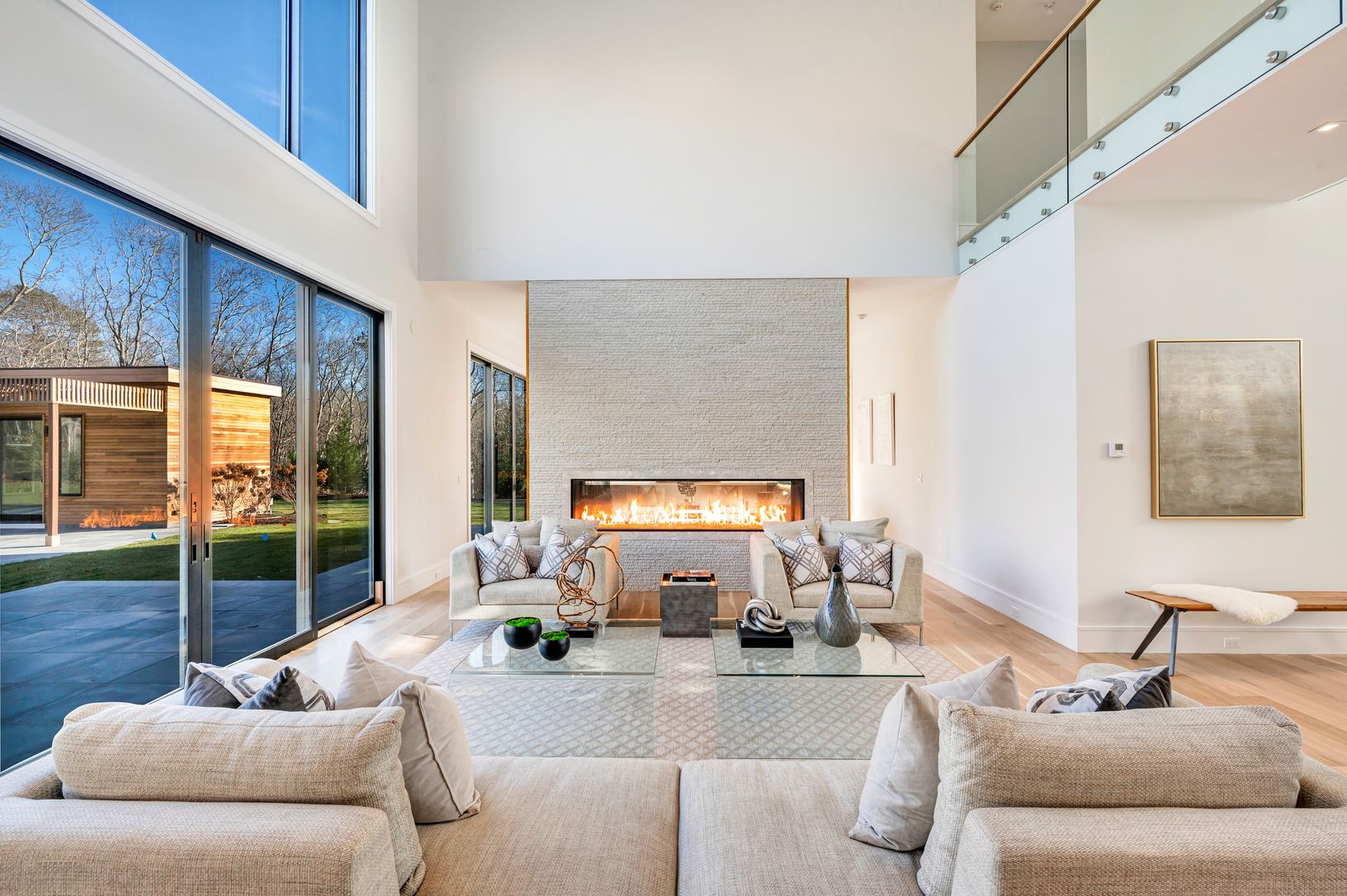 Welcome to 1281 Noyac Path in Water Mill, where the utmost in modern design meets total privacy and serenity. Situated atop 4.3+/- acres of verdant land, you will find this unquestionably stunning modern home, crafted with sophisticated materials, clean architectural lines and careful attention to detail. With over 5,500+/- sf of living space above grade and an additional 2,000+/- sf in the lower level, 6 bedrooms and 7 bathrooms and 2 half ba