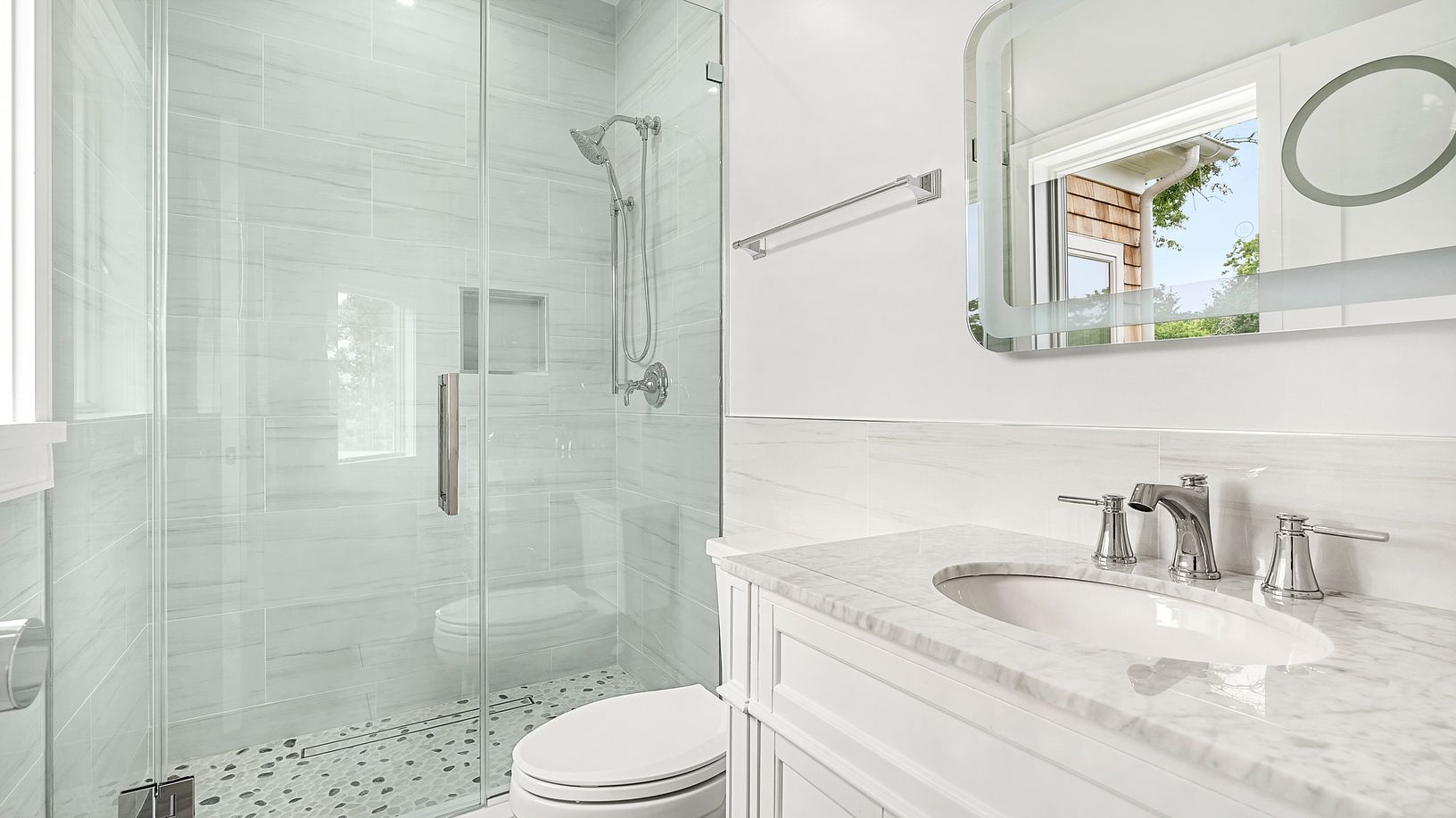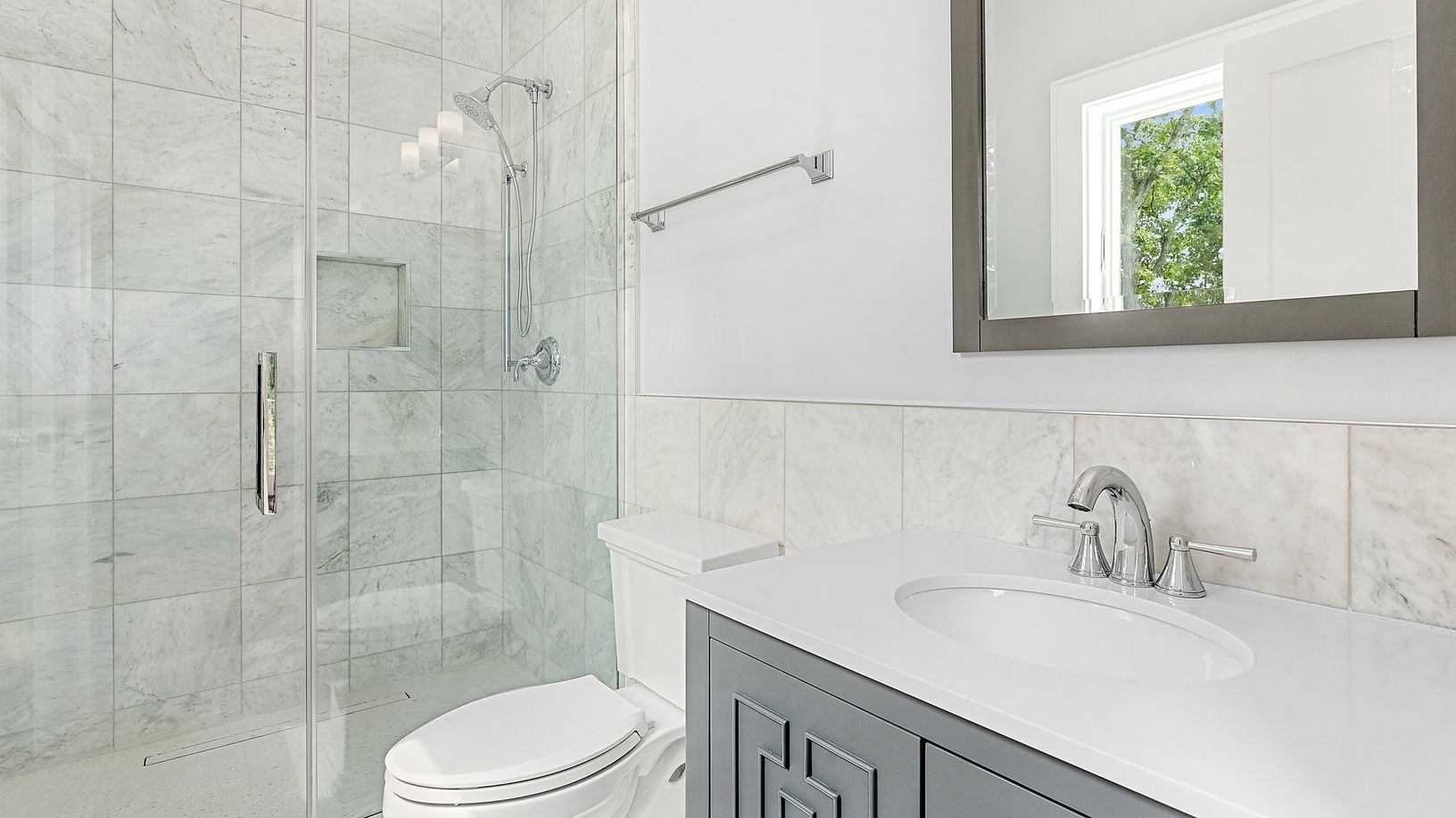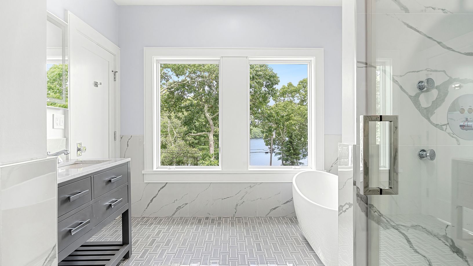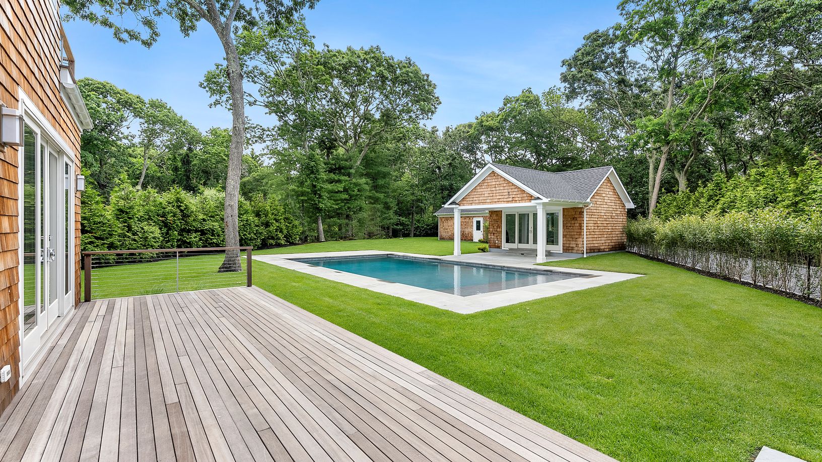 Welcome to this stunning new construction located in the desirable waterfront community of Big Fresh Pond. Completed just recently, this property comes with a remarkable offering - a separate waterfront lot right across the street with its own private dock, allowing you to access the breathtaking Pond. All .60+/- acres of this property are tastefully landscaped around the pool house, main house and 2 car garage.