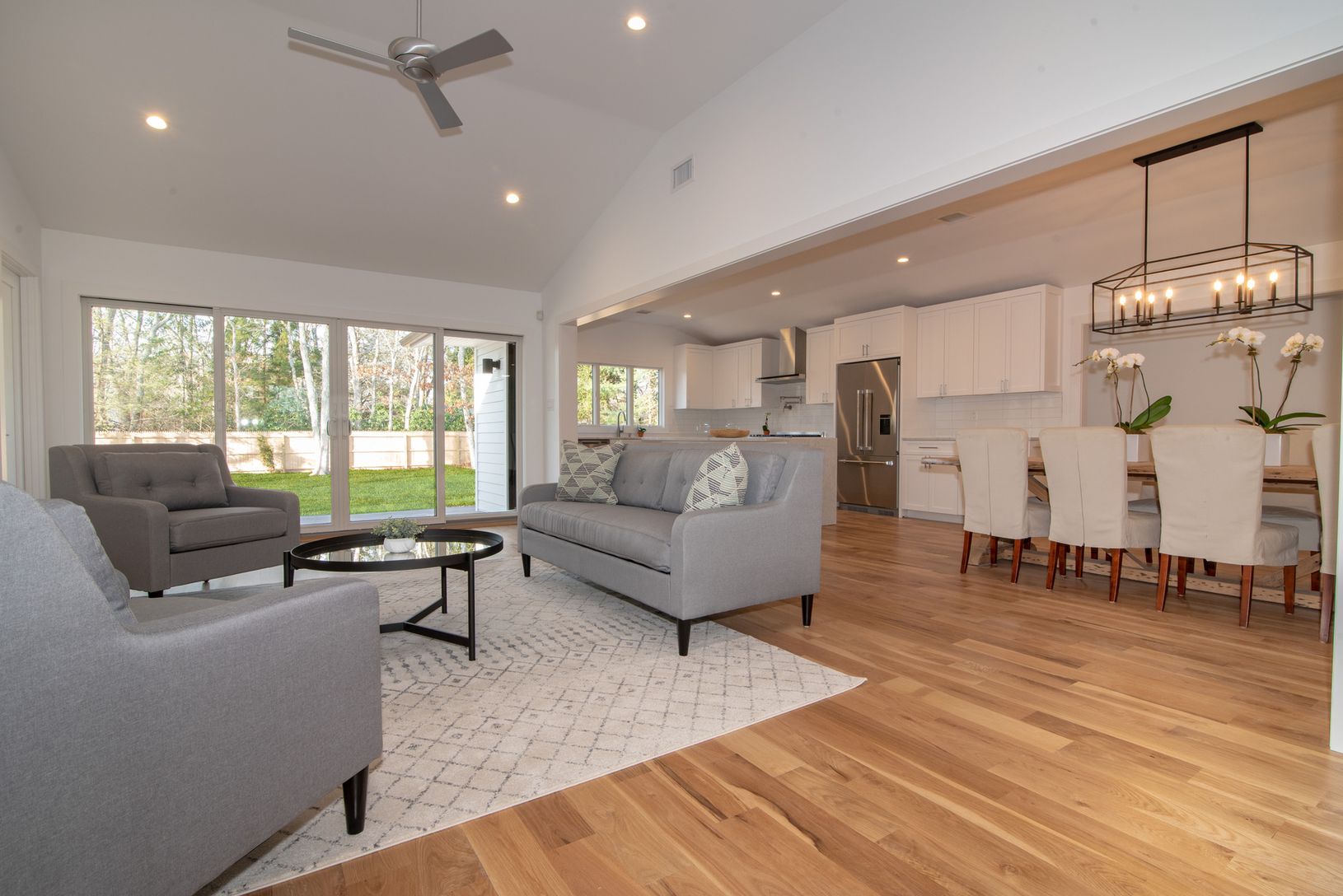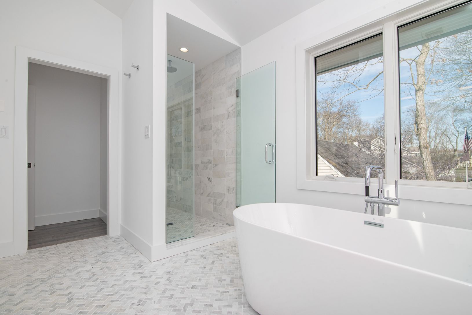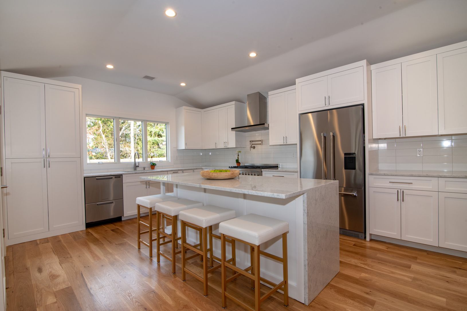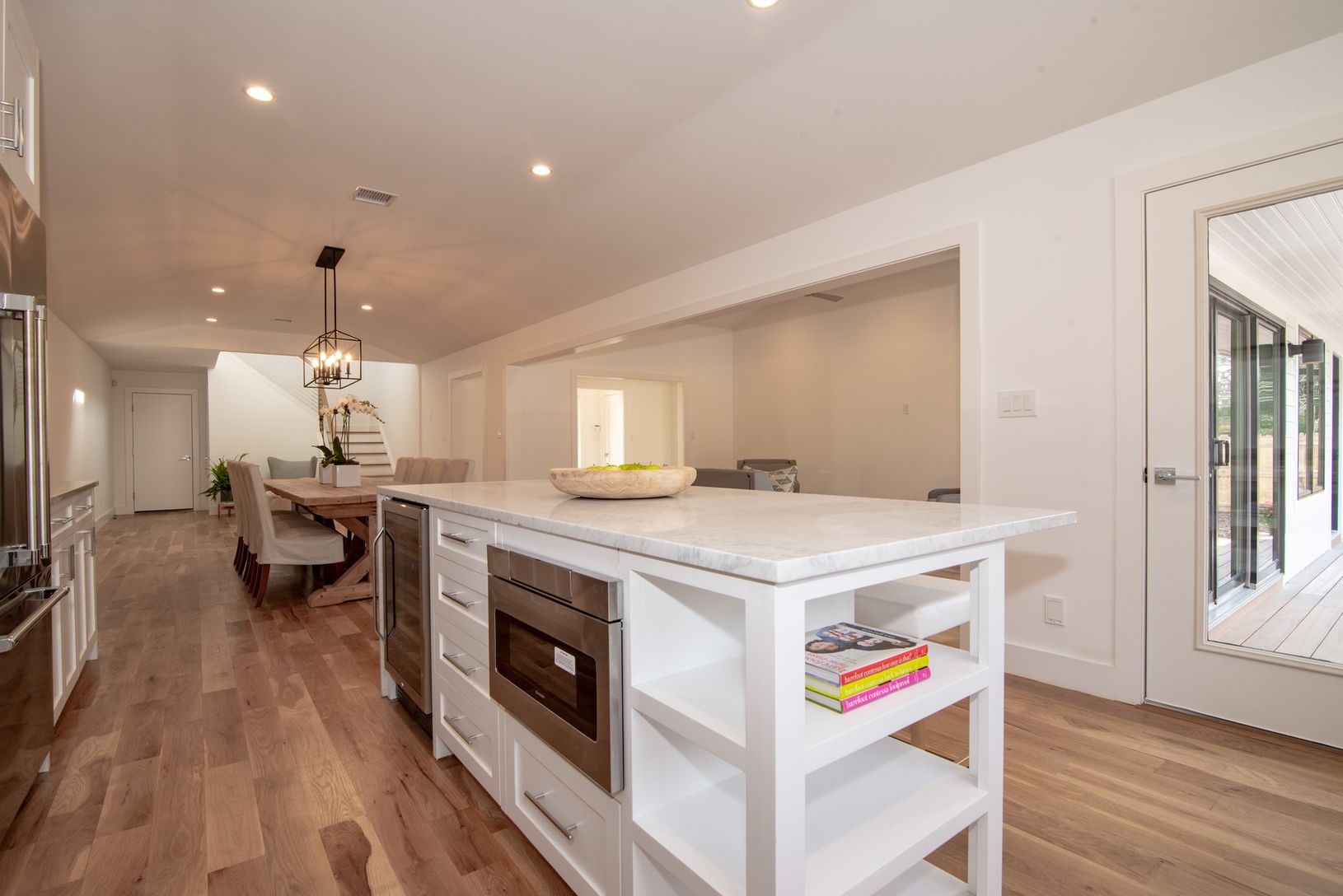 New Construction in Westhampton Beach Village! This 4 bedroom/4.5 bath custom built home features an open floor plan with vaulted ceilings and custom finishes. All spaces are overflowing with natural light. The kitchen and dining room areas are perfect for entertaining. Extensive counter and cabinet space and a large kitchen island with carrara marble countertop and wine refrigerator. Convenient access to rear deck and pool area through the ki